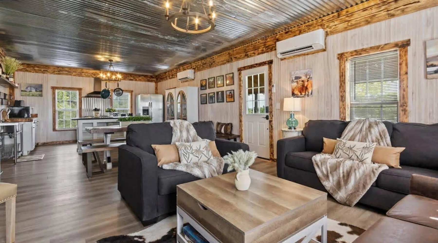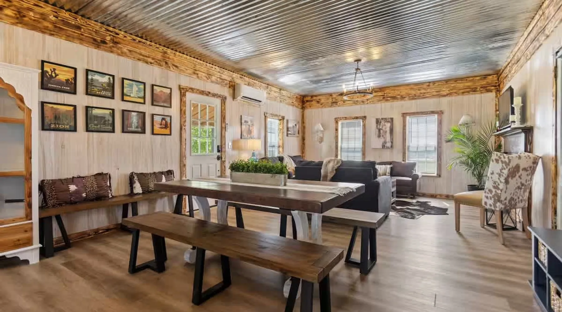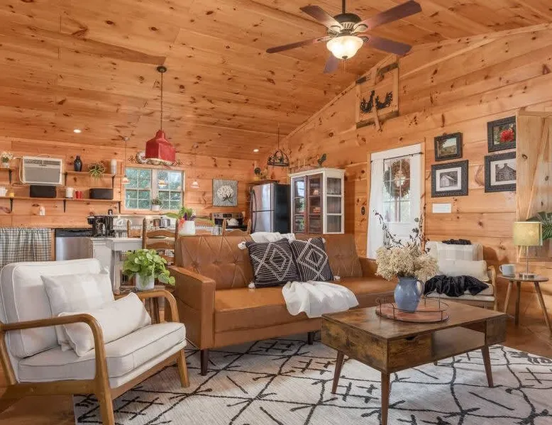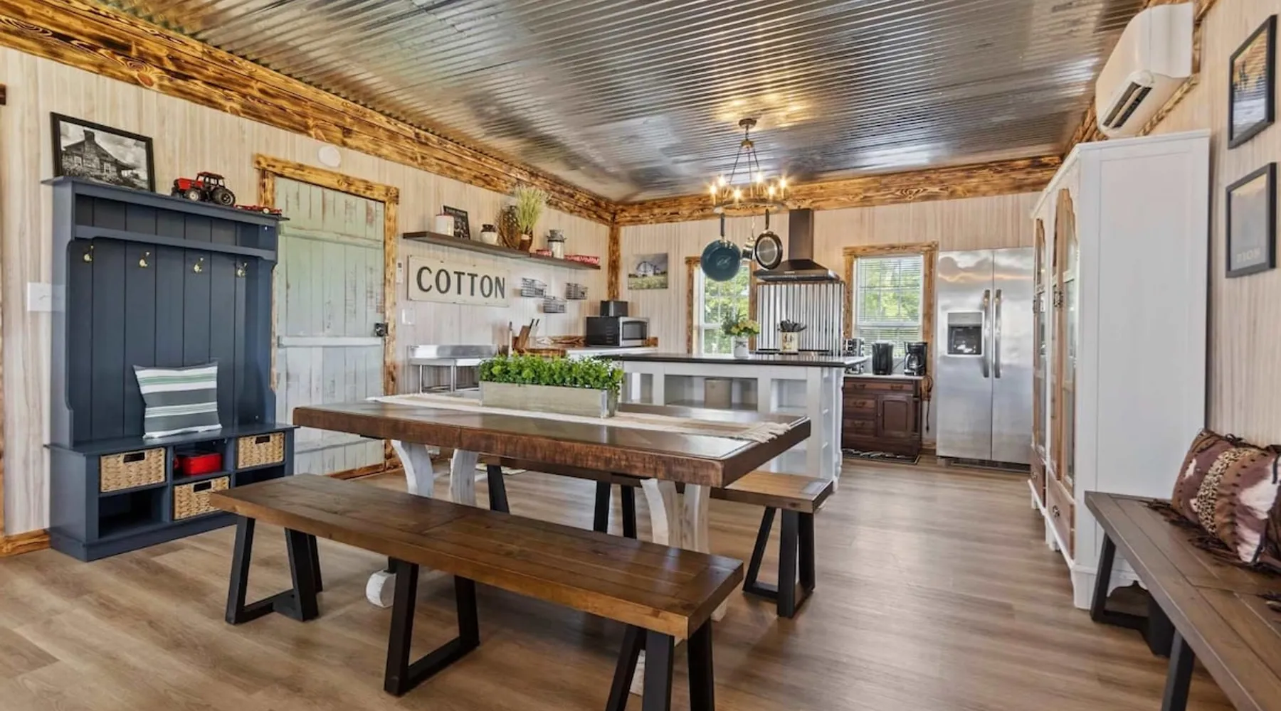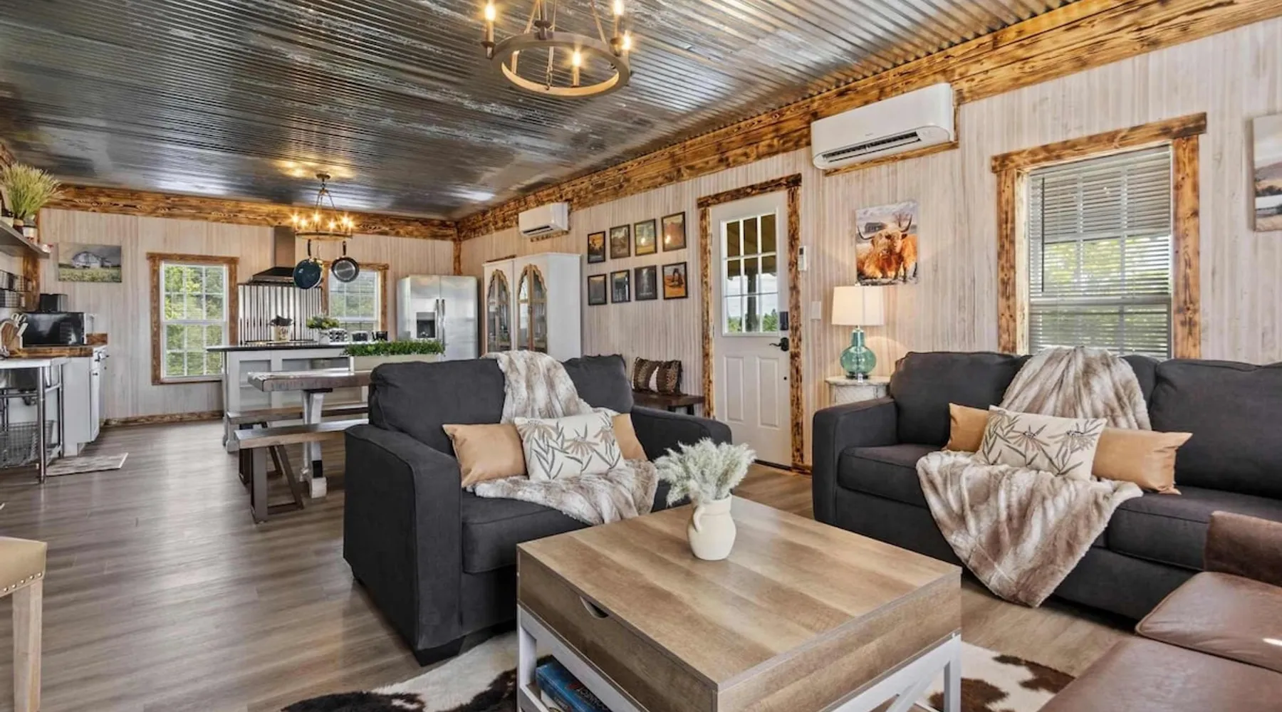 Americana Farm Getaway The space Americana Farm Getaway combines the comfort of The Prairie House Retreat and Liberty Lodge into one spacious, private booking—making it the ideal setting for family reunions, group getaways, or multi-family vacations. With room for up to 14 guests across two charming countryside homes, you’ll have everything you need for a peaceful and memorable stay. The Prairie House Retreat includes: 3 interconnected bedrooms with a variety of sleeping options: full, queen, king, and two full bunk beds Two bathrooms (one with a tub, one half bath with a toilet and sink) A fully stocked kitchen, spacious living area, and large outdoor fire pit Liberty Lodge offers: An indoor king bed in an open concept bedroom A screened-in porch with a full bed for an airy sleeping experience One full bathroom, kitchen, and peaceful porch views Whether you want to cook for a crowd, split into smaller groups for quiet time, or gather around the fire pit for an evening together, Americana Farm gives you the flexibility and space to do it all. Only need one of the homes? The Prairie House Retreat and Liberty Lodge can also be booked individually for smaller parties. Please note: If you would like to enjoy the fire pit during your stay, please bring your own wood and fire starters. To ensure a seamless and enjoyable experience for all, we encourage and request all guests to review our house rules before completing their booking. These guidelines help maintain comfort, security, and create clear expectations for all involved. By booking, you agree to our house rules, policies, terms and conditions (including details on guest count, pet accommodations, security measures, and checkout procedures). Adherence helps us provide the best possible stay for you and future guests. We appreciate your cooperation in advance and look forward to hosting you!