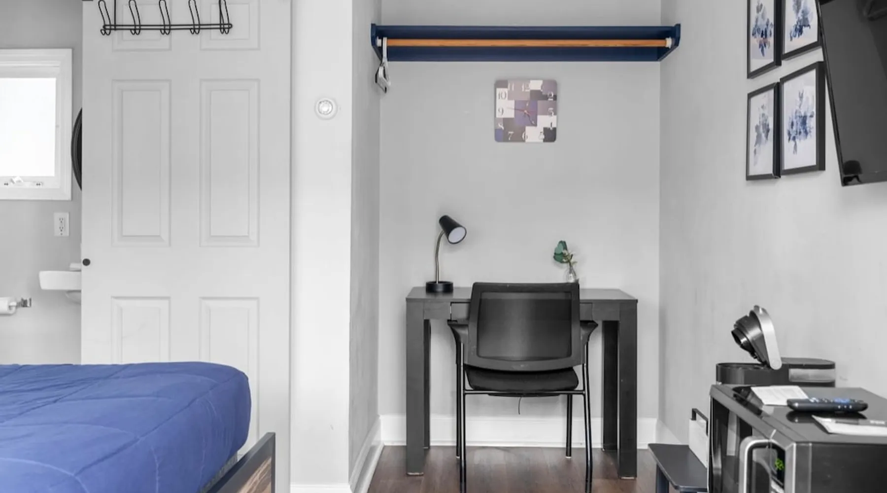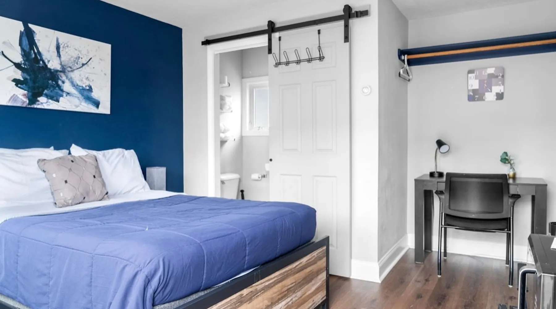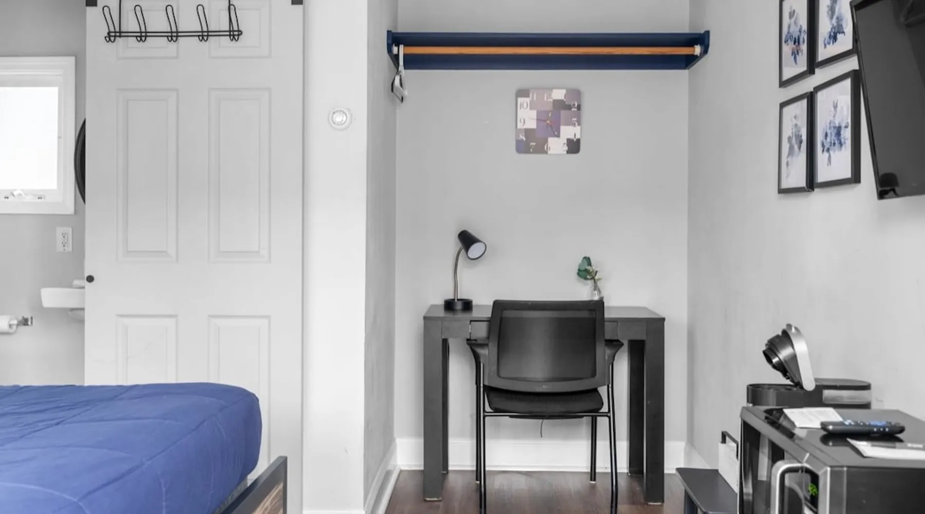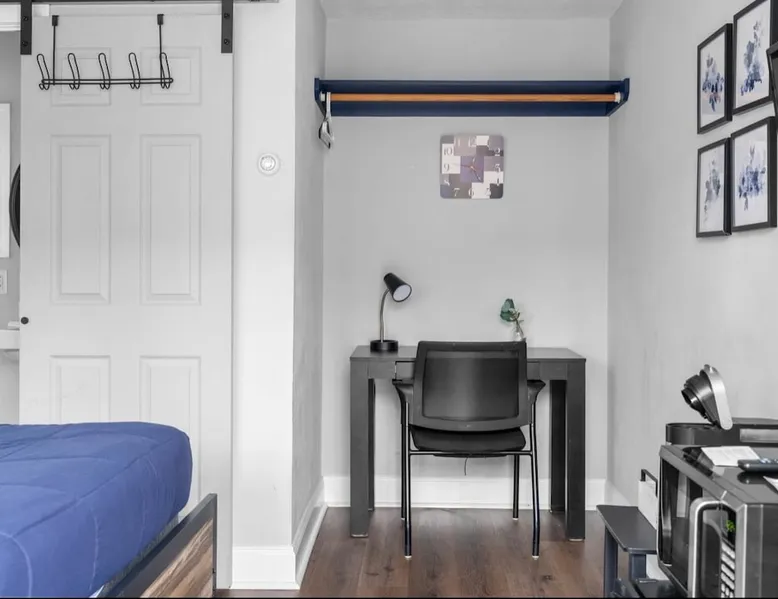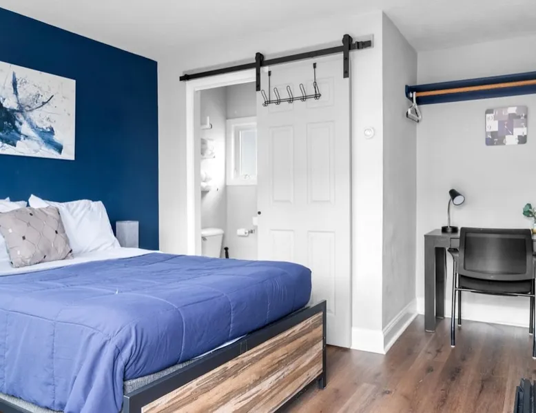 Cozy, clean, and just what you need for a comfortable stay. This charming boutique studio features a full-size bed, a private bathroom with fresh towels, and a mini fridge to keep your snacks and drinks chilled. You'll also find a coffee machine to help kickstart your day. It’s the perfect spot for solo travelers or couples looking to relax and unwind.