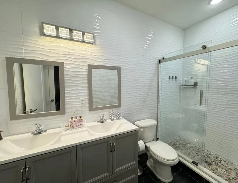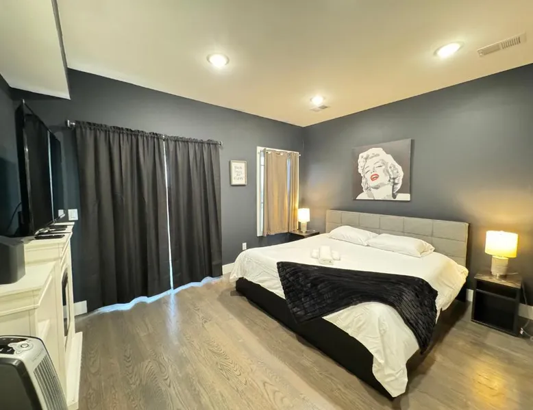 Spacious Accommodations: Stunning NYC rooftop views minutes away from NYC offers a spacious apartment in Jersey City. The property features two bedrooms and two bathrooms, complemented by a comfortable living room. Modern Amenities: Guests enjoy free WiFi, air-conditioning, and a terrace with city views. The apartment includes a fully equipped kitchen, washing machine, and free on-site private parking. Convenient Location: Located 7.5 mi from Newark Liberty International Airport, the property is close to attractions such as the Statue of Liberty (1.5 mi) and Ellis Island (2.2 mi). An ice-skating rink is also nearby. Highly Rated by Guests: The apartment receives high ratings for its spaciousness and excellent facilities, ensuring a pleasant stay for all visitors. Guests will find a stovetop, a refrigerator, a dishwasher and kitchenware in the well-equipped kitchen. The apartment also comes with a barbecue. The spacious air-conditioned apartment features a flat-screen TV, a washing machine, a private entrance, a tea and coffee maker as well as city views. The unit has 5 beds.