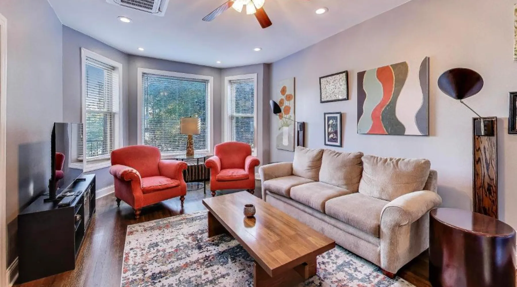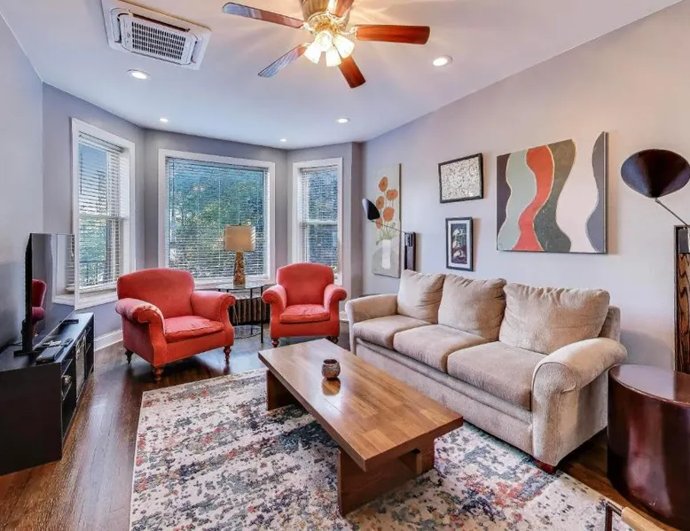 Spacious Accommodations: Edgewater Andersonville-area Apt Close to Loyola Lake EZ Parking in Chicago offers a spacious apartment with three bedrooms and one bathroom. The property features a garden, terrace, and free WiFi, ensuring a comfortable stay. Modern Amenities: Guests enjoy air-conditioning, a balcony, and a fully equipped kitchen with a washing machine. Additional amenities include a fireplace, dining area, and free on-site parking. Private check-in and check-out services, an electric vehicle charging station, and laundry service enhance convenience. Prime Location: Located 12 mi from Chicago O'Hare International Airport, the apartment is a 14-minute walk from Loyola University Chicago. Nearby attractions include Foster Beach (1.8 mi), Wrigley Field (3.7 mi), and Lincoln Park Zoo (6.2 mi). An ice-skating rink is also in the surroundings. This apartment's standout feature is the fireplace. Boasting a private entrance, this spacious apartment also includes 3 bedrooms, a seating area and 1 bathroom with a bath and a shower. In the fully equipped kitchen, guests will find a stovetop, a refrigerator, a dishwasher and kitchenware. The air-conditioned apartment offers a flat-screen TV, a washing machine, a tea and coffee maker, a dining area as well as garden views. The unit has 3 beds.