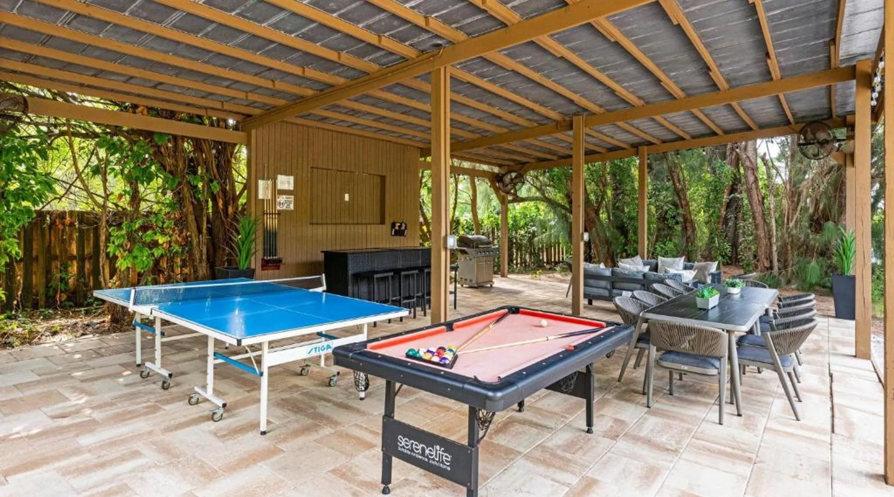 Spacious Accommodations: 8BR Entertainers Estate w Pool Games Theater in Coconut Creek offers a spacious villa with eight bedrooms and four bathrooms. Guests enjoy a private pool, garden views, and free WiFi throughout the property. Outdoor Amenities: The villa features an outdoor swimming pool, perfect for relaxation. Additional facilities include a barbecue area, tea and coffee maker, and a fully equipped kitchen with modern appliances. Convenient Location: Located 8.7 mi from Boca Raton Airport, the property is close to attractions such as Mizner Park (9.3 mi) and Pompano Beach Amphitheater (12 mi). Free on-site parking is available for guests. This villa provides a private pool. The spacious villa features 8 bedrooms and 4 bathrooms with a bath and free toiletries. Guests will find a stovetop, a refrigerator, a dishwasher and an oven in the well-fitted kitchen. The villa also has a barbecue. The air-conditioned villa offers a TV, a washing machine, a tea and coffee maker, tumble dryer as well as garden views. The unit offers 8 beds.