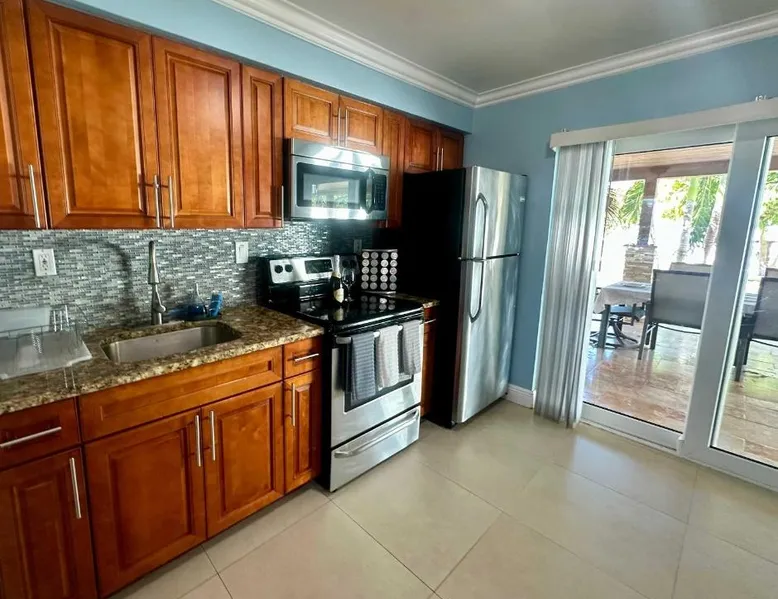 Spacious Accommodations: Family-Ready 3 BDR Oasis Near Pompano Beach in Pompano Beach offers a spacious holiday home with three bedrooms and two bathrooms. The living room provides ample space for relaxation. Modern Amenities: Guests enjoy free WiFi, air-conditioning, a washing machine, and a fully equipped kitchen. Additional amenities include a barbecue, outdoor furniture, and a TV. Outdoor Spaces: A beautiful garden offers a tranquil retreat. Free on-site parking is available for convenience. Nearby Attractions: Pompano Beach Amphitheater is 3.7 mi away, Pompano Pier 5 mi, and Fort Lauderdale Executive Airport 8.7 mi from the property. An ice-skating rink is located in the surrounding area. The air-conditioned holiday home features 3 bedrooms, 2 bathrooms and a kitchen. The holiday home's kitchen is available for cooking and storing food. The spacious holiday home provides a washing machine, a barbecue and outdoor furniture. The unit offers 4 beds.