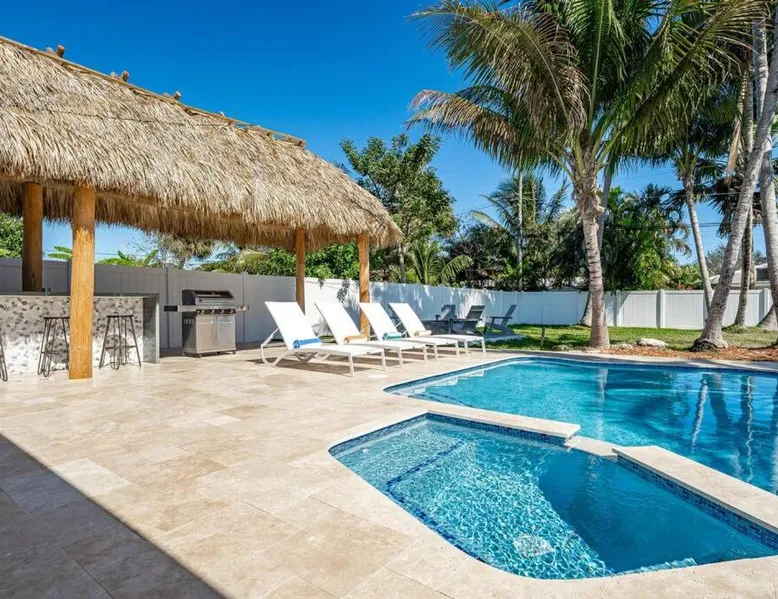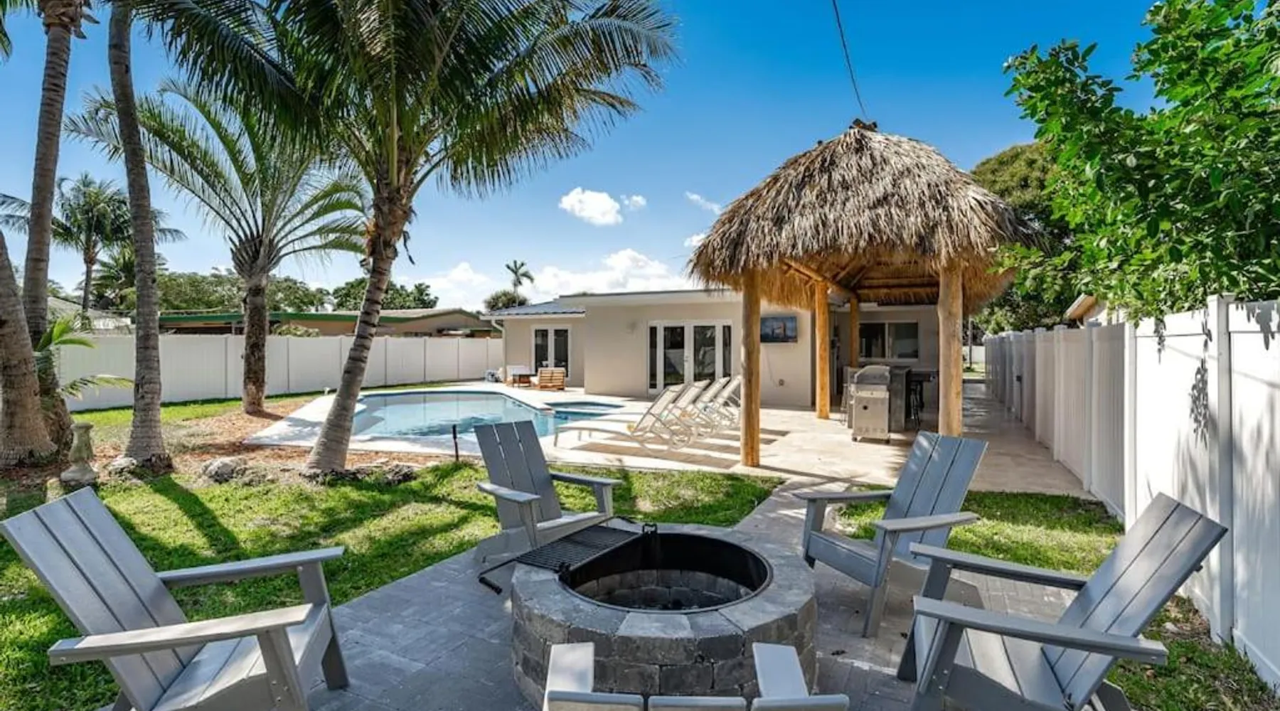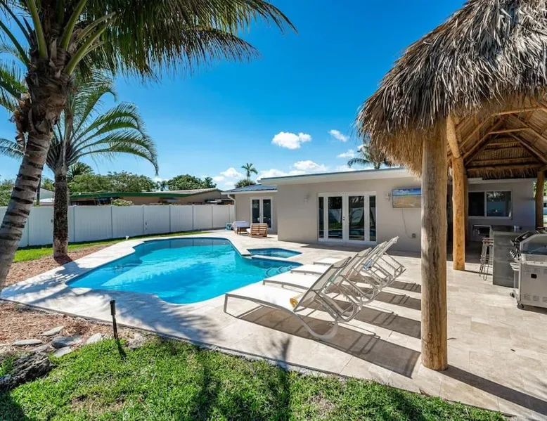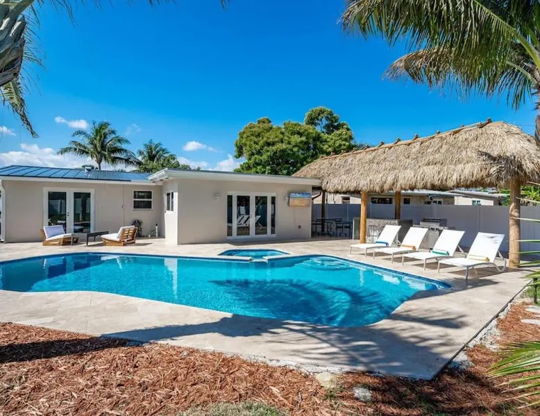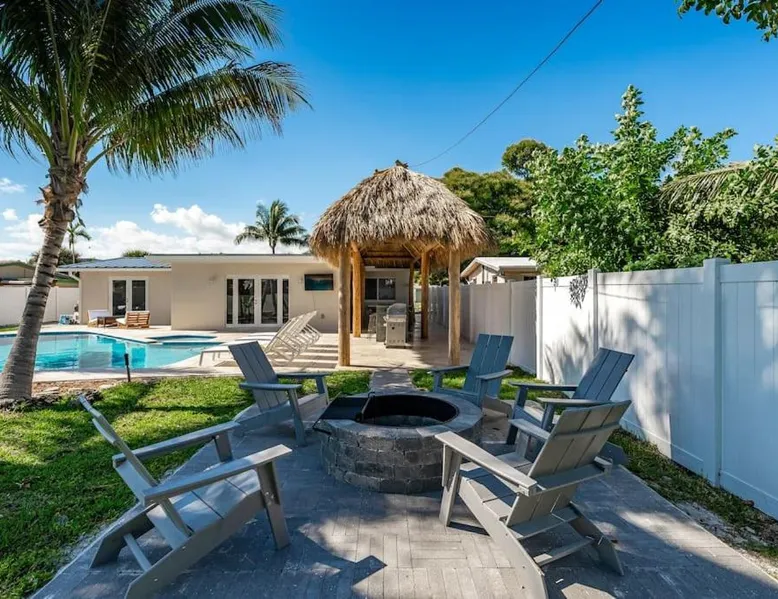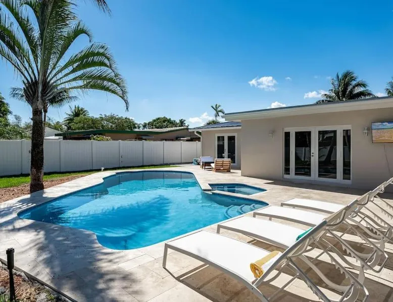 Spacious Holiday Home in Pompano Beach: Heated Pool - 1 Mile to Beach - FirePit offers a spacious holiday home in Pompano Beach. The property features four bedrooms and two bathrooms, ensuring ample space for guests. Exceptional Facilities: Guests can enjoy a saltwater swimming pool, lush garden, and a cozy firepit. Free WiFi is available throughout the property, enhancing the stay experience. Comfortable Amenities: The holiday home includes air-conditioning, a fully equipped kitchen, washing machine, and family rooms. Additional amenities include a hot tub, barbecue, and outdoor furniture. Convenient Location: Located 12 mi from Boca Raton Airport, the property is close to Pompano Beach (1.2 mi), Pompano Beach Amphitheater (less than 0.6 mi), and Pompano Pier (1.2 mi). Nearby attractions include Pompano City Center (1.8 mi) and Isle Of Capri Casino And Race Track (4.3 mi). The private pool is the standout feature of this holiday home. This spacious holiday home comes with 4 bedrooms, a kitchen and 2 bathrooms with a bath and a shower. Guests will find a stovetop, a refrigerator, a dishwasher and kitchenware in the kitchen. The holiday home also includes a barbecue. The air-conditioned holiday home features a flat-screen TV, a washing machine, a tea and coffee maker, a dining area as well as garden views. The unit has 5 beds.