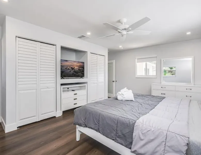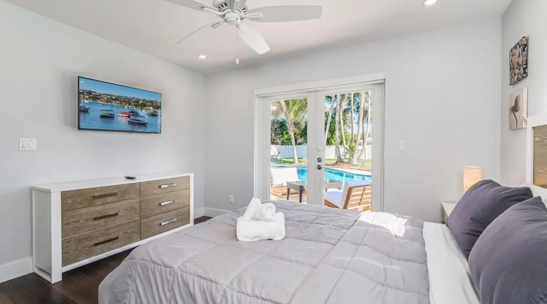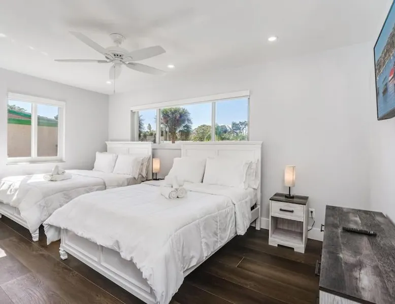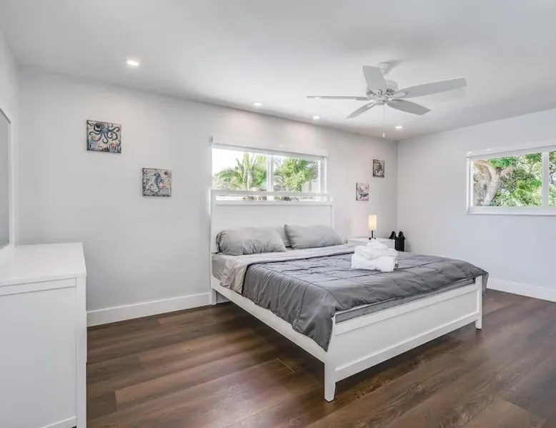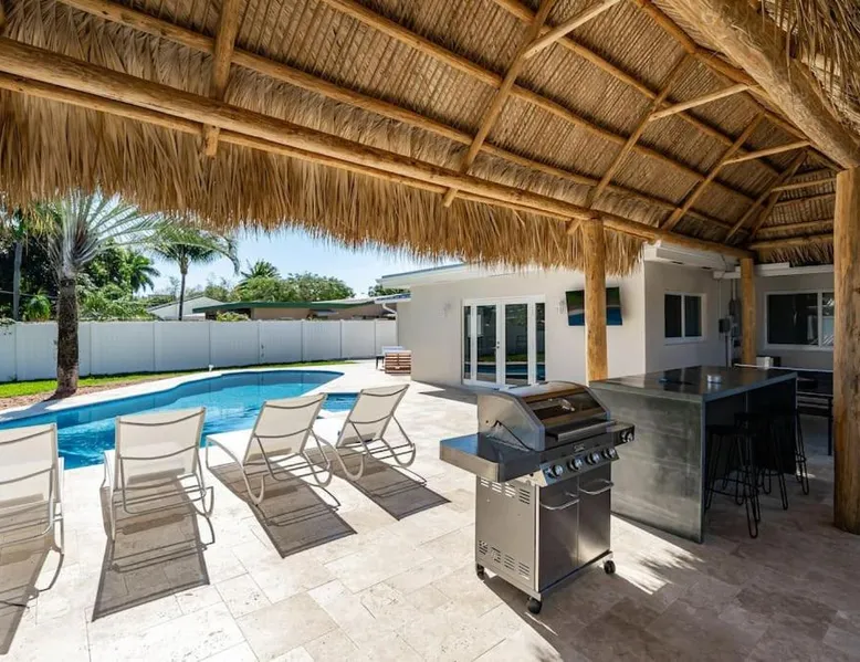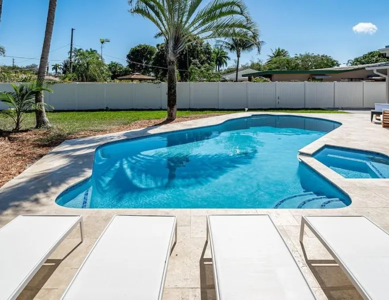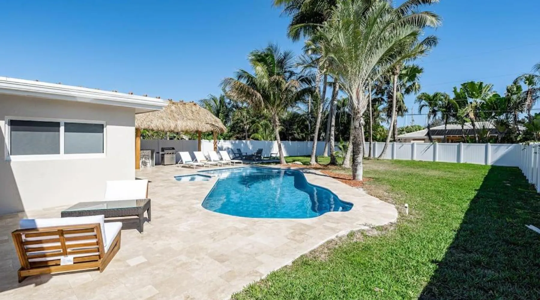 Spacious Holiday Home in Pompano Beach: Heated Pool - 1 Mile to Beach - FirePit offers a spacious holiday home in Pompano Beach. The property features four bedrooms and two bathrooms, ensuring ample space for guests. Exceptional Facilities: Guests can enjoy a saltwater swimming pool, lush garden, and a cozy firepit. Free WiFi is available throughout the property, enhancing the stay experience. Comfortable Amenities: The holiday home includes air-conditioning, a fully equipped kitchen, washing machine, and family rooms. Additional amenities include a hot tub, barbecue, and outdoor furniture. Convenient Location: Located 12 mi from Boca Raton Airport, the property is close to Pompano Beach (1.2 mi), Pompano Beach Amphitheater (less than 0.6 mi), and Pompano Pier (1.2 mi). Nearby attractions include Pompano City Center (1.8 mi) and Isle Of Capri Casino And Race Track (4.3 mi). The private pool is the standout feature of this holiday home. This spacious holiday home comes with 4 bedrooms, a kitchen and 2 bathrooms with a bath and a shower. Guests will find a stovetop, a refrigerator, a dishwasher and kitchenware in the kitchen. The holiday home also includes a barbecue. The air-conditioned holiday home features a flat-screen TV, a washing machine, a tea and coffee maker, a dining area as well as garden views. The unit has 5 beds.