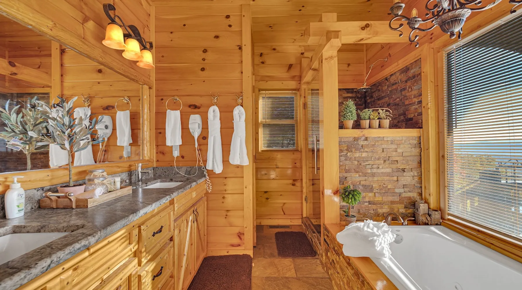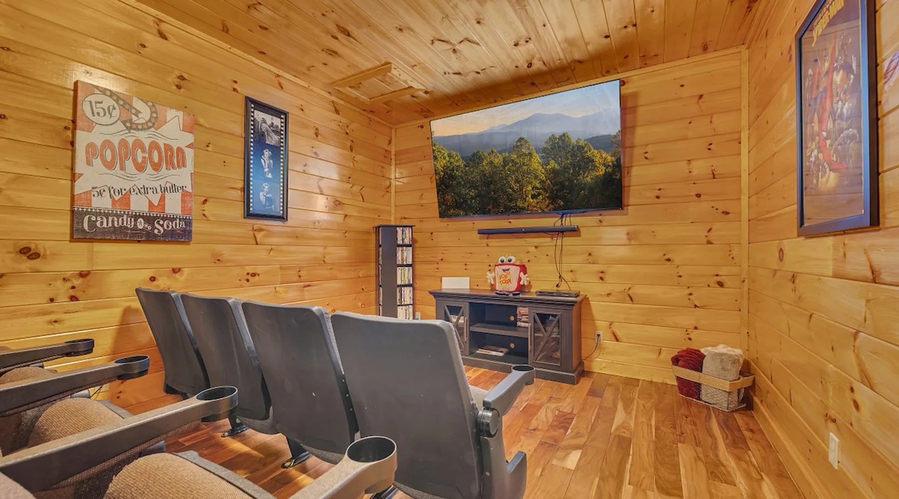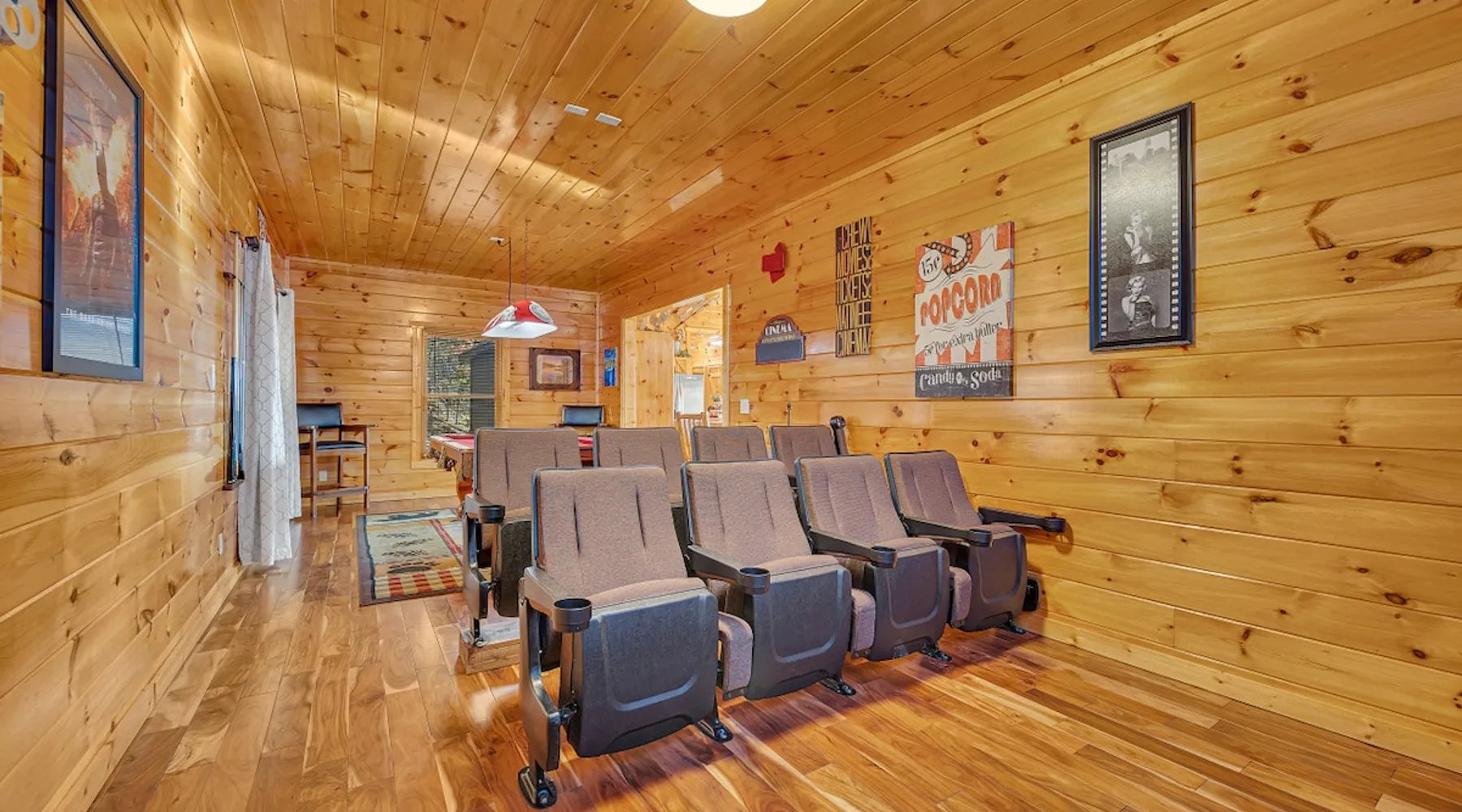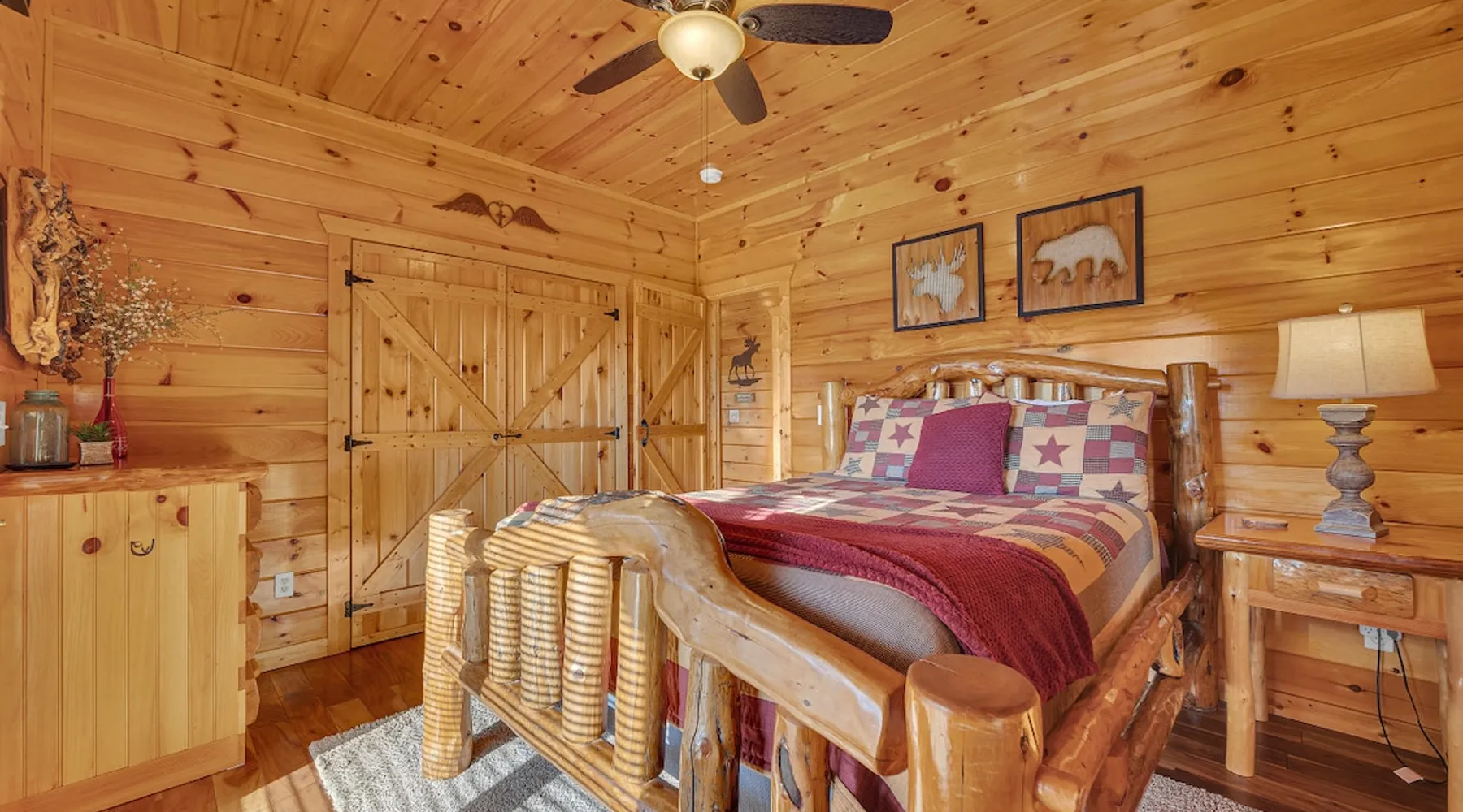 Tucked into 60 private acres in the Smoky Mountains, this Sevierville retreat combines rustic charm with modern luxury for unforgettable group escapes. 🌲 Private 60-acre mountain setting 🔥 Hot tub, fire pit & barnwood bar 🎱 Game room + media room 🍳 Outdoor kitchen & stocked indoor kitchen 🛏 Sleeps 12 across 3 bedrooms 📶 Fast WiFi & smart TVs throughout Perfect for families, couples, or friends reconnecting. The space Highlights: Outdoor Living: Hot tub, fire pit, charcoal grill, outdoor bar, furnished deck with forest views Kitchen Features: Stainless steel appliances, Keurig & drip coffee makers, Crockpot, island seating Living & Entertainment: Pool table, media room, vaulted ceilings, smart TVs, DVD player Convenience & Comfort: Ceiling fans, washer/dryer, complimentary toiletries, linens & towels Extras: Mile-long gravel road to the cabin—4WD recommended for winter or non-local drivers Single-story layout after entry stairs Starter amounts of essentials provided Sleeping Arrangements: Bedroom 1: King Bed Bedroom 2: Queen Bed Bedroom 3: Queen Bed, 2 Bunk Beds (Twin over Queen = 4 beds) Parking: Gravel driveway; 4WD required in winter/snow; not suitable for compact/sport vehicles Other things to note House Rules: •No Smoking •No events, parties, or large gatherings •Must be at least 25 years old to book •You must submit ID within 48 hours of booking. •Please report any damages that occur to both the Guest Contact and Triad Vacation Rentals