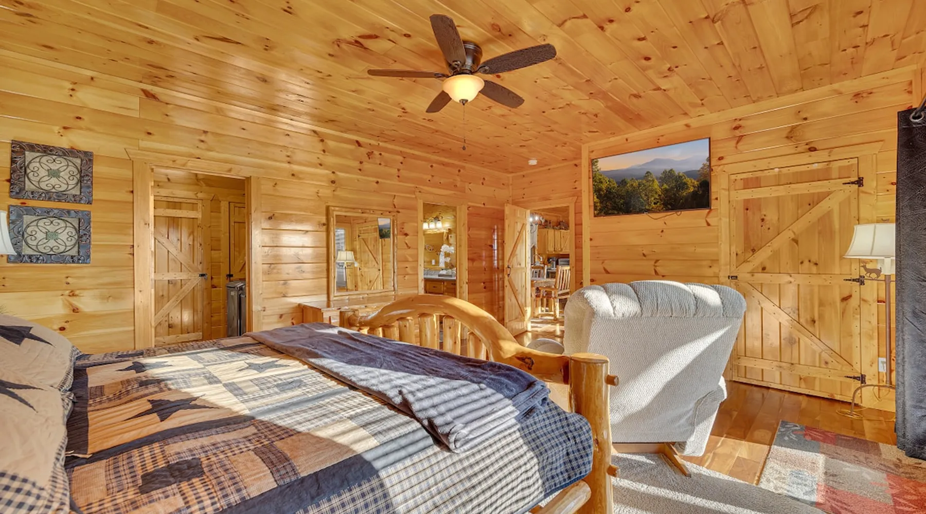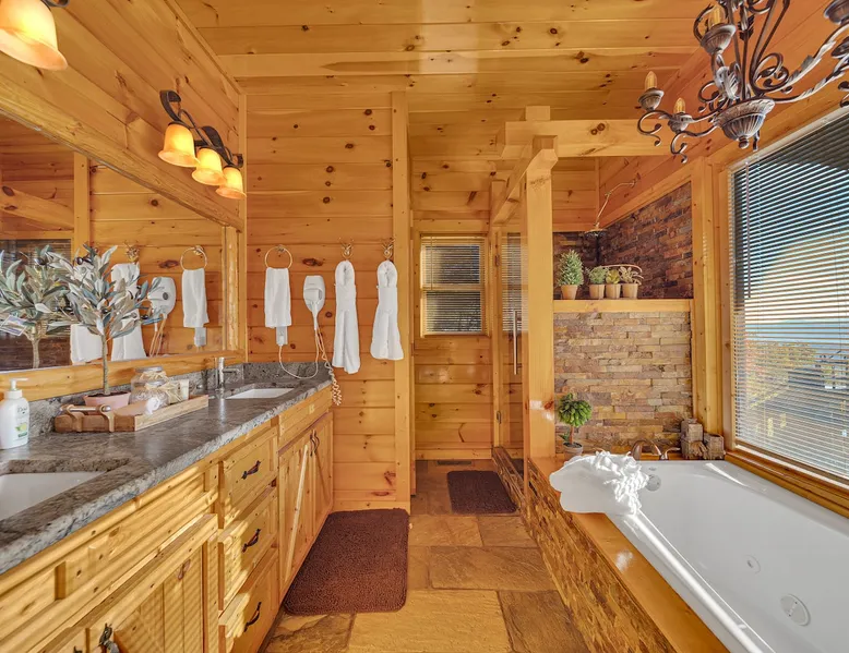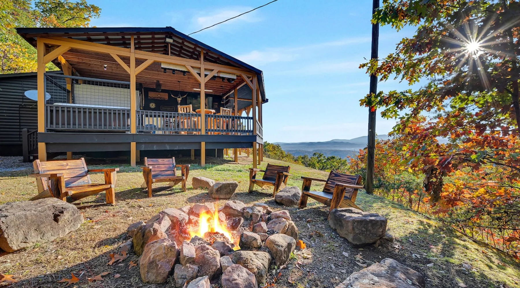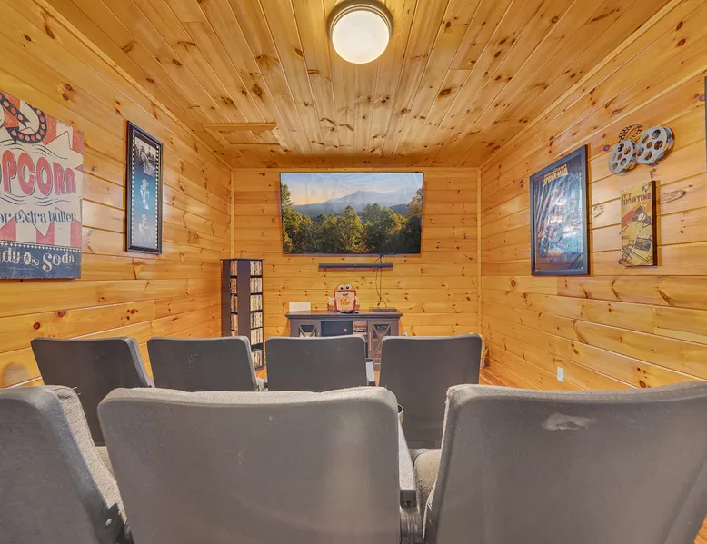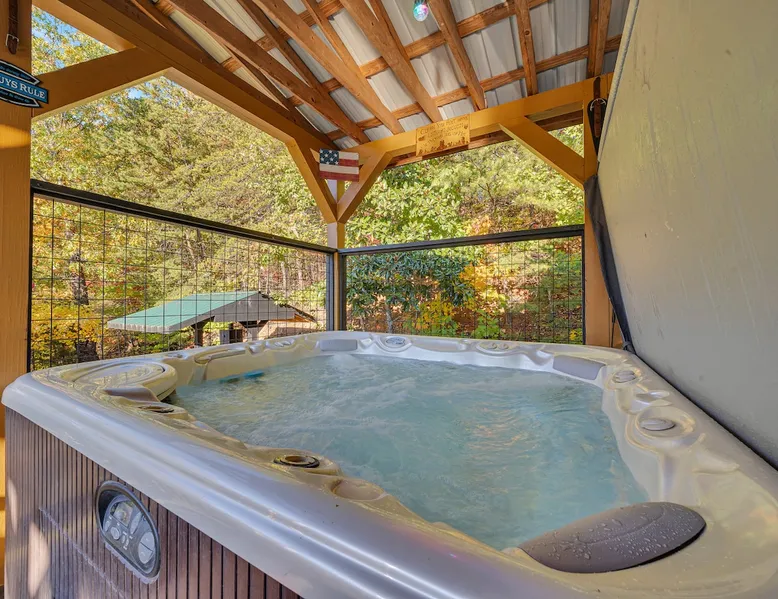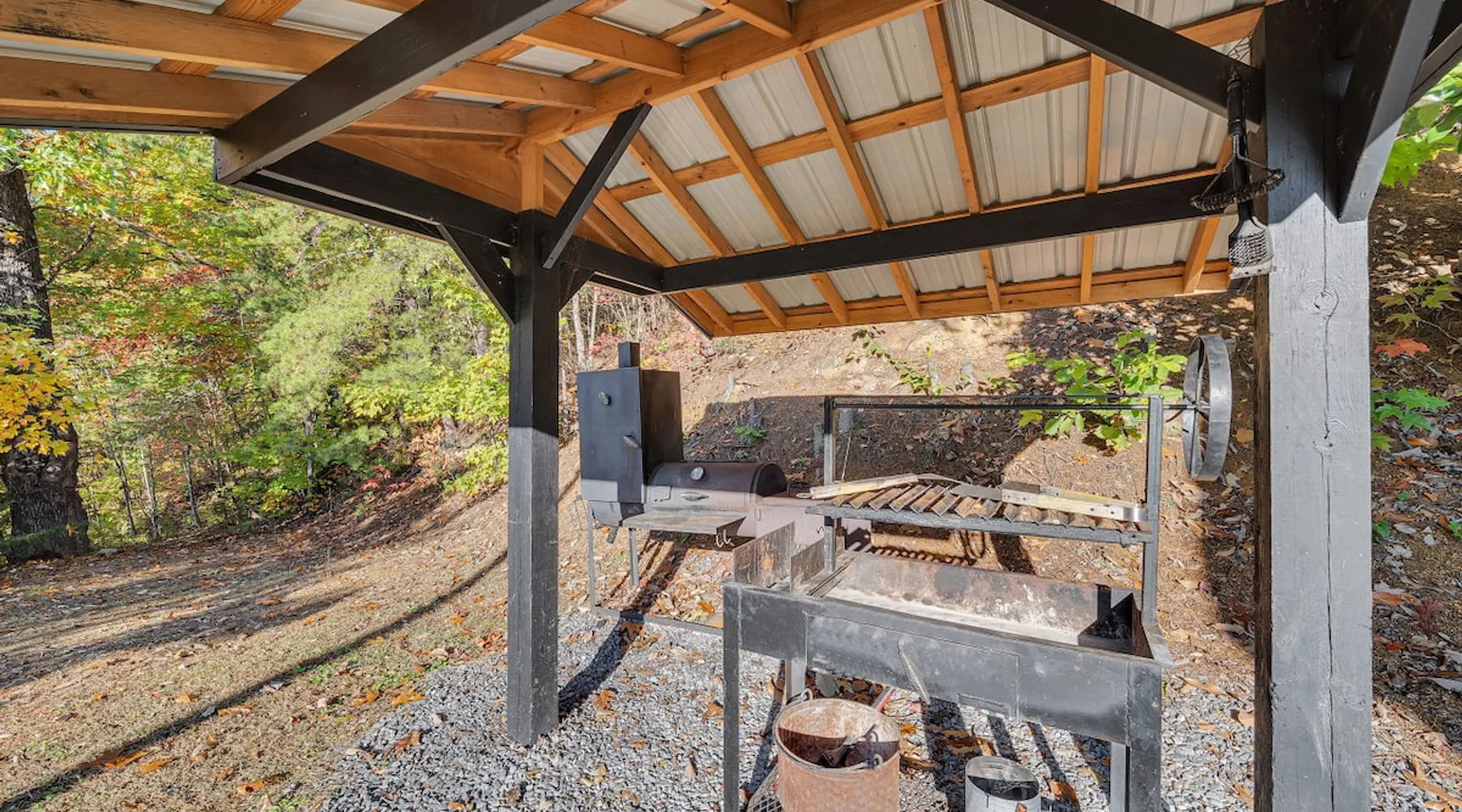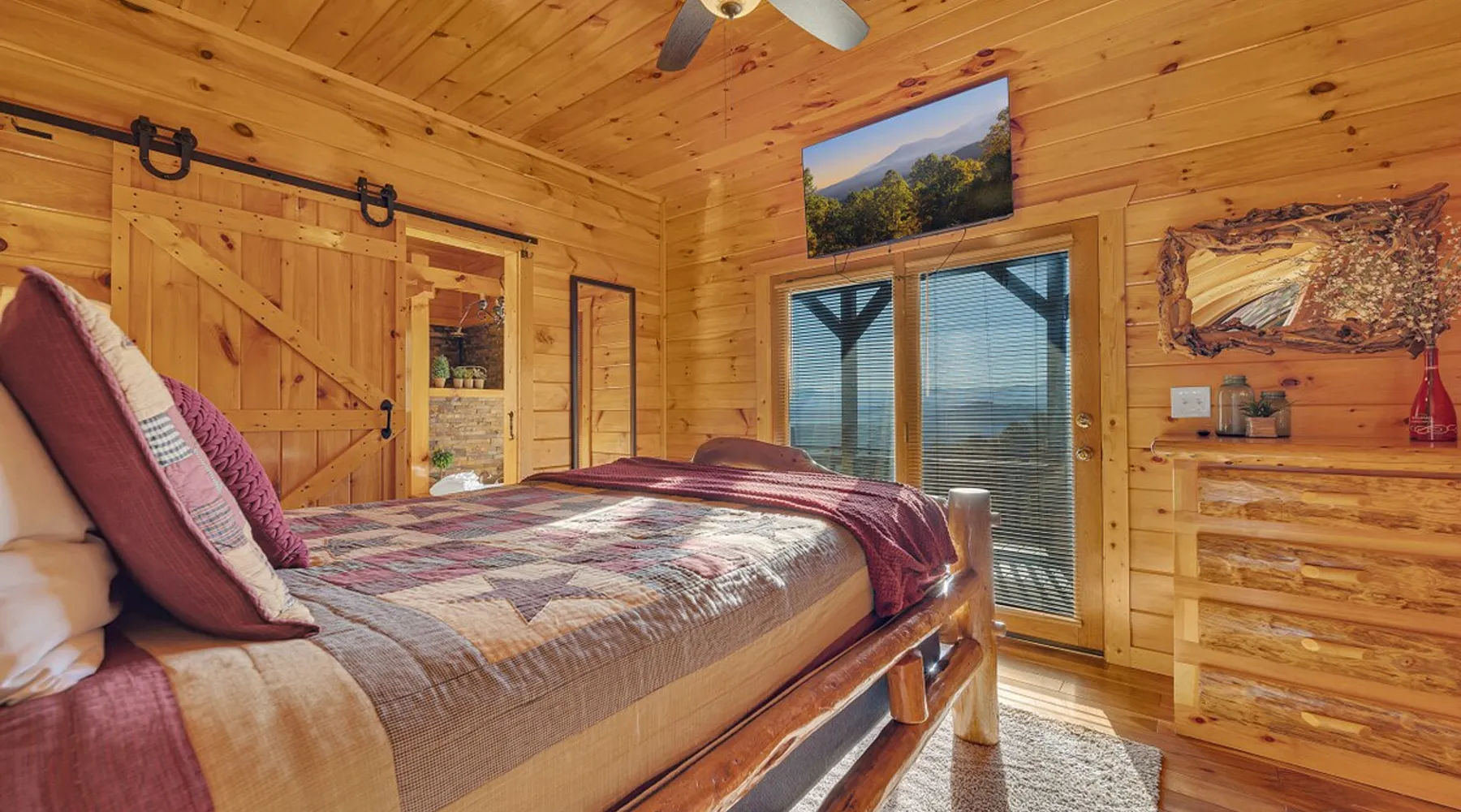 Tucked into 60 private acres in the Smoky Mountains, this Sevierville retreat combines rustic charm with modern luxury for unforgettable group escapes. 🌲 Private 60-acre mountain setting 🔥 Hot tub, fire pit & barnwood bar 🎱 Game room + media room 🍳 Outdoor kitchen & stocked indoor kitchen 🛏 Sleeps 12 across 3 bedrooms 📶 Fast WiFi & smart TVs throughout Perfect for families, couples, or friends reconnecting. The space Highlights: Outdoor Living: Hot tub, fire pit, charcoal grill, outdoor bar, furnished deck with forest views Kitchen Features: Stainless steel appliances, Keurig & drip coffee makers, Crockpot, island seating Living & Entertainment: Pool table, media room, vaulted ceilings, smart TVs, DVD player Convenience & Comfort: Ceiling fans, washer/dryer, complimentary toiletries, linens & towels Extras: Mile-long gravel road to the cabin—4WD recommended for winter or non-local drivers Single-story layout after entry stairs Starter amounts of essentials provided Sleeping Arrangements: Bedroom 1: King Bed Bedroom 2: Queen Bed Bedroom 3: Queen Bed, 2 Bunk Beds (Twin over Queen = 4 beds) Parking: Gravel driveway; 4WD required in winter/snow; not suitable for compact/sport vehicles Other things to note House Rules: •No Smoking •No events, parties, or large gatherings •Must be at least 25 years old to book •You must submit ID within 48 hours of booking. •Please report any damages that occur to both the Guest Contact and Triad Vacation Rentals