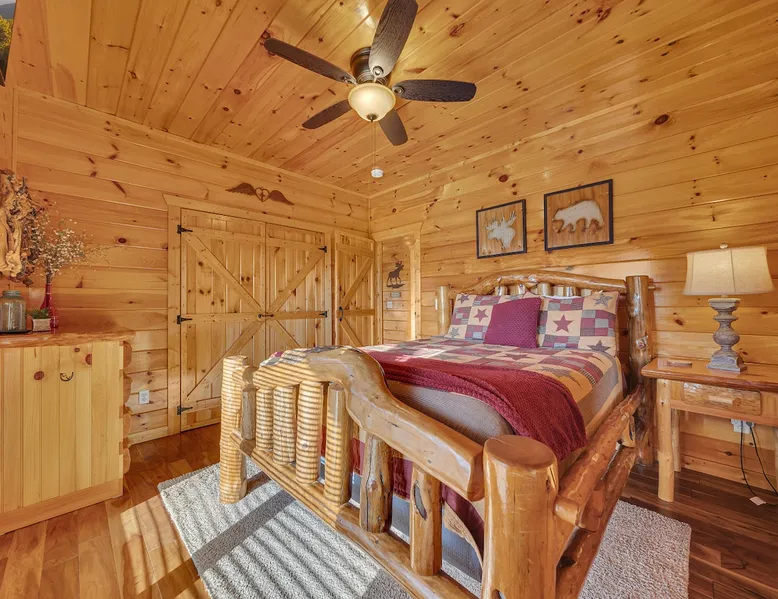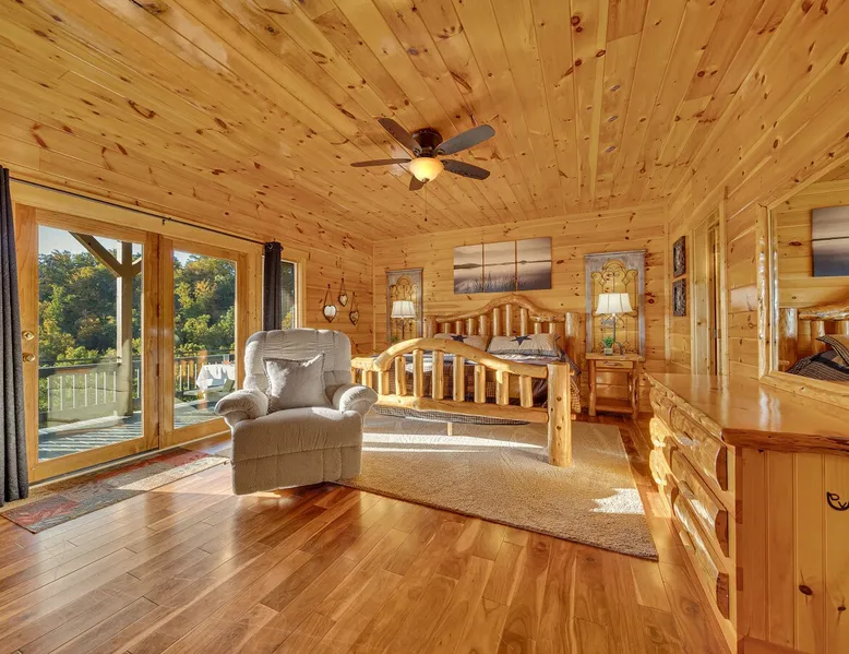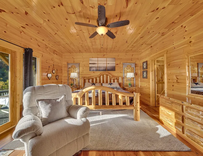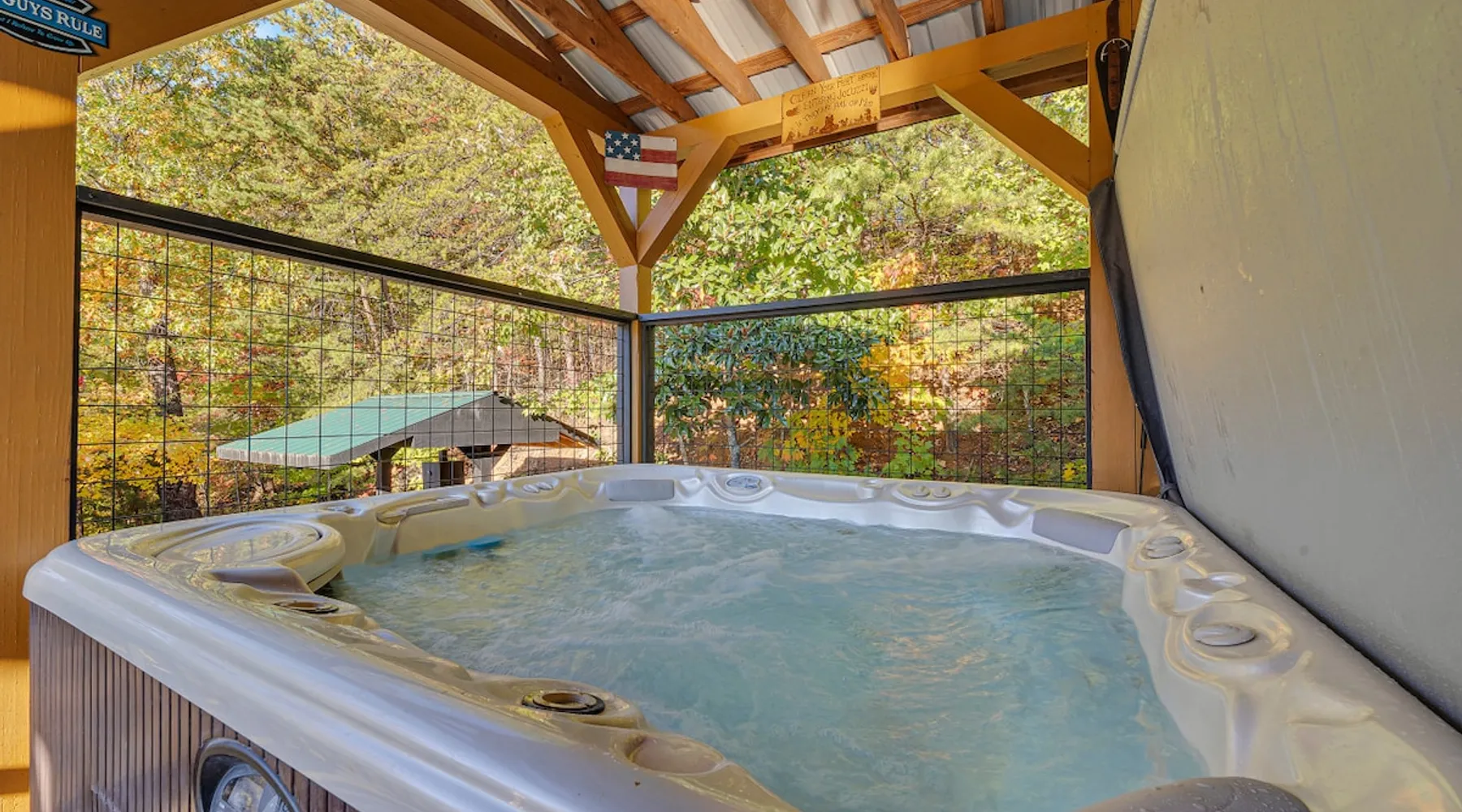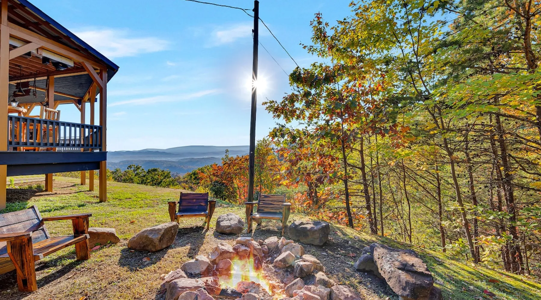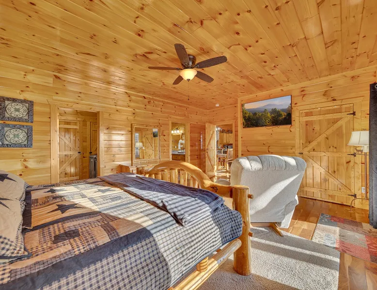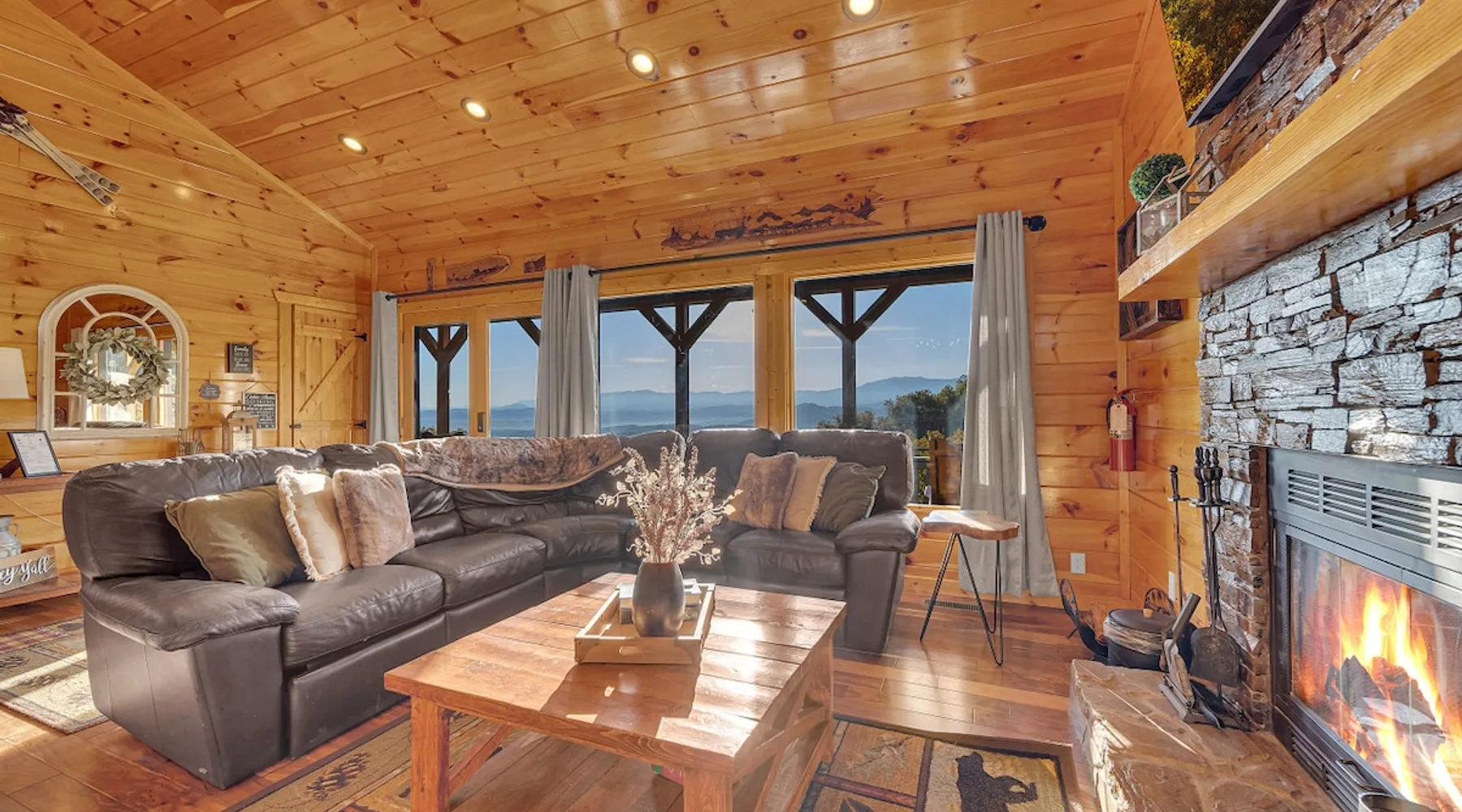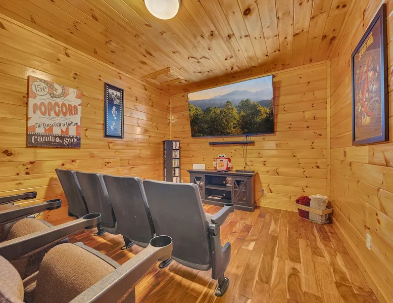Tucked into 60 private acres in the Smoky Mountains, this Sevierville retreat combines rustic charm with modern luxury for unforgettable group escapes. 🌲 Private 60-acre mountain setting 🔥 Hot tub, fire pit & barnwood bar 🎱 Game room + media room 🍳 Outdoor kitchen & stocked indoor kitchen 🛏 Sleeps 12 across 3 bedrooms 📶 Fast WiFi & smart TVs throughout Perfect for families, couples, or friends reconnecting. The space Highlights: Outdoor Living: Hot tub, fire pit, charcoal grill, outdoor bar, furnished deck with forest views Kitchen Features: Stainless steel appliances, Keurig & drip coffee makers, Crockpot, island seating Living & Entertainment: Pool table, media room, vaulted ceilings, smart TVs, DVD player Convenience & Comfort: Ceiling fans, washer/dryer, complimentary toiletries, linens & towels Extras: Mile-long gravel road to the cabin—4WD recommended for winter or non-local drivers Single-story layout after entry stairs Starter amounts of essentials provided Sleeping Arrangements: Bedroom 1: King Bed Bedroom 2: Queen Bed Bedroom 3: Queen Bed, 2 Bunk Beds (Twin over Queen = 4 beds) Parking: Gravel driveway; 4WD required in winter/snow; not suitable for compact/sport vehicles Other things to note House Rules: •No Smoking •No events, parties, or large gatherings •Must be at least 25 years old to book •You must submit ID within 48 hours of booking. •Please report any damages that occur to both the Guest Contact and Triad Vacation Rentals