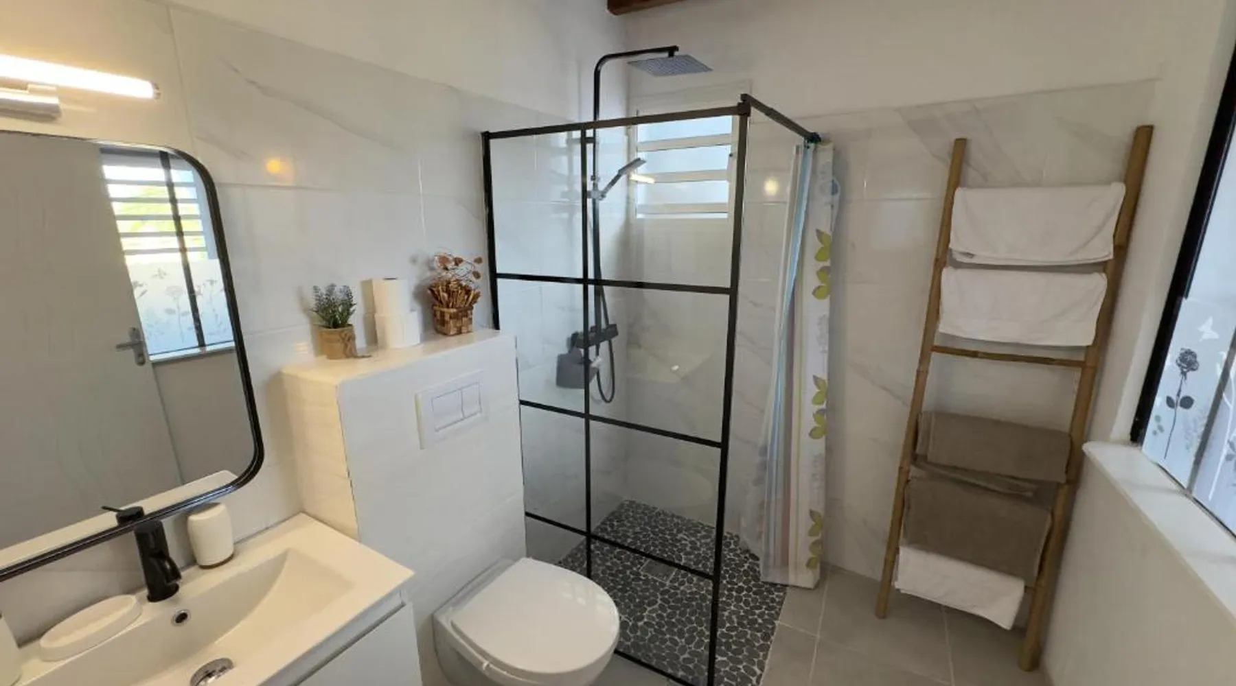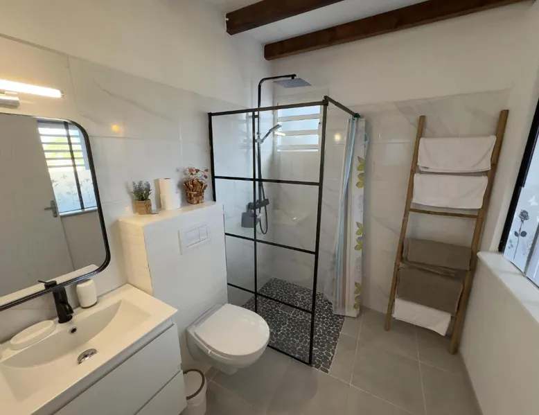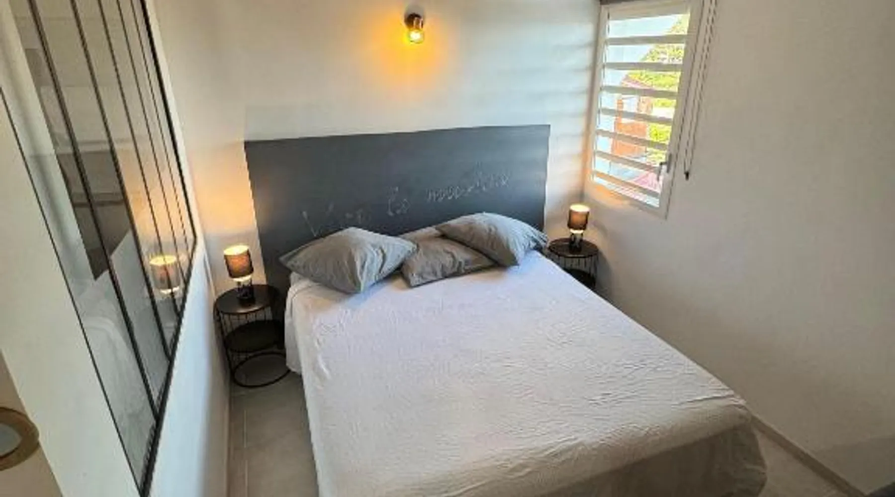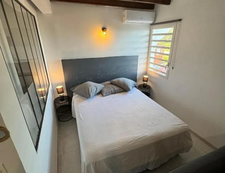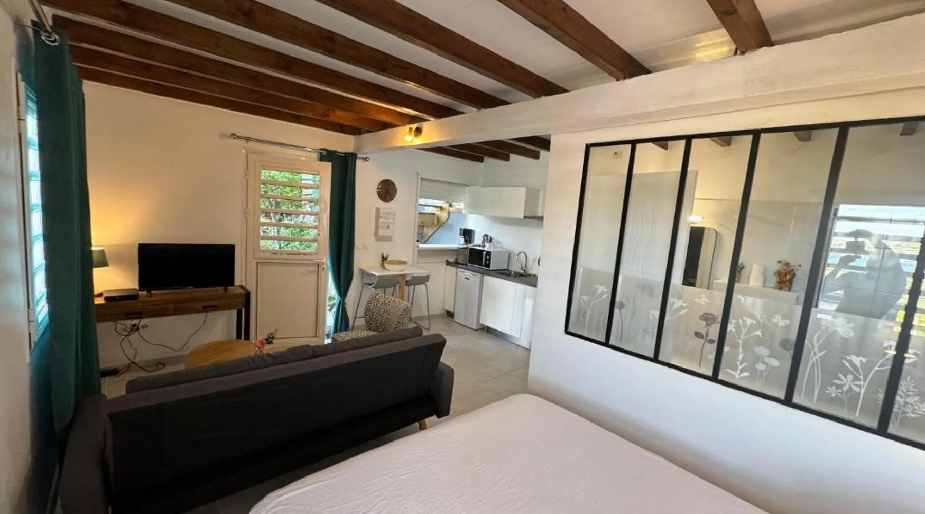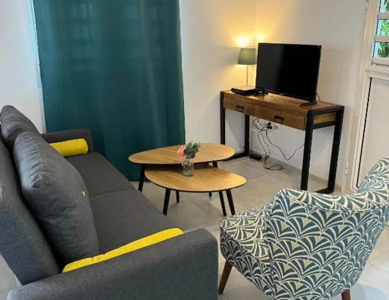 Essential Facilities: BE BLUE GREEN in Fort de France offers a garden, terrace, bar, and free WiFi. Guests can relax in the hot tub or enjoy the coffee shop. Free parking is available. Comfortable Accommodations: The apartment features one bedroom, a living room, and a bathroom. Air-conditioning, a kitchenette, and a dining area enhance comfort. Breakfast and Dining: A continental breakfast with juice, cheese, and fruits is served daily. Outdoor dining areas provide scenic views. Prime Location: Located 9.3 mi from Martinique Aime Cesaire International Airport and 1.2 mi from La Française Beach and Plage de la Batellière. Highly rated for its host, scenic views, and comfortable beds. This apartment's special feature is the hot tub. Featuring a private entrance, this air-conditioned apartment consists of 1 living room, 1 separate bedroom and 1 bathroom with a walk-in shower and a hairdryer. Guests can make meals in the kitchen that is equipped with a stovetop, a refrigerator, kitchenware and an oven. Boasting a terrace with sea views, this apartment also provides soundproof walls and a flat-screen TV with streaming services. The unit offers 2 beds.
