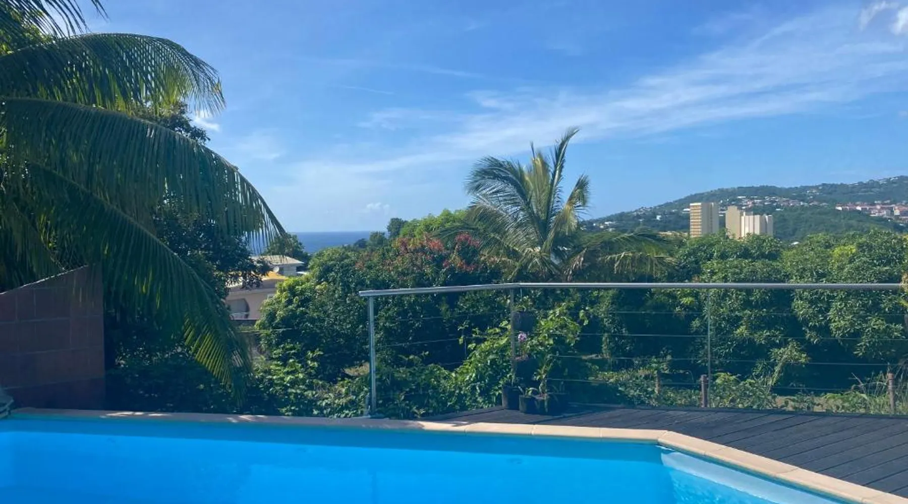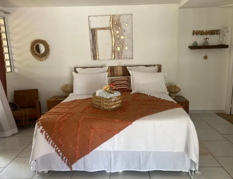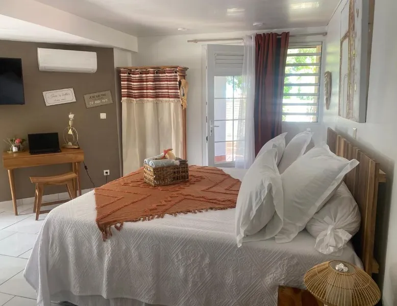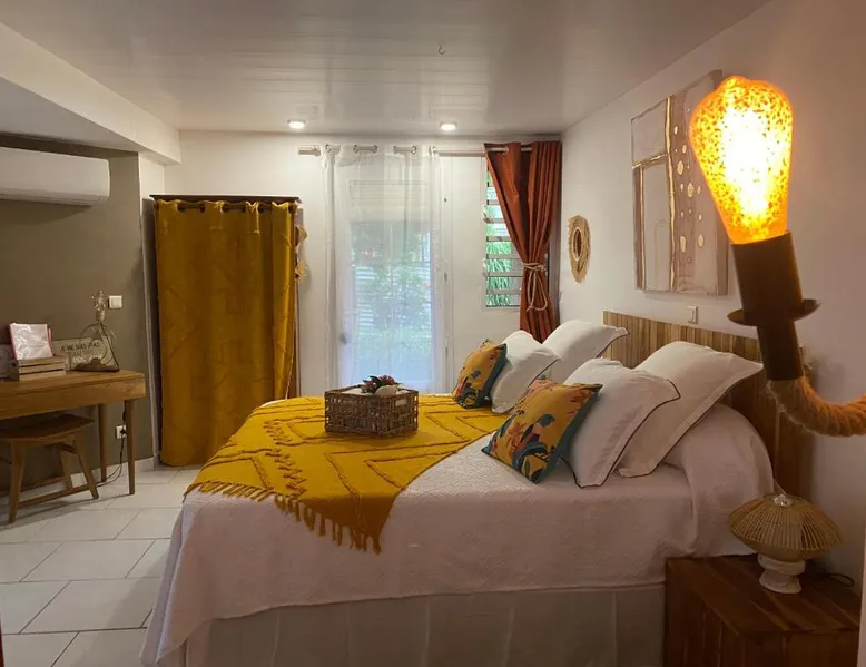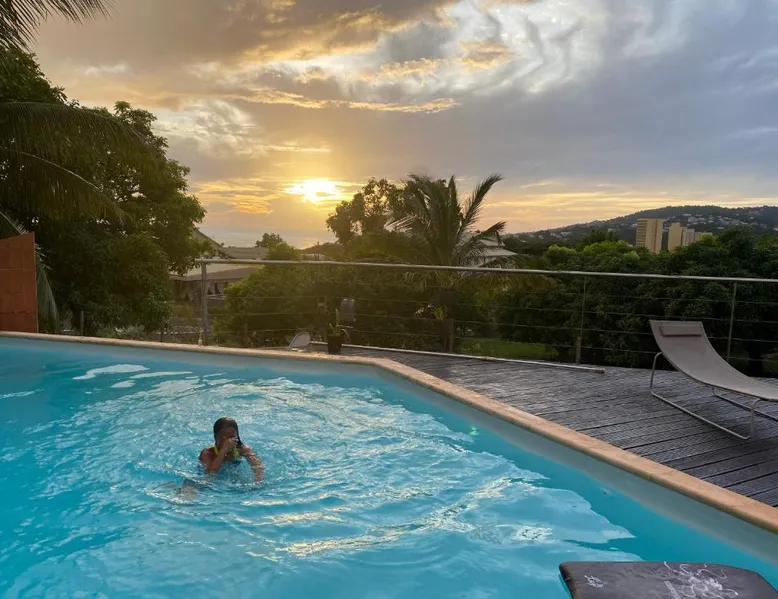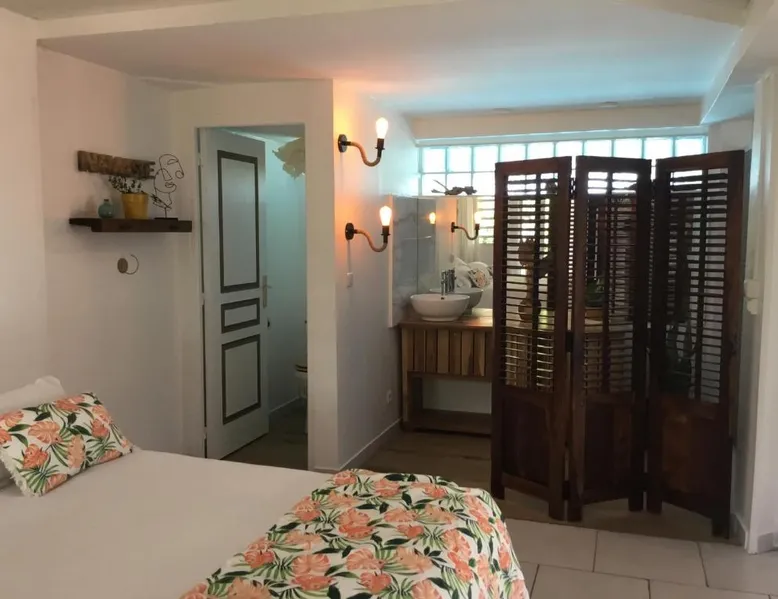 Elegant Accommodations: AU PIPIRI LÉVÉ in Schœlcher offers a homestay experience with a garden, terrace, and a year-round outdoor swimming pool. Free WiFi is available throughout the property. Comfortable Amenities: Guests can enjoy air-conditioning, a kitchenette, and a private bathroom equipped with a walk-in shower. Additional amenities include a dining area, outdoor furniture, and a barbecue. Convenient Location: Located 9.9 mi from Martinique Aime Cesaire International Airport, the homestay is 1.2 mi from Plage De Case Navire. Free on-site parking is provided. This double room's special feature is the pool with a view. Guests will find a stovetop, a refrigerator, kitchenware and a microwave in the kitchenette. The double room also provides guests with a barbecue. This air-conditioned double room includes a flat-screen TV with streaming services, a private bathroom as well as a terrace with garden views. The unit offers 1 bed.