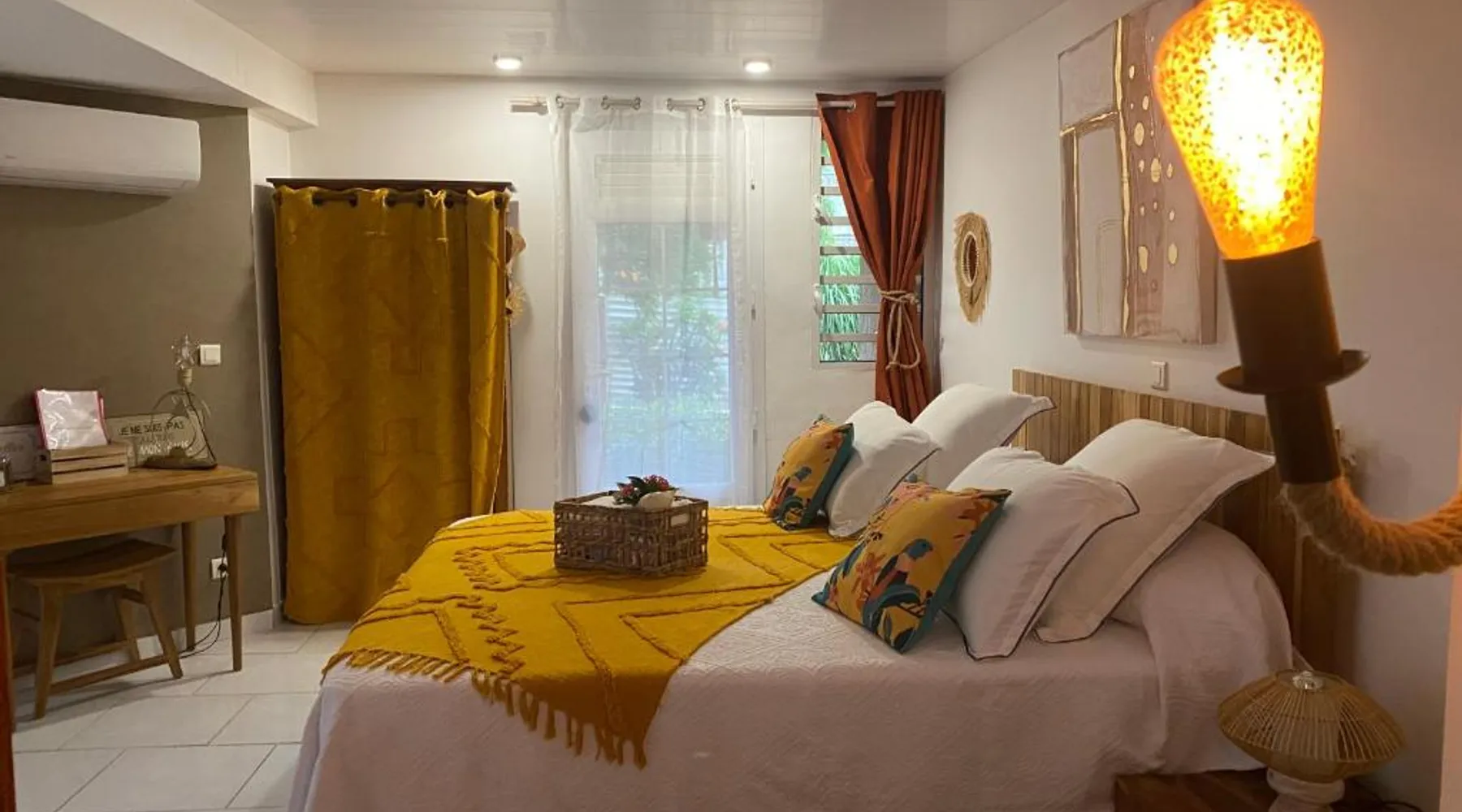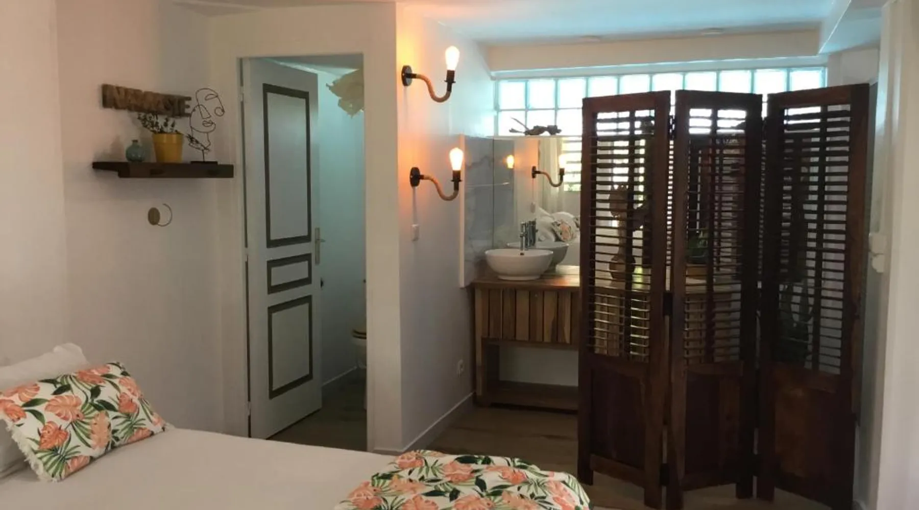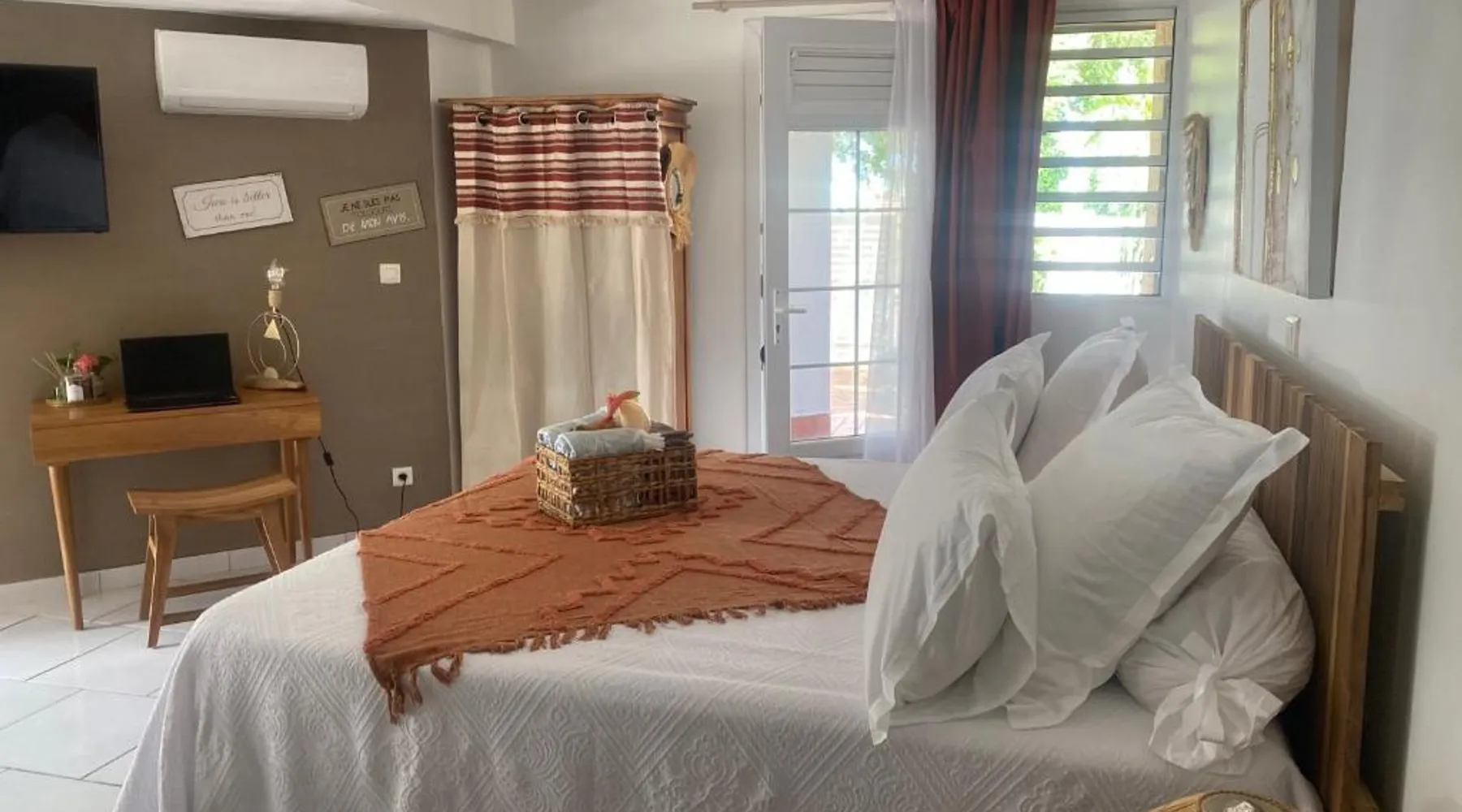 Elegant Accommodations: AU PIPIRI LÉVÉ in Schœlcher offers a homestay experience with a garden, terrace, and a year-round outdoor swimming pool. Free WiFi is available throughout the property. Comfortable Amenities: Guests can enjoy air-conditioning, a kitchenette, and a private bathroom equipped with a walk-in shower. Additional amenities include a dining area, outdoor furniture, and a barbecue. Convenient Location: Located 9.9 mi from Martinique Aime Cesaire International Airport, the homestay is 1.2 mi from Plage De Case Navire. Free on-site parking is provided. This double room's special feature is the pool with a view. Guests will find a stovetop, a refrigerator, kitchenware and a microwave in the kitchenette. The double room also provides guests with a barbecue. This air-conditioned double room includes a flat-screen TV with streaming services, a private bathroom as well as a terrace with garden views. The unit offers 1 bed.