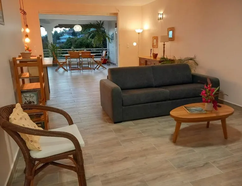Spacious Accommodations: Terrasses ouvertes sur la mer in Schœlcher offers a spacious apartment with two bedrooms and a living room. The property features a terrace with sea views and a private entrance. Modern Amenities: Guests enjoy free WiFi, air-conditioning, and a fully equipped kitchen with a washing machine. Additional amenities include streaming services, a dishwasher, and a sofa bed. Convenient Location: Located 13 mi from Martinique Aime Cesaire International Airport, the apartment is 1.4 mi from Plage de l'Anse Collat. A quiet street provides a peaceful setting. Featuring a private entrance, this air-conditioned apartment is consisted of of 1 living room, 2 separate bedrooms and 1 bathroom with a bath or a shower and a hairdryer. Guests will find a stovetop, a refrigerator, a dishwasher and kitchenware in the kitchen. The apartment also has a barbecue. The spacious apartment offers a washing machine, a tea and coffee maker, a seating area, a flat-screen TV with streaming services, as well as sea views. The unit offers 4 beds.