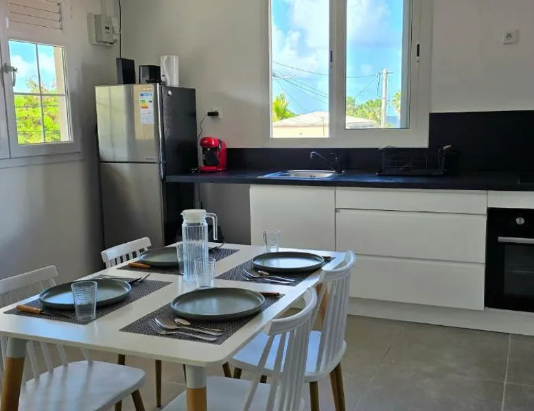 Spacious Accommodations: La Fleur Doré F3 Le Vauclin in Le Vauclin offers a spacious, recently renovated apartment with two bedrooms and a bathroom. Family rooms provide comfort for all guests. Modern Amenities: Guests enjoy free WiFi, air-conditioning, and a terrace with sea views. The apartment includes a fully equipped kitchen, dining area, and balcony. Additional features include a TV, sofa, and tiled floors. Convenient Location: Located 14 mi from Martinique Aime Cesaire International Airport, the property is a 16-minute walk from Pointe Faula Beach. Free off-site parking is available. Guest Satisfaction: Highly rated for room cleanliness, the apartment ensures a pleasant and comfortable stay. Boasting 2 bedrooms, this spacious apartment has 1 bathroom with a shower, a seating area and terrace where you can relax. The fully equipped kitchen has a stovetop, a refrigerator, kitchenware and an oven. The air-conditioned apartment features a flat-screen TV, a private entrance, a tea and coffee maker, a dining area as well as sea views. The unit offers 2 beds.