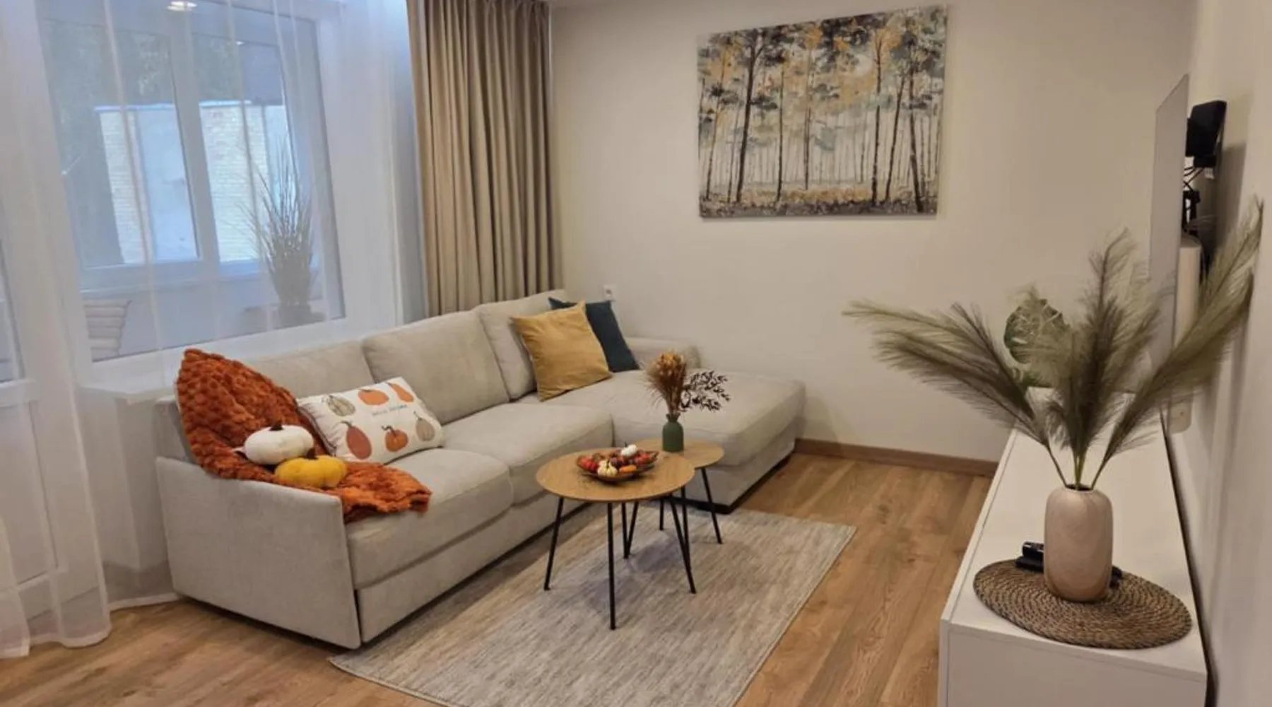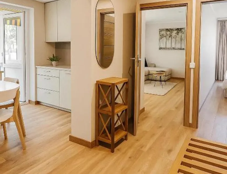 Comfortable Living Space: Apartamentų nuoma Juodkrantėje in Juodkrantė offers a one-bedroom apartment with a living room. The ground-floor unit features a balcony with garden views, a kitchenette, and a washing machine. Modern Amenities: Guests enjoy free WiFi, a fully equipped kitchen with a coffee machine, dishwasher, and oven. Additional amenities include a dining table, sofa, TV, and private entrance. Convenient Location: Located 35 mi from Palanga International Airport, the apartment is a 17-minute walk from Juodkrantė Beach. Nearby attractions include Amber Gallery in Nida and Thomas Mann Memorial Museum, each 17 mi away. Featuring a private entrance, this apartment consists of 1 living room, 1 separate bedroom and 1 bathroom with a shower and a hairdryer. The fully equipped kitchen features a stovetop, a refrigerator, a dishwasher and kitchenware. Boasting a balcony with garden views, this apartment also provides a washing machine and a flat-screen TV with cable channels. The unit offers 3 beds.