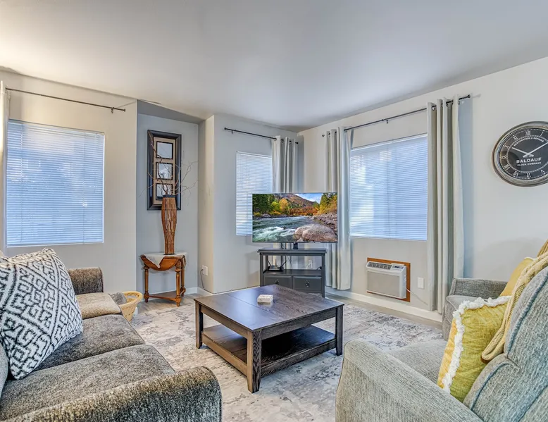 *Note* We’re experienced 5-Star hosts managing several condos here. This is our newest! Book with confidence. Welcome to Schatzi Chalet! Step inside this ground floor condo & you’ll immediately notice that everything from the floors to the ceiling are fresh & new. Our condo features a bright, open layout w/modern furnishings & huge patio. Even better, it comes with free parking & walking distance to Downtown Leavenworth. Sleeps up to 6 (see below for layout) Pet Friendly w/Pet Fee (Max 2) The space →Sleeping Arrangements (Sleeps 6): •Master: King bed w/ensuite bathroom & Smart TV •Second Bedroom: Queen bed •Living Room: Queen-size luxury sleeper sofa →Enjoy: •Fully stocked kitchen (prepare full meals) •Full size laundry area w/detergent & softener •Two Smart TV's (login with your apps) •Memory Foam Luxury Sofa Bed (Queen) •Ground Floor w/oversized patio area •Double Recliners •2 Full Bathrooms (one in master) •AC in Summer & Heat thermostat •Pet Friendly (w/fees, max 2) •Free Parking w/free additional parking onsite •Walk to ALL of the Festivities, Coaster & More! →Notes: We're not new to renting, as a matter of fact, we manage several 5-Star condos in this complex and this is our newest (literally... with everything brand new). Book your stay with confidence as we provide you with excellent customer service, cleanliness you'll keep talking about and an overall stress-free stay that will leave you with memories for a lifetime! QUESTIONS? Your questions are important to us and answered really fast! We're here to serve you & to make your stay incredibly memorable! Kristiina Miller, Property Manager iloveleavenworth Guest access The entire condo is yours! We give you 100% privacy but we will be available just as soon as you need us. All of our contact information is located in the binder on the kitchen counter. Other things to note Pets are accepted with the $50 pet fee per pet (max 2). Please don't bring any undisclosed pets. We tend to find out and then additional fees will be applied.