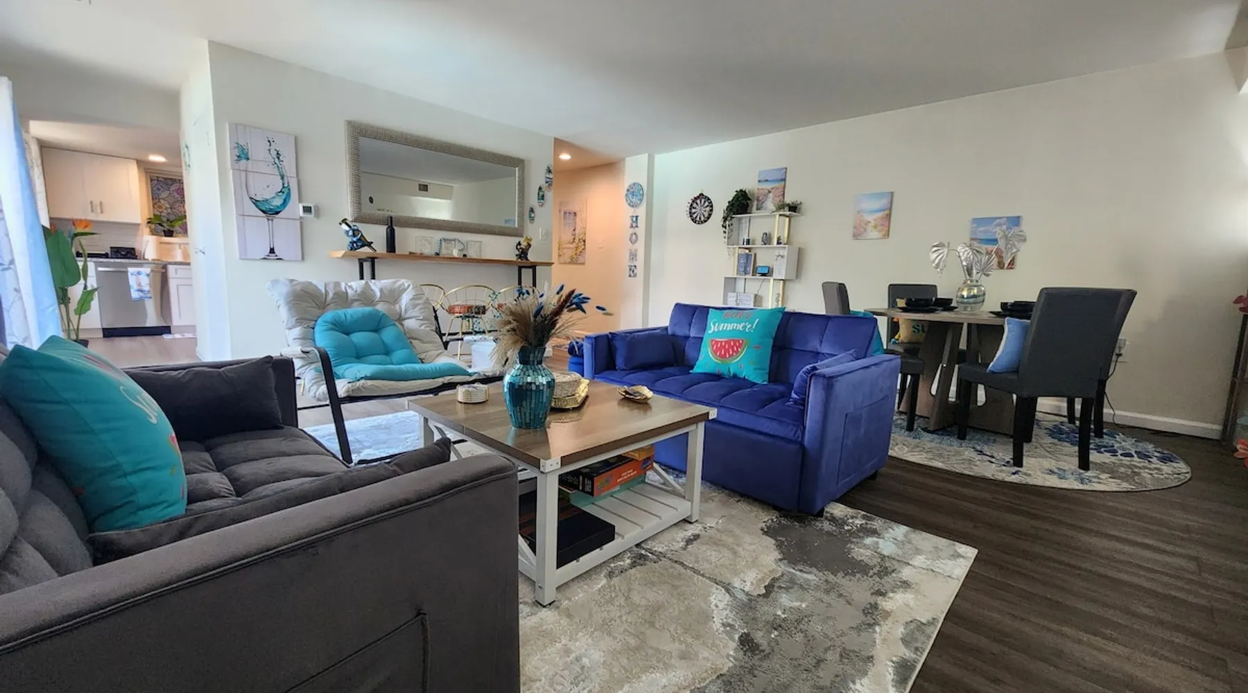 This cute 2 Bedroom/2 Bathroom unit is waiting for you! Located Close to the Beach, Boardwalk, Casinos, and right next to the new Island Waterpark at Showboat! The space is great to enjoy a getaway with friends and family in a private and relaxing setting. Perfect for a beach escape! Come enjoy a peaceful retreat at the Atlantic City Shore! The space Come stay at this cozy unit with an outside balcony and great amenities! Enjoy this space with all the comforts and convenience to make for a perfect stay. LIVING/DINING ROOM: -The unit has a spacious living area with a dining table, a comfortable living room setting with couches & seating, and a smart TV for your viewing pleasure (There is no cable for the TV just streaming apps). KITCHEN: -Fully equipped with newer appliances. SLEEPING ARRANGEMENTS: There are 2 spacious bedrooms, which comfortably sleep up to 6 guests. BEDROOM 1: 1 Queen Sized Bed, Full bath, Smart TV BEDROOM 2: 2 Full Sized Bed, Full bath, Smart TV ADDITIONAL SLEEPING: 2 Twin pull-out couches in the living room. AMENITIES: The home is also equipped with Wifi, a standard drip coffee maker, board games, a hair dryer, and much more! LOCATION: The unit is in a complex on a beach block directly across from Ocean Resort & Casino and next to The Showboat Hotel and Island Waterpark. Take a lovely, quick stroll to the boardwalk and beach. ADDITIONAL NOTES: -Please note that, like many areas of the city, the complex parking lot has the possibility of puddling or flooding when it rains. -This factor is out of our control, and we suggest parking at Ocean Casino across the street in the event that it becomes problematic. -Please excuse the complex's appearance, it is under new management, and the HOA is currently doing renovations and landscaping to maintain the building and grounds. POOL: - The development does have a pool that is open from mid June to Labor Day (opening and closing dates may vary) - This amenity can be added to your stay for an additional $50 per day. - The pool fee is non refundable - All guests must have a pool bracelet to access. There will be no entry without a valid bracelet. - The pool hours may vary based on the availability of the pool attendant. If the gate is locked, there is no access permitted to the pool area. - Use of the pool it at your own risk. - All children must be supervised at all times. - There is no jumping or diving permitted. - Please keep noise to a respectful level while using the pool. - If any guests violate the pool rules or cause any issues at the pool, they will be asked to leave and will not be permitted access for the duration of the stay. - All pool bracelets must be returned prior to check out. There will be a $200 fee for any lost or missing bracelets. - Please reach out to the host to coordinate the pool add on in advance. If you coordinate to use the pool, you will be provided with the official pool rules and the code to access the bracelets BOOK WITH US and unlock discounts and special offers exclusive to Cozy Cohost guests. Take advantage of all that Atlantic City has to offer and enjoy savings at top local spots including famous restaurants, night clubs, spas, coffee shops, distilleries, breweries, boat tours, bike rentals, mini golf, and more... Guest access ACCESS & ENTRY: -Guests will have access the entire 2 level unit and the outdoor balcony. -There are exterior stairs to enter the unit, and a set of interior stairs in the unit to the 2nd floor bedrooms and the bathrooms. -We ask that you please respect the home and the neighbors. -Please note that check-out time is promptly at 11:00 AM. Failure to check out by this time may result in a $100 fee per hour. We appreciate your cooperation in ensuring a smooth transition for our next guests. Thank you for your understanding! KEYLESS ENTRY: -There is keyless entry. Your host will provide you with the door code approximately one hour prior to check in the day of your trip. PARKING: -There is ONE designated parking space for guests to use. -We will release more information regarding parking with your check-in message. -Your car WILL be towed if it is not parked in the proper spot, so please be respectful of other's parking spaces. -Guests are responsible for city street parking compliance; read & follow signage to avoid parking tickets. -We are not responsible for guest's vehicles. -For any additional cars, we suggest utilizing self parking garage at Ocean Casino which is right across the street. MAIL: -We will not have access to the mailbox, so we advise to either not ship items there or to add "leave at door" to your delivery instructions. -If there is something of priority that you need shipped please reach out to us directly for alternative options. -We are not responsible for any items shipped to the property. ENVIRONMENTAL NOTES: -Property located in a city environment; potential for noise from cars or foot traffic. SECURITY: -The home is protected by exterior ring camera security. Other things to note HONESTY & EXPECTATIONS: At "BreezeWay", we want our guests to have a clear understanding of the distinctions between vacation rentals and hotels. While we diligently maintain our properties, wear and tear are inherent aspects of vacation rentals. Although we address issues promptly, the high volume of guests may result in occasional delays between stays. Any significant damage or serious concerns are prioritized and resolved before a guest's check-in, provided we are made aware of the issue. CLEANING: Our dedicated cleaning team meticulously sanitizes and cleans each home. Unlike standard hotel rooms, homes entail a more detailed cleaning process due to their larger size. Despite our team's efforts to ensure optimal cleanliness, minor oversights may occur. For substantial errors, we are committed to rectifying the situation promptly. While we take pride in our cleaning standards, we ask for understanding that, as in any human endeavor, perfection is not always attainable, 