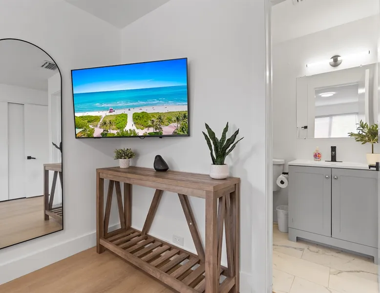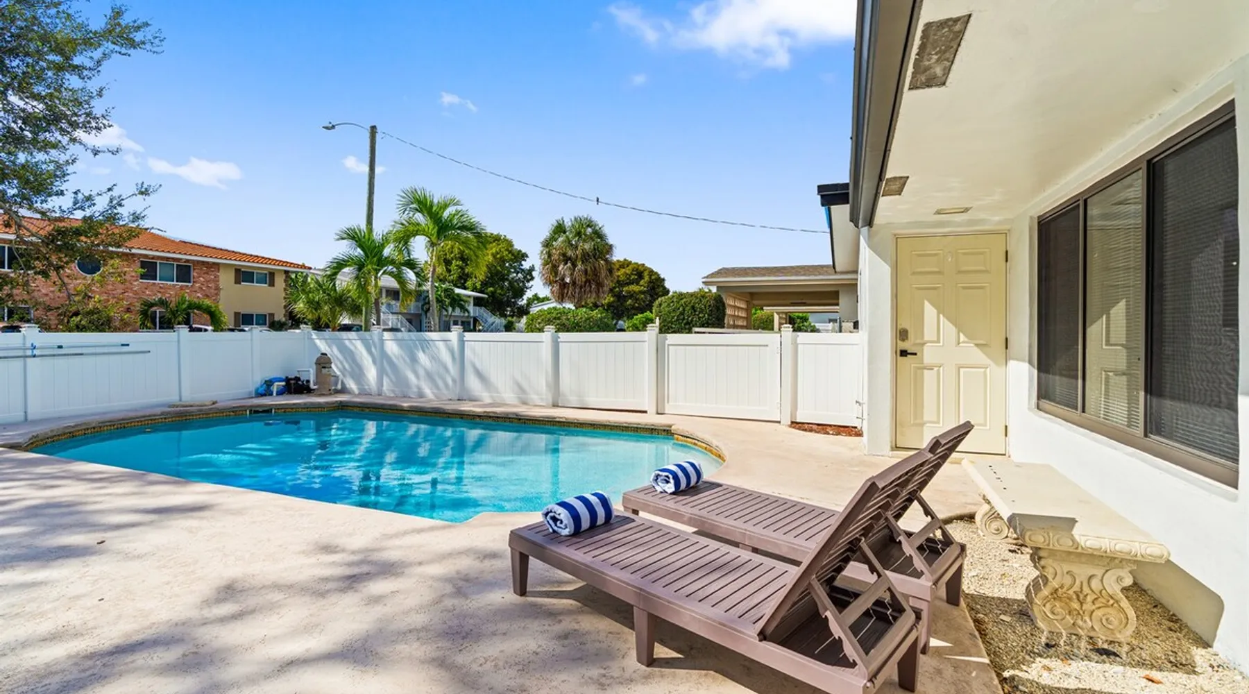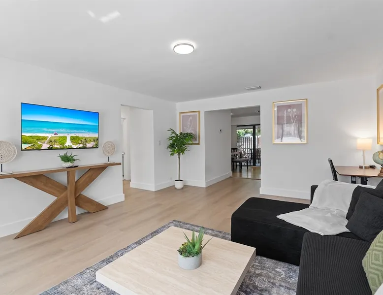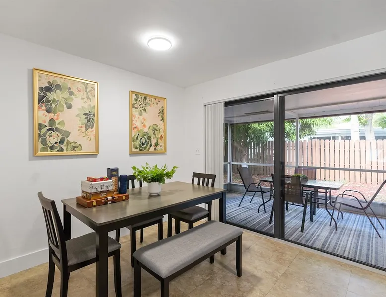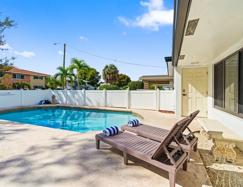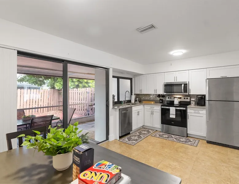 Experience a fresh, modern, professionally styled two-bedroom, two-bath retreat in one of Fort Lauderdale’s best and safest areas. This bright and spotless home features a relaxing master suite, TVs in every room, and a spacious living area with an ultra-comfortable sofa that can sleep two more guests. Enjoy a fully stocked kitchen, thoughtful amenities, and a private screened-in patio, all just minutes from top restaurants, beaches, shopping, & everything that makes South Florida unforgettable. Guest access The pool is shared with one identical neighboring unit. Other things to note Step into a beautifully designed, modern Fort Lauderdale getaway where comfort meets style. This brand-new, professionally decorated two-bedroom, two-bathroom home offers a fresh and airy atmosphere perfect for relaxing after a day of exploring the city. The master suite includes its own private bathroom and a plush bed, while every room is equipped with a flat-screen TV for easy unwinding. The open-concept living area features a spacious layout and an exceptionally comfortable sofa that can sleep two additional guests. The fully stocked kitchen includes everything you need — from cookware and utensils to small appliances — making meal prep simple and convenient. One of the home’s standout features is the private screened-in patio, offering a peaceful spot for morning coffee, evening cocktails, or simply enjoying the Florida breeze without the bugs. Located in one of Fort Lauderdale’s safest and most desirable neighborhoods, the home places you minutes from award-winning restaurants, charming cafés, vibrant shopping areas, and the beautiful beaches the city is known for. Whether you're here for relaxation, business, or adventure, this home delivers a clean, stylish, and effortless experience from start to finish.