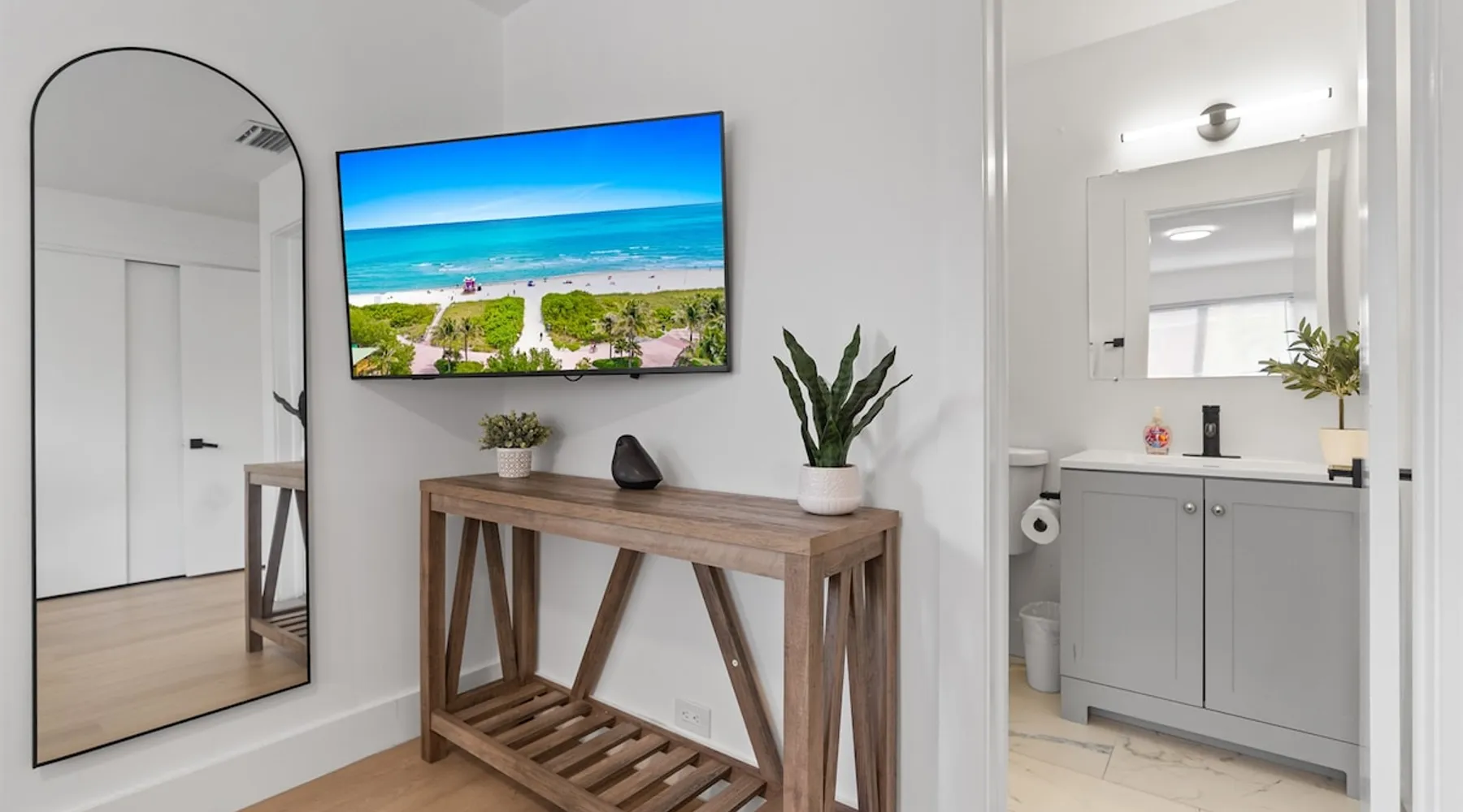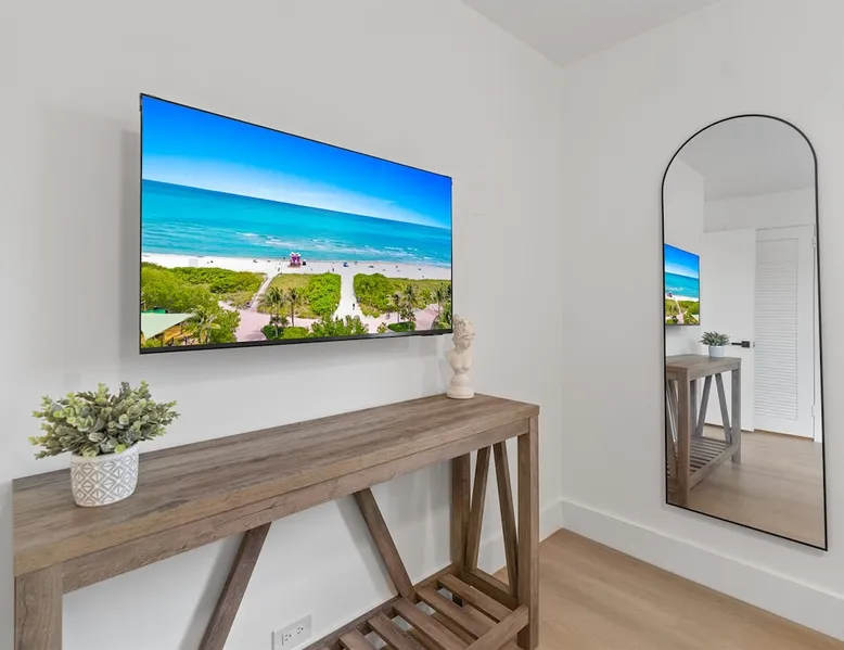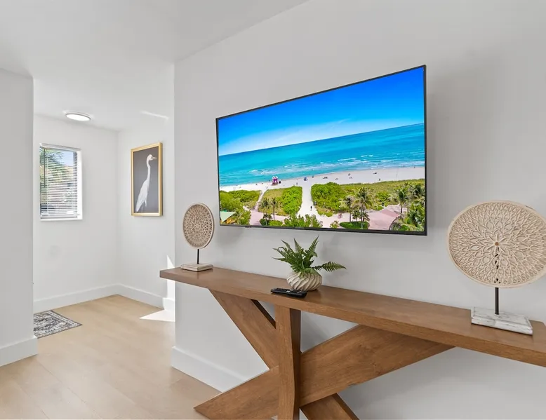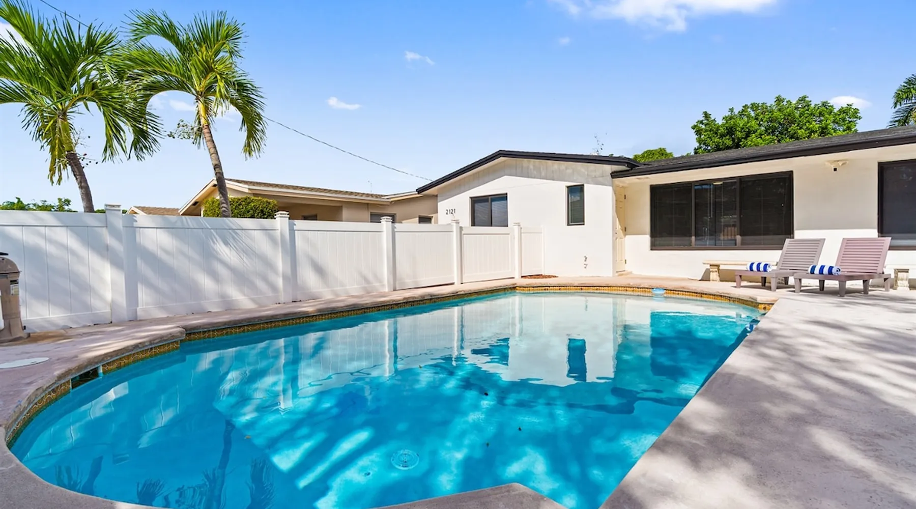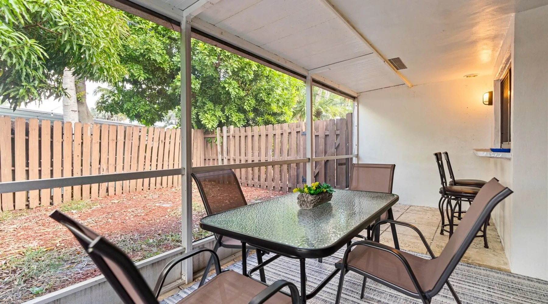 Experience a fresh, modern, professionally styled two-bedroom, two-bath retreat in one of Fort Lauderdale’s best and safest areas. This bright and spotless home features a relaxing master suite, TVs in every room, and a spacious living area with an ultra-comfortable sofa that can sleep two more guests. Enjoy a fully stocked kitchen, thoughtful amenities, and a private screened-in patio, all just minutes from top restaurants, beaches, shopping, & everything that makes South Florida unforgettable. Guest access The pool is shared with one identical neighboring unit. Other things to note Step into a beautifully designed, modern Fort Lauderdale getaway where comfort meets style. This brand-new, professionally decorated two-bedroom, two-bathroom home offers a fresh and airy atmosphere perfect for relaxing after a day of exploring the city. The master suite includes its own private bathroom and a plush bed, while every room is equipped with a flat-screen TV for easy unwinding. The open-concept living area features a spacious layout and an exceptionally comfortable sofa that can sleep two additional guests. The fully stocked kitchen includes everything you need — from cookware and utensils to small appliances — making meal prep simple and convenient. One of the home’s standout features is the private screened-in patio, offering a peaceful spot for morning coffee, evening cocktails, or simply enjoying the Florida breeze without the bugs. Located in one of Fort Lauderdale’s safest and most desirable neighborhoods, the home places you minutes from award-winning restaurants, charming cafés, vibrant shopping areas, and the beautiful beaches the city is known for. Whether you're here for relaxation, business, or adventure, this home delivers a clean, stylish, and effortless experience from start to finish.