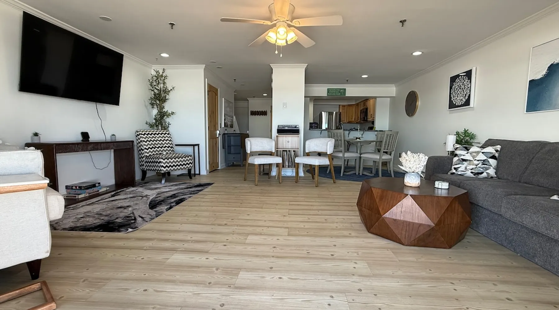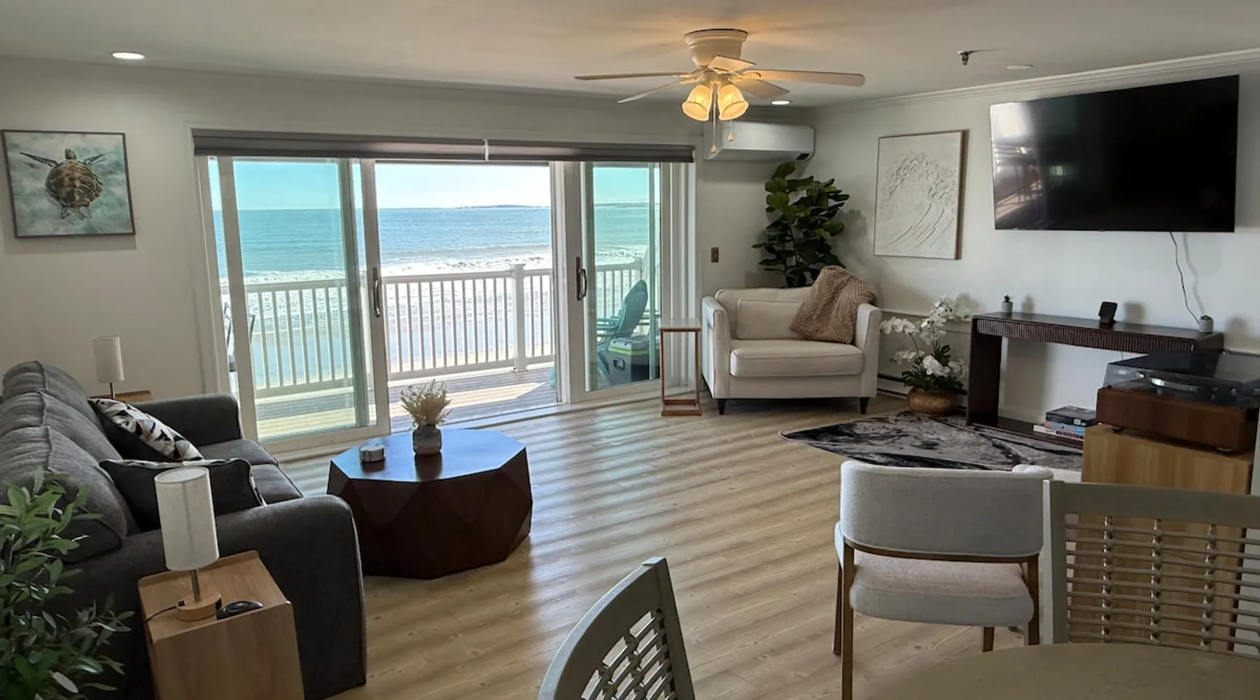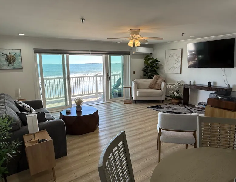 Looking for some winter fun? Welcome to your oceanfront penthouse at The Brunswick with winter entertainment! This two-floor retreat features two spacious balconies with stunning panoramic ocean views—perfect for morning coffee or sunset cocktails. Enjoy live bands at the famous ‘Swick—outdoors daily in warm weather and indoors year-round—so the great music never stops! With 2 bedrooms, 2.5 baths, and an open-concept layout, it’s the ultimate spot for beach vibes, ocean breezes, and nonstop fun! The space The Brunswick - Old Orchard Beach Oceanfront Rental. Come stay at the legendary Brunswick where the beach, music, and good vibes never end! Enjoy live bands, ocean breezes, and front-row access to Maine's most iconic beach! Experience resort-style living from this Penthouse with two private oceanfront decks. Penthouse features 2 bedrooms and 2.5 bathrooms at the largest outside deck at Old Orchards famous Brunswick where panoramic views stretch endlessly across the horizon. Relax in the morning one of the decks with coffee before heading to the beach or walking the 7 mile stretch of beach right outside your door. The Brunswick also offers live music daily and nightly which can be experienced right from your own deck. Nightlife, restaurants, downtown, the pier, amusement park, miniature golf, pizza, ice cream, fried dough - all within a 5 minute walk. Whatever you are looking for in your beach destination, you should find it here! Guest access The entire condo is accessible with the exception of a locked closet. Other things to note Beach chair and umbrella rentals next door at the Waverly store. You can find inexpensive rentals as well as anything else you need like alcohol, water/drinks, souvenirs, hats, etc. The owner keeps his prices down and is super-nice. This rental only comes with one parking spot. If you have additional cars for your stay, Cap'n Mikes Parking @ 1st Street and Heath St is a safe place and will give you a better deal if he knows you are staying at the Brunswick. If you are looking for a free place to park, you would be parking at your own risk and may find some parking 5+ minute walk from the Brunswick.