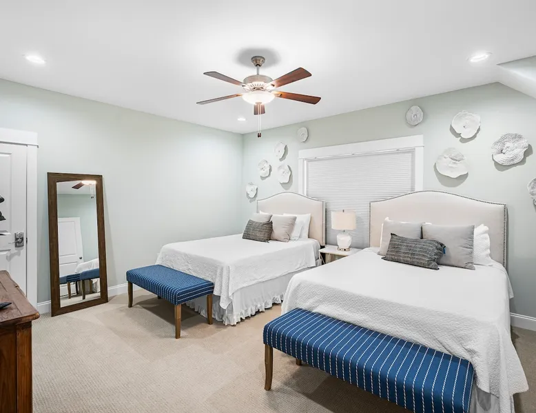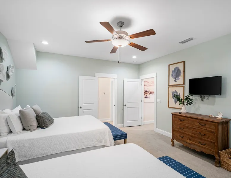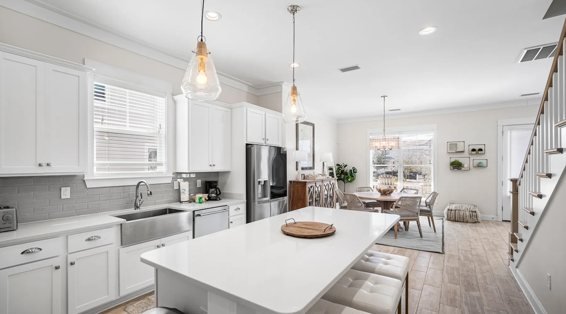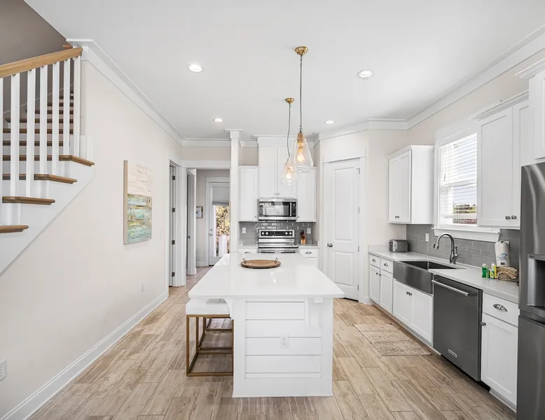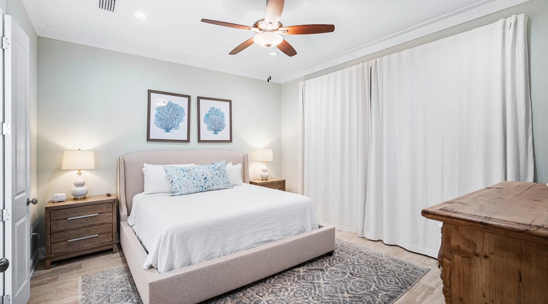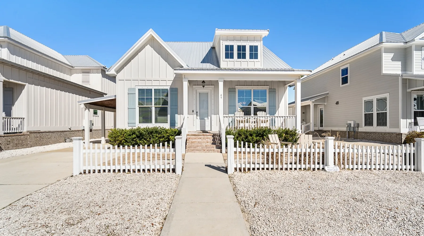 ☆☆ "Plane to Sea" KEY AMENITIES ☆☆ ✔️ 5-minute walk to private deeded beach access ✔️ 1-minute walk to community pool ✔️ 1-minute walk to Gulf State Park (25+ miles of trails) ✔️ Beach cart, chairs & toys provided ✔️ Green Egg charcoal grill ✔️ Craft ice maker ✔️ Smart TVs in all bedrooms + living room ✔️ Board games for family fun ✔️ Covered front & back porches ✔️ Professionally decorated with coastal décor ✔️ Open-concept kitchen & living area ✔️ Adjustable king bed in primary master bedroom The space ✔️ Well equipped kitchen w/ everything you need to cook your favorite meals ✔️ Baby gates and highchair ✔️ Sleeps 8 comfortably ✔️ New modern beach house ✔️ Ideal for one or two families ✔️ 3 Bedrooms / 2.5 Bathrooms ✔️ Full-size washer & dryer ☆☆ BEDROOMS ☆☆ All three bedrooms in this coastal vacation rental are thoughtfully designed to offer comfort and style, each with an HD Smart TV and calming beach-inspired decor. On the main floor, the primary suite features a plush king-sized bed, large walk-in closet, and an ensuite bathroom with a soaking tub, walk-in shower, and double vanity. Upstairs, you’ll find another beautifully appointed king bedroom with its own Smart TV and relaxing atmosphere. The third bedroom offers flexible sleeping arrangements on 2 queen beds, perfect for kids or guests, and easy access to the full bathroom. This home comfortably sleeps up to 8 guests, making it ideal for families, couples, or small groups seeking a relaxing beach getaway. ☆☆ BATHROOMS ☆☆ This family-friendly beach house has 2.5 bathrooms to make getting ready a breeze. • The master ensuite includes a soaking tub, spacious walk-in shower, and dual vanity. • The second full bathroom upstairs features a tub/shower combo and storage space for toiletries. • A convenient half bathroom downstairs serves the common areas. Fresh towels and starter toiletries are provided to make your stay easier. ☆☆ LAUNDRY ROOM ☆☆ A full-size washer and dryer are available, along with an iron and ironing board—no need to overpack! ☆☆ KITCHEN & LIVING AREA ☆☆ Enjoy the open-concept kitchen and living room, perfect for relaxing or entertaining. The kitchen is fully stocked with cookware, utensils, and modern appliances so you can cook at home if you wish. The living area includes a large sofa and Smart TV—ideal for movie nights or rainy days in. Enjoy classic board games or unwind with a good book while soaking in the beachy ambiance. ☆☆ OUTDOOR SPACE ☆☆ Sip coffee on the covered front porch or fire up the Green Egg charcoal grill on the covered back porch after a day in the sun. Everything you need for the beach is already here—beach chairs, cart, and toys are provided. Take a 5-minute walk to the white sands of the private deeded beach or stroll just 1 minute to the community pool. Explore the nearby Gulf State Park, with over 25 miles of hiking and biking trails, just steps from your front door. A selection of bikes is available for guest use. ________________________________________ Whether you're planning a family beach vacation, an active outdoor adventure, or a relaxing getaway with friends, this Orange Beach retreat offers the perfect mix of comfort, location, and coastal charm. ☆☆ Distance to Area Attractions ☆☆ ☀ The Beach - 5 min walk ☀ Gulf State Park - 1 min walk ☀ Community pool - 1 min walk ☀ Lulus Restaurant – 16 min drive ☀ The Hangout – 9 min drive ☀ Pete’s Ice Cream and Donuts - 5 min walk or 2 min bike ride ☀ Grocery stores – 6 min drive ☀ Picnic Beach - 9 min drive ☀ Sunliner Diner - 10 min drive ☀ The Gulf Restuarant - 10 min drive ☀ Flora-Bama Lounge & Oyster Bar - 13 min drive ☀ National Aviation Museum - 44 min drive ☀ Orange Beach Sports Complex - 14 min drive ☀ The Wharf - 15 min drive ☀ Foley - 20 min drive ☀ Adventure Island - 6 min drive ☀ Waterville USA - 11 min drive ★☆ Book Today & Let Us Host You in Orange Beach! ☆★ Guest access As a guest, you can enjoy access to the entire “Plane to Sea” beach house, including the laundry room, free wifi, a sandy backyard, Smart TVs, a full kitchen & games. You can also enjoy access to the Park’s Edge community pool, 25 miles of walking, running and biking trails at the state park and private deeded access to the beach nearby. Other things to note ACCESS: Check in is at 4pm and checkout is at 10am. We are not able to accommodate early or late checkins/outs during busy times or same day checkins/outs for guests. The property features self-checkin using an electronic smart lock keypad. A unique door code will be provided at least 48 hours before check-in. RULES ✔ An adult of at least 18 years old must supervise all kids around the pool, area ponds, lakes and ocean. ✔ No fireworks, candles or discharging of firearms allowed. ✔ No more than the max number of guests allowed at the property based on the reservation. ✔ Avoid the use of hair dyes, hair coloring and other products that could stain linens. ✔ If the property is left excessively dirty it could require an additional cleaning fee. ✔ Please respect the community noise ordinance from 10 PM to 10 AM. ✔ We kindly ask you to treat our property as your own to preserve its pristine condition for future guests and your return visits. DAMAGE WAIVER OR DEPOSIT: As part of the reservation, we do require a damage waiver fee charged or damage deposit. RENTAL AGREEMENT: We ask guests to sign a rental agreement for their reservation. NO SMOKING: or use of fire permitted in the rental. Guest acknowledges that no “smoking” includes the use of vape pens and marijuana and “use of fire” includes lighting of candles, incense or sage. There will be a $500 charge if this rule is not followed. PETS: Pets are not allowed. Some guests have medical or allergy reasons for staying at places that don't allow