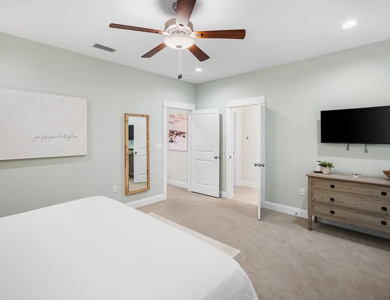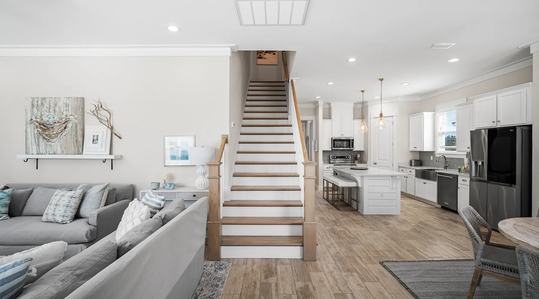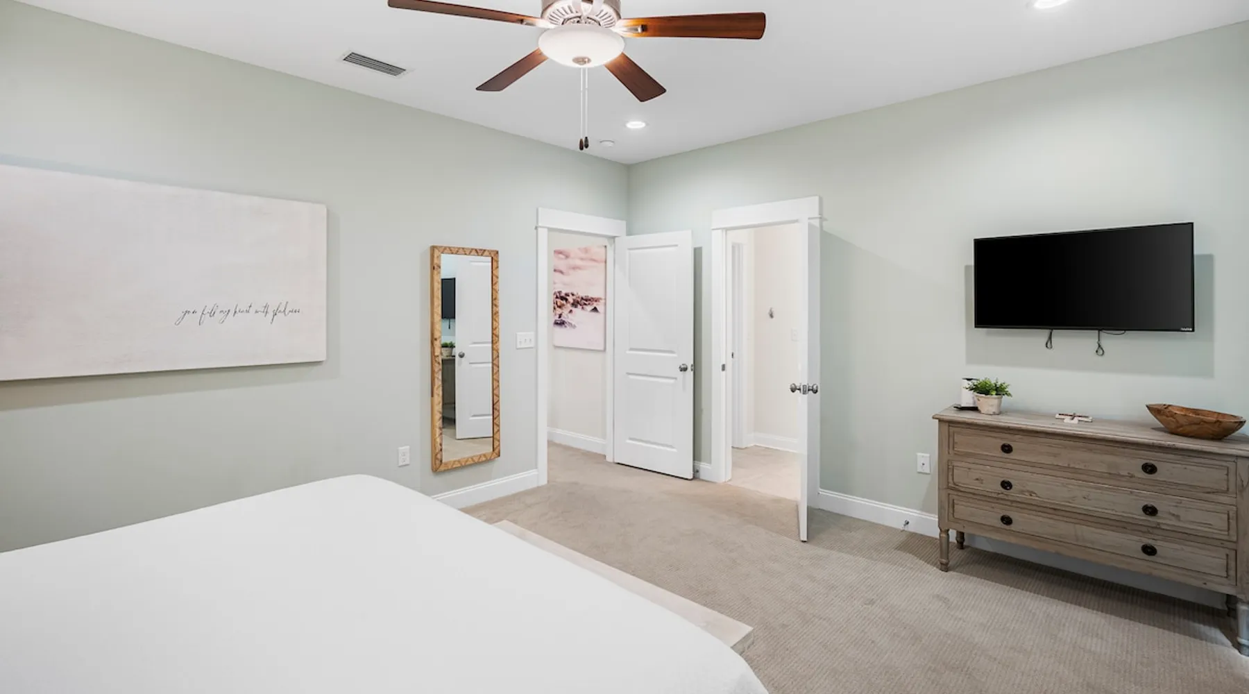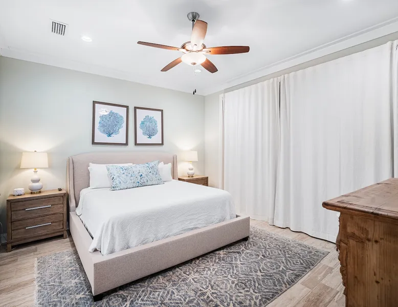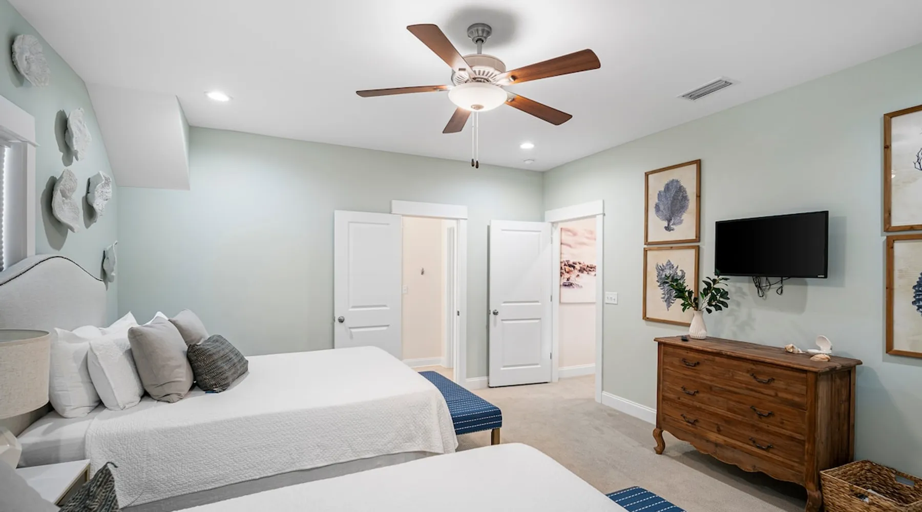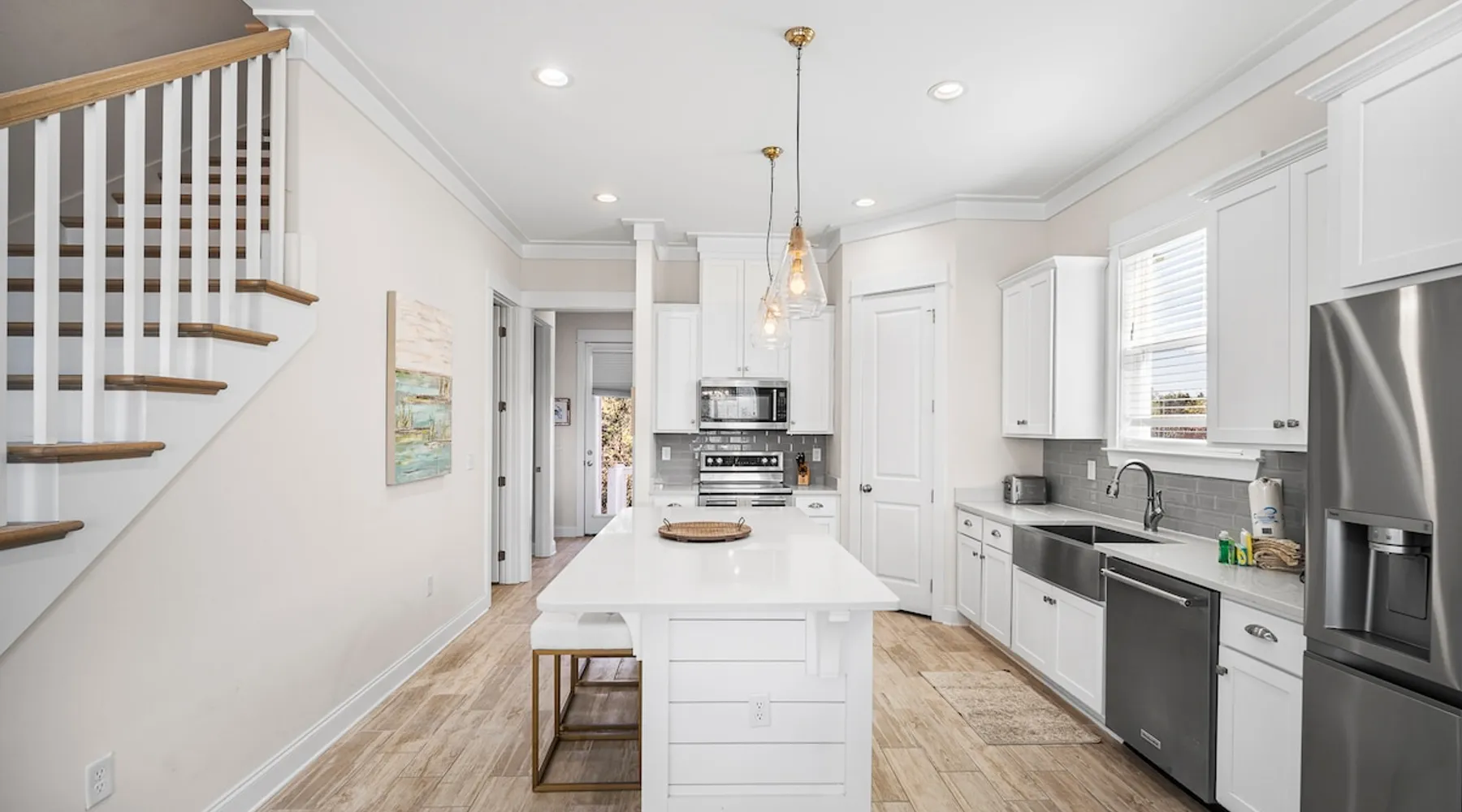 ☆☆ "Plane to Sea" KEY AMENITIES ☆☆ ✔️ 5-minute walk to private deeded beach access ✔️ 1-minute walk to community pool ✔️ 1-minute walk to Gulf State Park (25+ miles of trails) ✔️ Beach cart, chairs & toys provided ✔️ Green Egg charcoal grill ✔️ Craft ice maker ✔️ Smart TVs in all bedrooms + living room ✔️ Board games for family fun ✔️ Covered front & back porches ✔️ Professionally decorated with coastal décor ✔️ Open-concept kitchen & living area ✔️ Adjustable king bed in primary master bedroom The space ✔️ Well equipped kitchen w/ everything you need to cook your favorite meals ✔️ Baby gates and highchair ✔️ Sleeps 8 comfortably ✔️ New modern beach house ✔️ Ideal for one or two families ✔️ 3 Bedrooms / 2.5 Bathrooms ✔️ Full-size washer & dryer ☆☆ BEDROOMS ☆☆ All three bedrooms in this coastal vacation rental are thoughtfully designed to offer comfort and style, each with an HD Smart TV and calming beach-inspired decor. On the main floor, the primary suite features a plush king-sized bed, large walk-in closet, and an ensuite bathroom with a soaking tub, walk-in shower, and double vanity. Upstairs, you’ll find another beautifully appointed king bedroom with its own Smart TV and relaxing atmosphere. The third bedroom offers flexible sleeping arrangements on 2 queen beds, perfect for kids or guests, and easy access to the full bathroom. This home comfortably sleeps up to 8 guests, making it ideal for families, couples, or small groups seeking a relaxing beach getaway. ☆☆ BATHROOMS ☆☆ This family-friendly beach house has 2.5 bathrooms to make getting ready a breeze. • The master ensuite includes a soaking tub, spacious walk-in shower, and dual vanity. • The second full bathroom upstairs features a tub/shower combo and storage space for toiletries. • A convenient half bathroom downstairs serves the common areas. Fresh towels and starter toiletries are provided to make your stay easier. ☆☆ LAUNDRY ROOM ☆☆ A full-size washer and dryer are available, along with an iron and ironing board—no need to overpack! ☆☆ KITCHEN & LIVING AREA ☆☆ Enjoy the open-concept kitchen and living room, perfect for relaxing or entertaining. The kitchen is fully stocked with cookware, utensils, and modern appliances so you can cook at home if you wish. The living area includes a large sofa and Smart TV—ideal for movie nights or rainy days in. Enjoy classic board games or unwind with a good book while soaking in the beachy ambiance. ☆☆ OUTDOOR SPACE ☆☆ Sip coffee on the covered front porch or fire up the Green Egg charcoal grill on the covered back porch after a day in the sun. Everything you need for the beach is already here—beach chairs, cart, and toys are provided. Take a 5-minute walk to the white sands of the private deeded beach or stroll just 1 minute to the community pool. Explore the nearby Gulf State Park, with over 25 miles of hiking and biking trails, just steps from your front door. A selection of bikes is available for guest use. ________________________________________ Whether you're planning a family beach vacation, an active outdoor adventure, or a relaxing getaway with friends, this Orange Beach retreat offers the perfect mix of comfort, location, and coastal charm. ☆☆ Distance to Area Attractions ☆☆ ☀ The Beach - 5 min walk ☀ Gulf State Park - 1 min walk ☀ Community pool - 1 min walk ☀ Lulus Restaurant – 16 min drive ☀ The Hangout – 9 min drive ☀ Pete’s Ice Cream and Donuts - 5 min walk or 2 min bike ride ☀ Grocery stores – 6 min drive ☀ Picnic Beach - 9 min drive ☀ Sunliner Diner - 10 min drive ☀ The Gulf Restuarant - 10 min drive ☀ Flora-Bama Lounge & Oyster Bar - 13 min drive ☀ National Aviation Museum - 44 min drive ☀ Orange Beach Sports Complex - 14 min drive ☀ The Wharf - 15 min drive ☀ Foley - 20 min drive ☀ Adventure Island - 6 min drive ☀ Waterville USA - 11 min drive ★☆ Book Today & Let Us Host You in Orange Beach! ☆★ Guest access As a guest, you can enjoy access to the entire “Plane to Sea” beach house, including the laundry room, free wifi, a sandy backyard, Smart TVs, a full kitchen & games. You can also enjoy access to the Park’s Edge community pool, 25 miles of walking, running and biking trails at the state park and private deeded access to the beach nearby. Other things to note ACCESS: Check in is at 4pm and checkout is at 10am. We are not able to accommodate early or late checkins/outs during busy times or same day checkins/outs for guests. The property features self-checkin using an electronic smart lock keypad. A unique door code will be provided at least 48 hours before check-in. RULES ✔ An adult of at least 18 years old must supervise all kids around the pool, area ponds, lakes and ocean. ✔ No fireworks, candles or discharging of firearms allowed. ✔ No more than the max number of guests allowed at the property based on the reservation. ✔ Avoid the use of hair dyes, hair coloring and other products that could stain linens. ✔ If the property is left excessively dirty it could require an additional cleaning fee. ✔ Please respect the community noise ordinance from 10 PM to 10 AM. ✔ We kindly ask you to treat our property as your own to preserve its pristine condition for future guests and your return visits. DAMAGE WAIVER OR DEPOSIT: As part of the reservation, we do require a damage waiver fee charged or damage deposit. RENTAL AGREEMENT: We ask guests to sign a rental agreement for their reservation. NO SMOKING: or use of fire permitted in the rental. Guest acknowledges that no “smoking” includes the use of vape pens and marijuana and “use of fire” includes lighting of candles, incense or sage. There will be a $500 charge if this rule is not followed. PETS: Pets are not allowed. Some guests have medical or allergy reasons for staying at places that don't allow