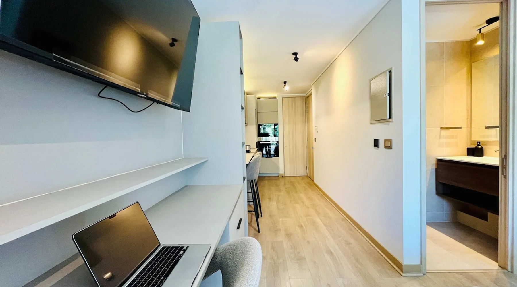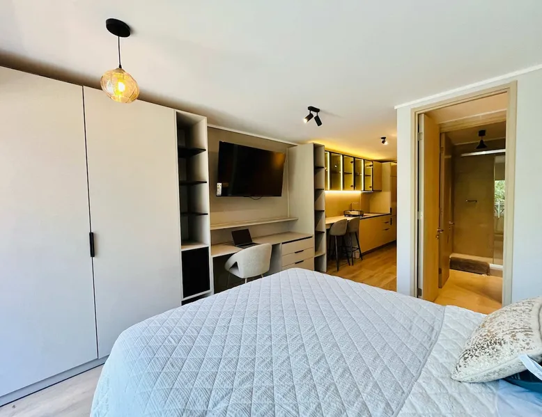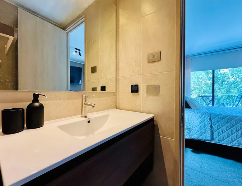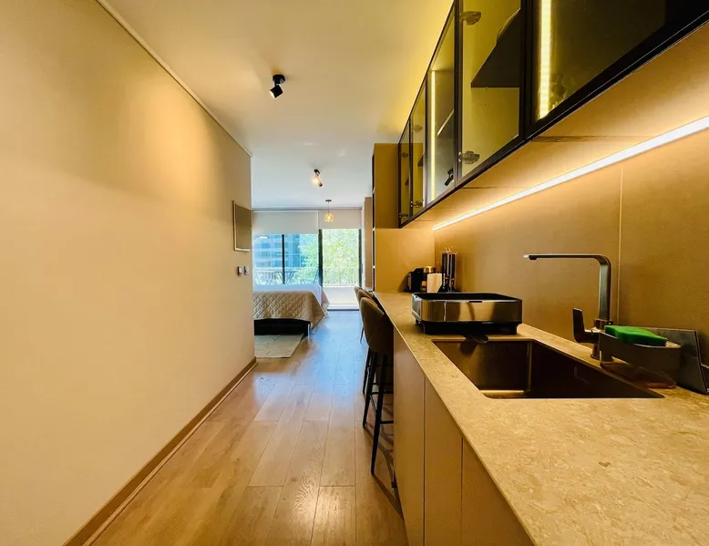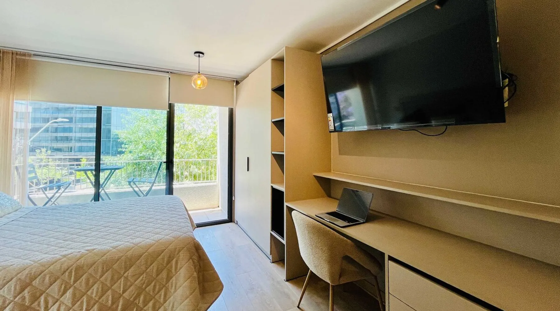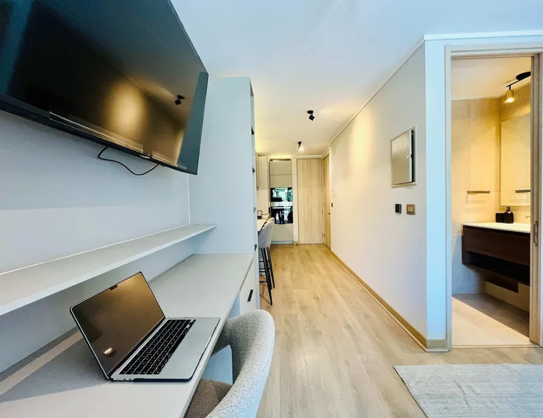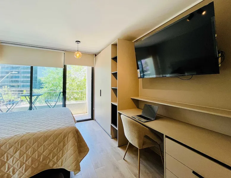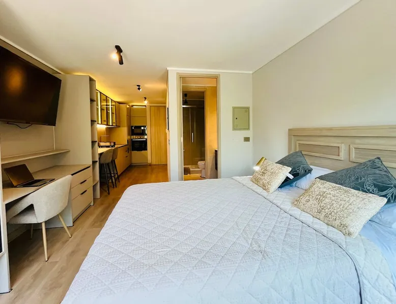 🏙️ Modern Studio in Prime Las Condes · Safe, Walkable & Stylish Perfect for couples, business travelers, and digital nomads seeking comfort, connectivity, and modern amenities in one of Santiago’s most prestigious neighborhoods. A stylish studio in one of the safest, most connected areas of Santiago—perfect for work or leisure. The space A modern, well-designed studio offering everything you need for a seamless stay: 🛏️ 1 Double Bed with premium linens 🛁 Full Bathroom with essentials 🍳 Fully Equipped Kitchen (cookware, appliances, utensils) 🌿 Private Balcony with outdoor furniture 📶 High-Speed WiFi 🔥 Central Heating 📺 Smart TV with streaming apps 🏋️ Modern Gym 🏊 Rooftop Pool (seasonal) 👮 24/7 Concierge 🔐 Smart Lock for keyless self check-in Guest access 🔑 Smart lock Other things to note 🚫Pets are not allowed on this property. 🐾Check our pet-friendly listings on our profile. ♻️ We use eco friendly, biodegradable & antibacterial cleaning products. 🧡 We deeply care about our home, our environment and our community. 🤗 Thank you for being a respectful guest! 📅 Book Now & Feel at Home in Las Condes