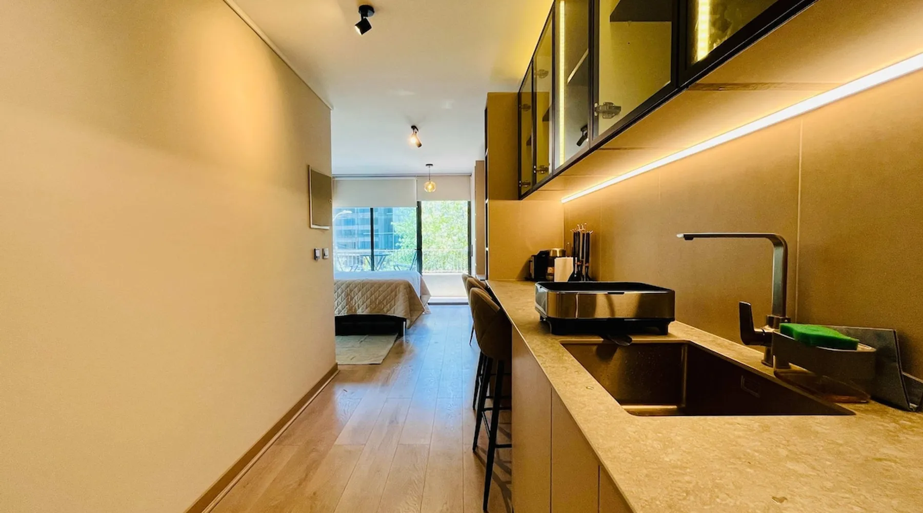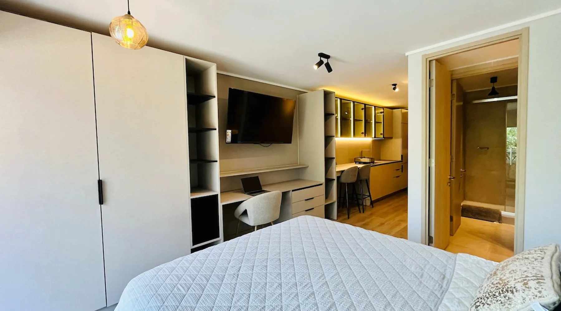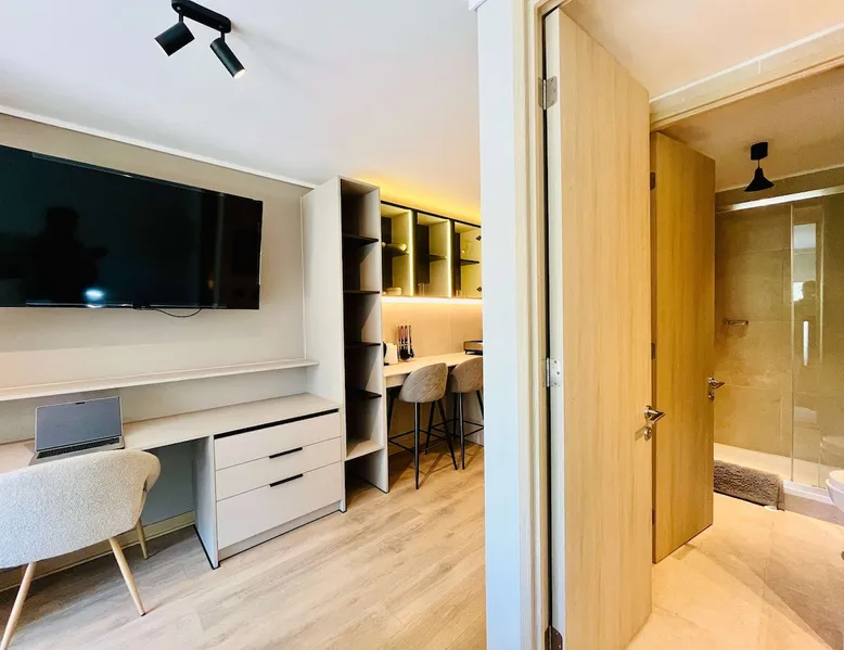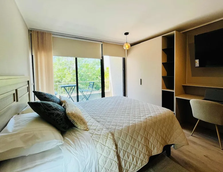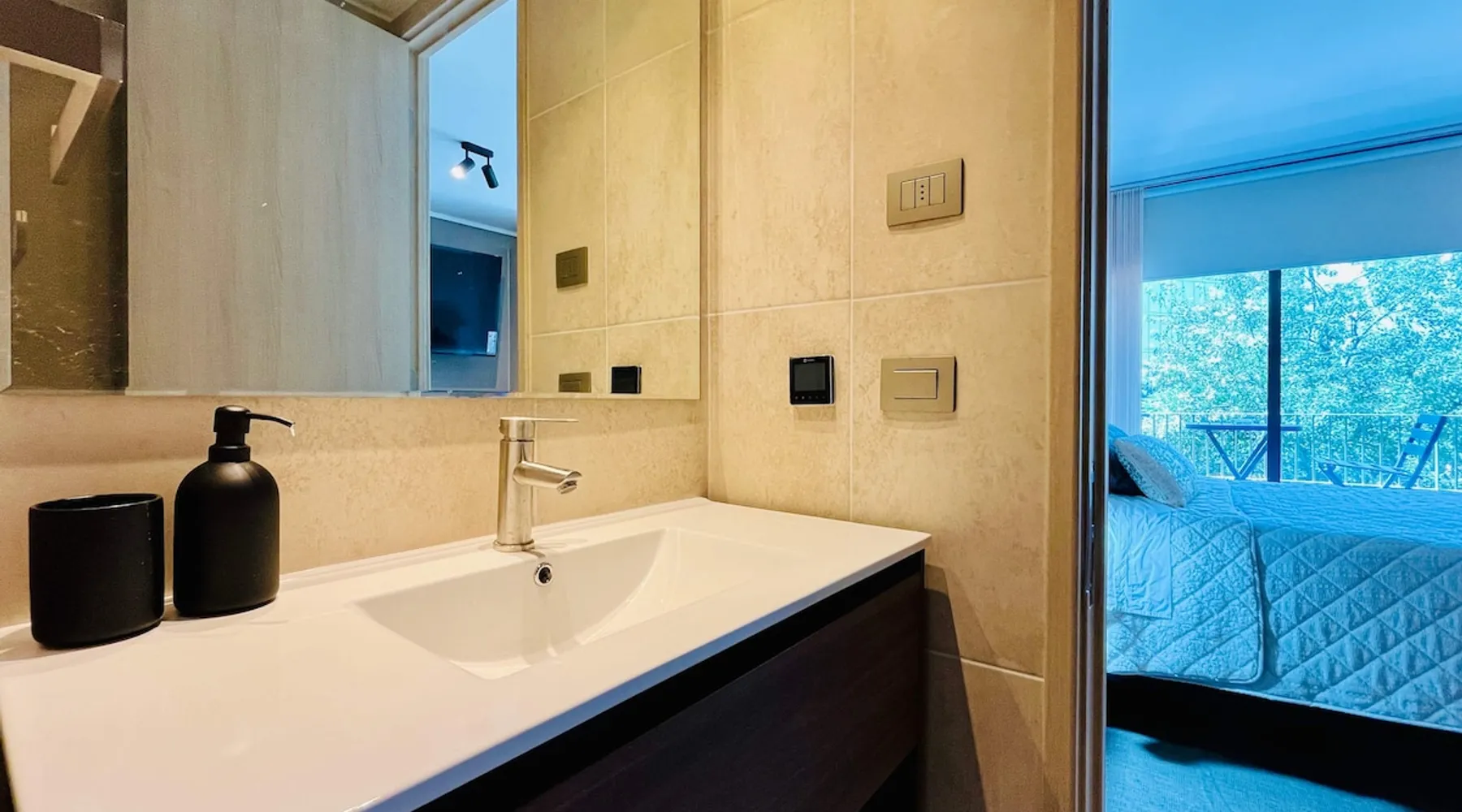 🏙️ Modern Studio in Prime Las Condes · Safe, Walkable & Stylish Perfect for couples, business travelers, and digital nomads seeking comfort, connectivity, and modern amenities in one of Santiago’s most prestigious neighborhoods. A stylish studio in one of the safest, most connected areas of Santiago—perfect for work or leisure. The space A modern, well-designed studio offering everything you need for a seamless stay: 🛏️ 1 Double Bed with premium linens 🛁 Full Bathroom with essentials 🍳 Fully Equipped Kitchen (cookware, appliances, utensils) 🌿 Private Balcony with outdoor furniture 📶 High-Speed WiFi 🔥 Central Heating 📺 Smart TV with streaming apps 🏋️ Modern Gym 🏊 Rooftop Pool (seasonal) 👮 24/7 Concierge 🔐 Smart Lock for keyless self check-in Guest access 🔑 Smart lock Other things to note 🚫Pets are not allowed on this property. 🐾Check our pet-friendly listings on our profile. ♻️ We use eco friendly, biodegradable & antibacterial cleaning products. 🧡 We deeply care about our home, our environment and our community. 🤗 Thank you for being a respectful guest! 📅 Book Now & Feel at Home in Las Condes