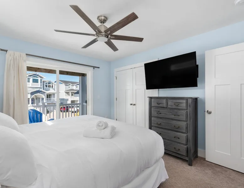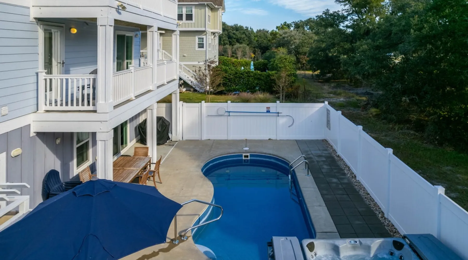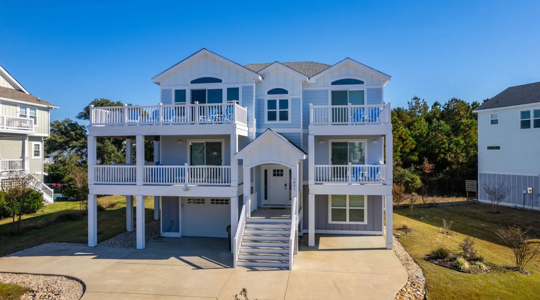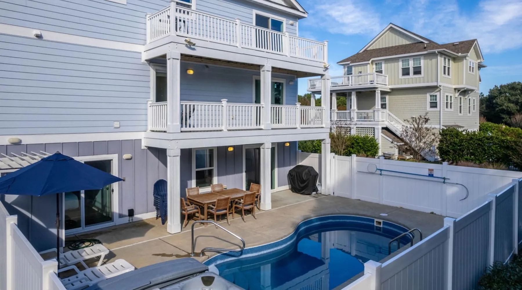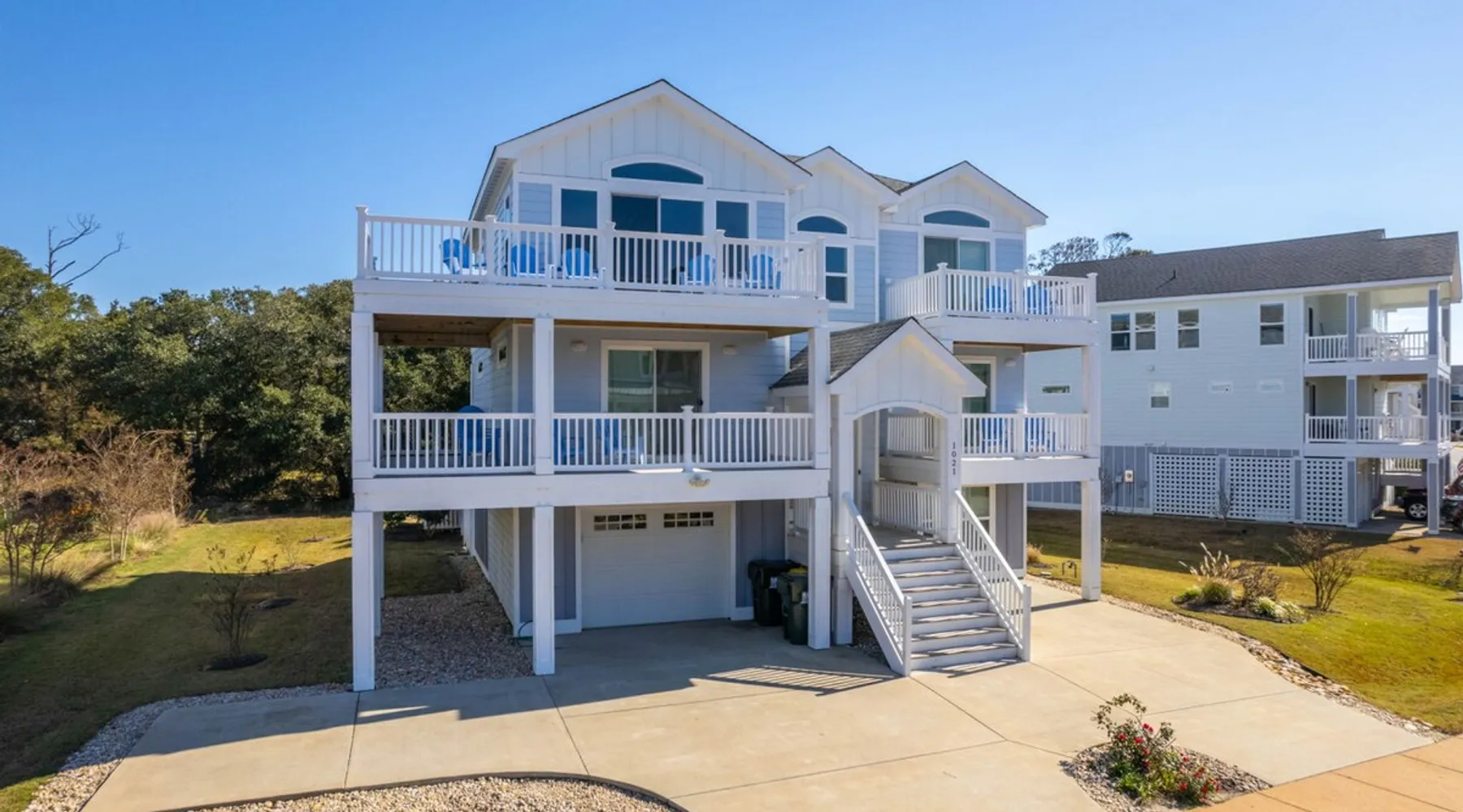Welcome to our Spectacular Sunset Beach House, your ideal Outer Banks escape located in beautiful Corolla. This spacious 2600 sq ft 3 story home comfortably sleeps up to 15 overnight guests & was thoughtfully designed to bring families, friends & beach lovers together. Enjoy the convenience of a private garage plus driveway parking making arrivals & beach days a breeze. With a private pool deck, game room, multiple suites & generous family amenities, it’s a perfect home base for an OBX adventure The space ✨ Lower Level – Game Room + Direct Pool Access Enter through a split-level foyer and head downstairs into a bright, entertainment-ready space featuring: • Game room with Smart TV, Nintendo Switch 2 with pre-loaded with games including Mario Kart, NBA 2K26, and Madden 26, & plenty of board games • Comfy couch with a queen fold-out bed • Kitchenette with fridge, microwave & BBQ utensils • Private king bedroom with Smart TV • Full bathroom Step outside to your private pool deck, complete with: • Swimming pool (Please note: the pool is closed and covered November–April) • Hot tub (heat included with your stay) • BBQ grill with propane tanks • Outdoor dining table • Outdoor shower ✨ Second Level – 3 Bedrooms + Laundry This level offers comfort and convenience for groups of all sizes: Bedroom 1 – Twin Room • Two twin beds • Fold-out twin couch/bed • Shared Jack & Jill bathroom • Smart TV Bedroom 2 – Bunk Suite • Full-over-full bunk bed • Additional full trundle • Private attached bathroom • Smart TV Bedroom 3 – King Suite • King bed • Walk-in closet • Private bathroom with walk-in shower • Smart TV A fully stocked laundry room includes: • Washer & dryer • Complimentary pods & dryer sheets • Iron & ironing board ✨ Top Level – Kitchen, Living, Dining + Master Suite Gather on the top floor in a wide-open, light-filled setting designed for connection: • Large, fully equipped kitchen with all cookware & appliances you need • Spacious dining area • Comfortable living room with abundant seating • Additional hallway bathroom • Primary master bedroom with a plush king bed and Smart TV 👶 Family-Friendly Features As parents of young children, we know how much easier traveling can be when the home is prepared for it. That’s why we offer: • Pack ’n Play + crib sheets • High chair • Baby gate • Kids’ step stools • Baby monitors • Kid-friendly plates, cups, bowls & utensils • Books, games & puzzles • Any bedroom has enough space to set up the Pack ’n Play. ✨ Community Perk – Water Access at the Neighborhood Pier Guests also enjoy access to the community pier located at the end of the street, open to all residents on the street. It’s the perfect spot for: • Catching sunrise or sunset • Crabbing or fishing (a valid North Carolina Coastal Recreational Fishing License may be required) • Enjoying peaceful soundside views 🌊 Your OBX Getaway Awaits From lively game nights to peaceful mornings on the top floor with coastal breezes drifting through, Spectacular Sunset Beach House at Cruz Bay is the perfect home for families and friends to relax, connect, and create unforgettable memories in the Outer Banks. Guest access 🚪 Complete Access & 🔐 Easy Check-In: As our esteemed guests at Spectacular Sunset Beach House, you will enjoy complete access to the entire property during your stay. Embrace the freedom and privacy of this luxurious retreat without any restrictions. For a smooth, hassle-free arrival, we provide a secure door code for easy self check-in. 🚗 Parking: Enjoy convenient parking for up to 5 vehicles — 1 in the private garage and up to 4 in the driveway. 🏖️ Beach Access: The home is just a 10-minute walk to the beach, making it easy to enjoy Corolla’s beautiful coastline anytime. 📘 Digital Guidebook: Upon confirming your booking, you will receive a comprehensive digital guidebook with essential property information, parking details, amenity instructions, and curated recommendations for attractions and dining to help you make the most of your stay. Other things to note 🎮 Game room with Smart TV & Nintendo Switch 2 Enjoy a Nintendo Switch 2 loaded with Mario Kart, NBA 2K26, and Madden 26. 🔒 Please note: The console is locked into the base station for security purposes. This means: • It cannot be removed, • Guests cannot insert their own games, and • Only the pre-loaded games are available for use. 🐾 Pet-Friendly Accommodations We welcome one dog only (up to 60 lbs) for a $200 pet fee. This covers extra hair cleanup. Please note: Additional $200 fee if waste (urine/feces) is found • Guests must clean up after their dog • Pets may not be left unattended (to prevent barking issues) • Dogs are not allowed in the pool • Please let us know in advance if you’re bringing a dog ⚠️ Important House Notes • No adhesives on walls • No tape, hooks, stickers, or other materials that can cause damage. • No glitter- glitter is extremely difficult to clean and can permanently affect surfaces. 🐜 Pests • Corolla has harmless Midges, which look similar to mosquitos but do not bite. They’re a protected species in Corolla and are attracted to light, so please keep doors closed and outdoor lights off when possible. • Snakes from nearby marshes are occasionally spotted—if you see one, contact us immediately and we’ll arrange for removal. • Bug spray is recommended for outdoor enjoyment.