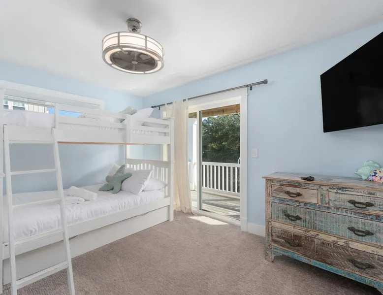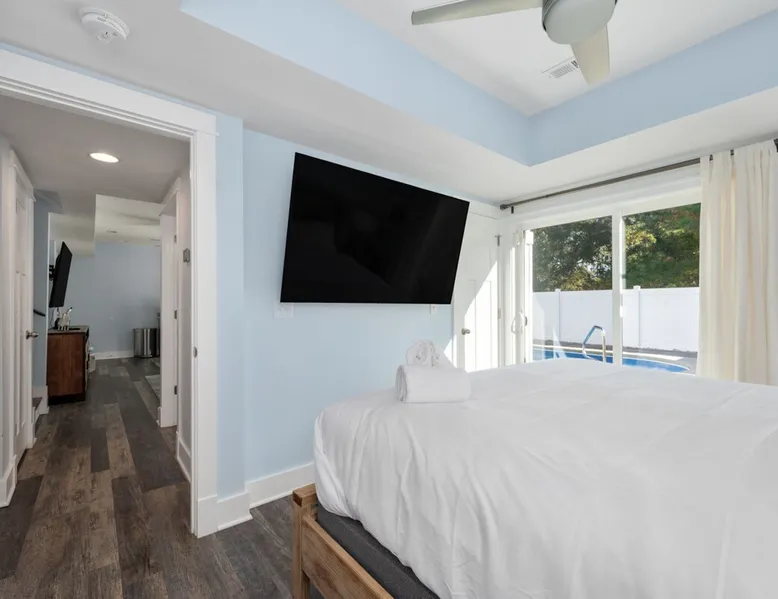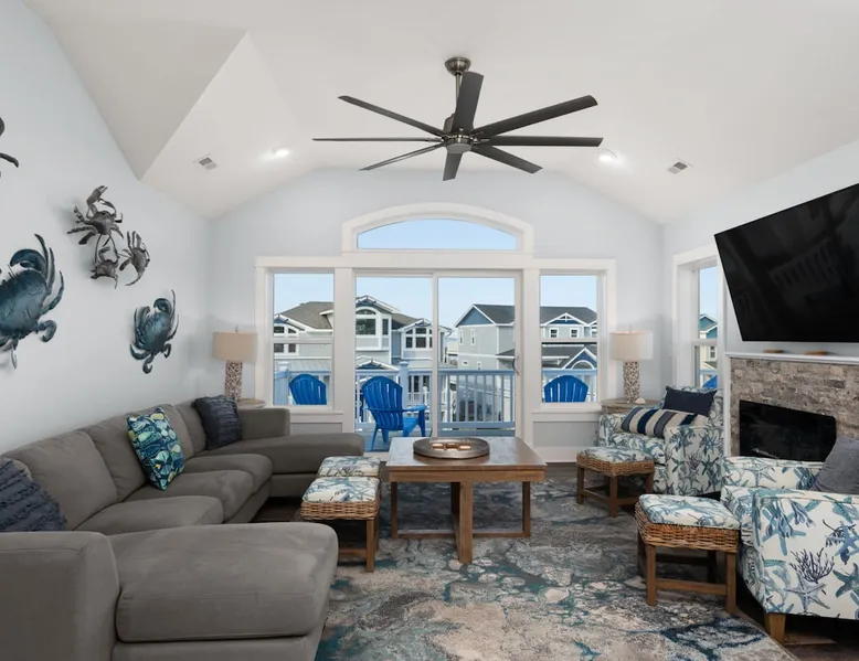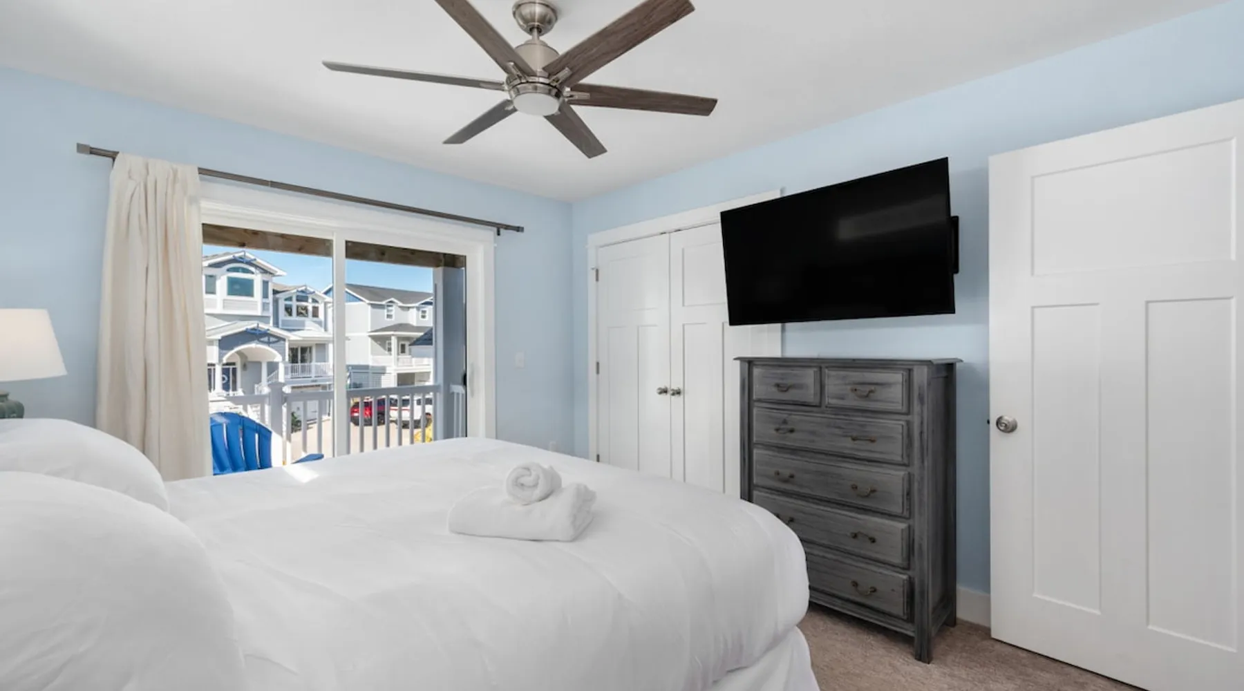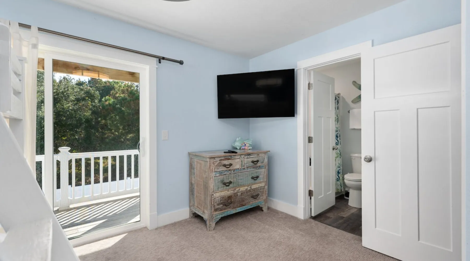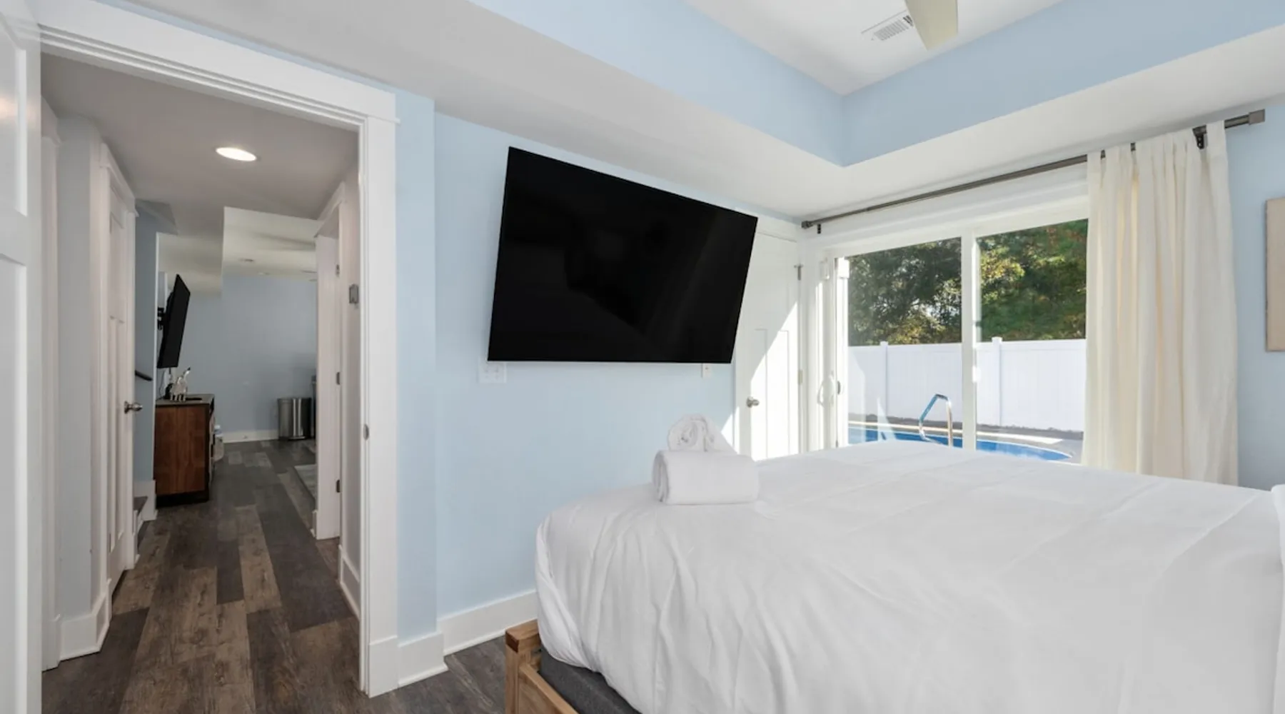 Welcome to our Spectacular Sunset Beach House, your ideal Outer Banks escape located in beautiful Corolla. This spacious 2600 sq ft 3 story home comfortably sleeps up to 15 overnight guests & was thoughtfully designed to bring families, friends & beach lovers together. Enjoy the convenience of a private garage plus driveway parking making arrivals & beach days a breeze. With a private pool deck, game room, multiple suites & generous family amenities, it’s a perfect home base for an OBX adventure The space ✨ Lower Level – Game Room + Direct Pool Access Enter through a split-level foyer and head downstairs into a bright, entertainment-ready space featuring: • Game room with Smart TV, Nintendo Switch 2 with pre-loaded with games including Mario Kart, NBA 2K26, and Madden 26, & plenty of board games • Comfy couch with a queen fold-out bed • Kitchenette with fridge, microwave & BBQ utensils • Private king bedroom with Smart TV • Full bathroom Step outside to your private pool deck, complete with: • Swimming pool (Please note: the pool is closed and covered November–April) • Hot tub (heat included with your stay) • BBQ grill with propane tanks • Outdoor dining table • Outdoor shower ✨ Second Level – 3 Bedrooms + Laundry This level offers comfort and convenience for groups of all sizes: Bedroom 1 – Twin Room • Two twin beds • Fold-out twin couch/bed • Shared Jack & Jill bathroom • Smart TV Bedroom 2 – Bunk Suite • Full-over-full bunk bed • Additional full trundle • Private attached bathroom • Smart TV Bedroom 3 – King Suite • King bed • Walk-in closet • Private bathroom with walk-in shower • Smart TV A fully stocked laundry room includes: • Washer & dryer • Complimentary pods & dryer sheets • Iron & ironing board ✨ Top Level – Kitchen, Living, Dining + Master Suite Gather on the top floor in a wide-open, light-filled setting designed for connection: • Large, fully equipped kitchen with all cookware & appliances you need • Spacious dining area • Comfortable living room with abundant seating • Additional hallway bathroom • Primary master bedroom with a plush king bed and Smart TV 👶 Family-Friendly Features As parents of young children, we know how much easier traveling can be when the home is prepared for it. That’s why we offer: • Pack ’n Play + crib sheets • High chair • Baby gate • Kids’ step stools • Baby monitors • Kid-friendly plates, cups, bowls & utensils • Books, games & puzzles • Any bedroom has enough space to set up the Pack ’n Play. ✨ Community Perk – Water Access at the Neighborhood Pier Guests also enjoy access to the community pier located at the end of the street, open to all residents on the street. It’s the perfect spot for: • Catching sunrise or sunset • Crabbing or fishing (a valid North Carolina Coastal Recreational Fishing License may be required) • Enjoying peaceful soundside views 🌊 Your OBX Getaway Awaits From lively game nights to peaceful mornings on the top floor with coastal breezes drifting through, Spectacular Sunset Beach House at Cruz Bay is the perfect home for families and friends to relax, connect, and create unforgettable memories in the Outer Banks. Guest access 🚪 Complete Access & 🔐 Easy Check-In: As our esteemed guests at Spectacular Sunset Beach House, you will enjoy complete access to the entire property during your stay. Embrace the freedom and privacy of this luxurious retreat without any restrictions. For a smooth, hassle-free arrival, we provide a secure door code for easy self check-in. 🚗 Parking: Enjoy convenient parking for up to 5 vehicles — 1 in the private garage and up to 4 in the driveway. 🏖️ Beach Access: The home is just a 10-minute walk to the beach, making it easy to enjoy Corolla’s beautiful coastline anytime. 📘 Digital Guidebook: Upon confirming your booking, you will receive a comprehensive digital guidebook with essential property information, parking details, amenity instructions, and curated recommendations for attractions and dining to help you make the most of your stay. Other things to note 🎮 Game room with Smart TV & Nintendo Switch 2 Enjoy a Nintendo Switch 2 loaded with Mario Kart, NBA 2K26, and Madden 26. 🔒 Please note: The console is locked into the base station for security purposes. This means: • It cannot be removed, • Guests cannot insert their own games, and • Only the pre-loaded games are available for use. 🐾 Pet-Friendly Accommodations We welcome one dog only (up to 60 lbs) for a $200 pet fee. This covers extra hair cleanup. Please note: Additional $200 fee if waste (urine/feces) is found • Guests must clean up after their dog • Pets may not be left unattended (to prevent barking issues) • Dogs are not allowed in the pool • Please let us know in advance if you’re bringing a dog ⚠️ Important House Notes • No adhesives on walls • No tape, hooks, stickers, or other materials that can cause damage. • No glitter- glitter is extremely difficult to clean and can permanently affect surfaces. 🐜 Pests • Corolla has harmless Midges, which look similar to mosquitos but do not bite. They’re a protected species in Corolla and are attracted to light, so please keep doors closed and outdoor lights off when possible. • Snakes from nearby marshes are occasionally spotted—if you see one, contact us immediately and we’ll arrange for removal. • Bug spray is recommended for outdoor enjoyment.