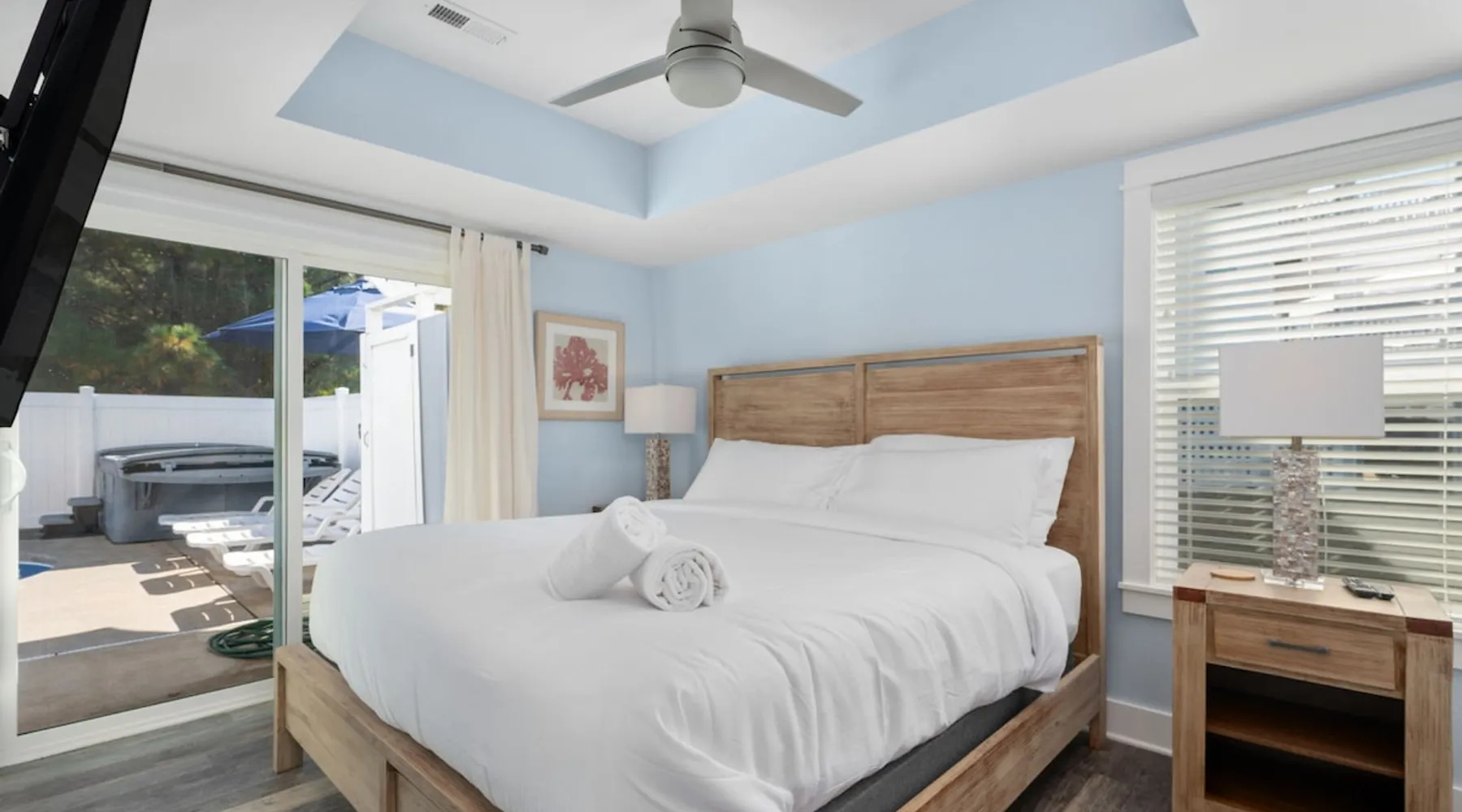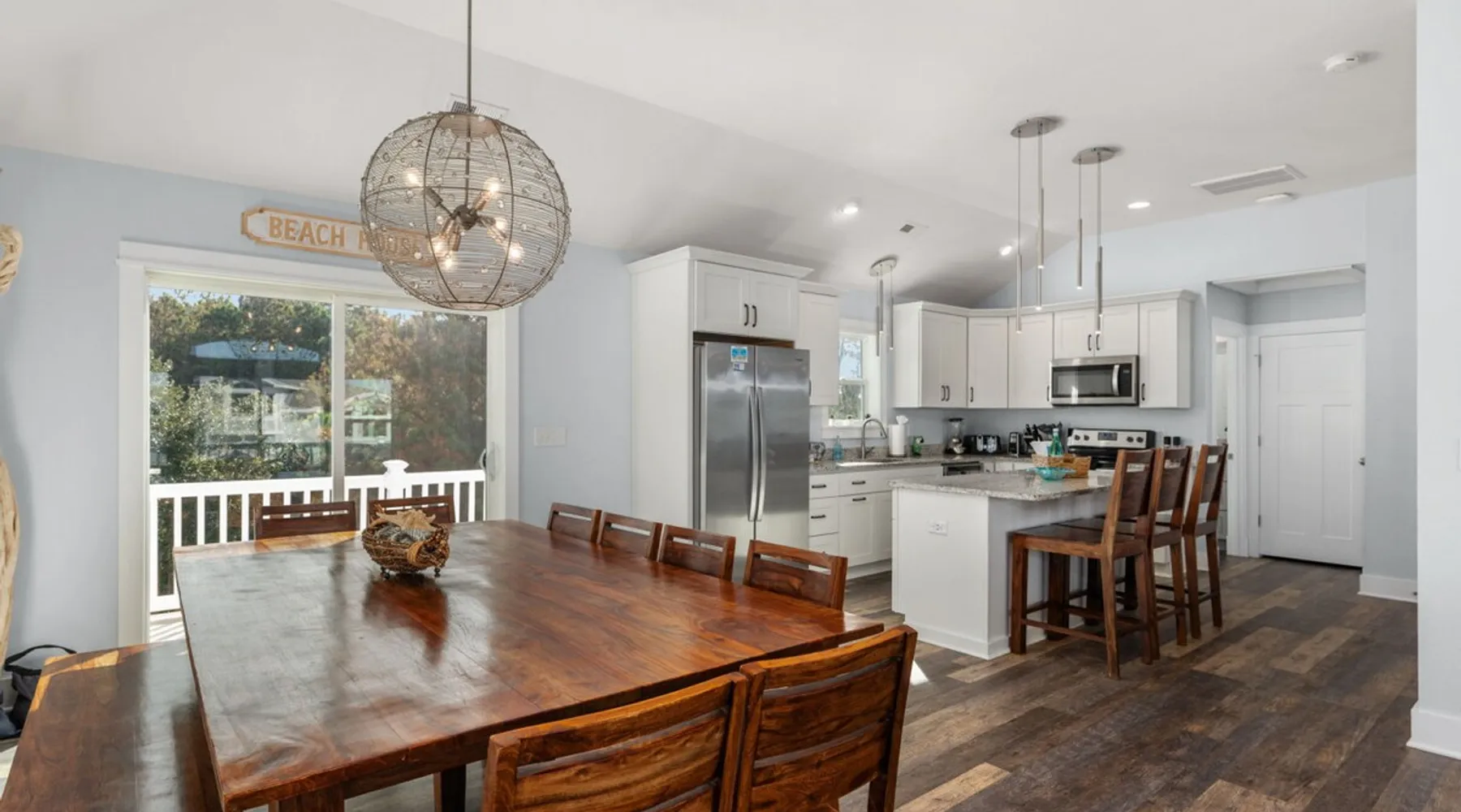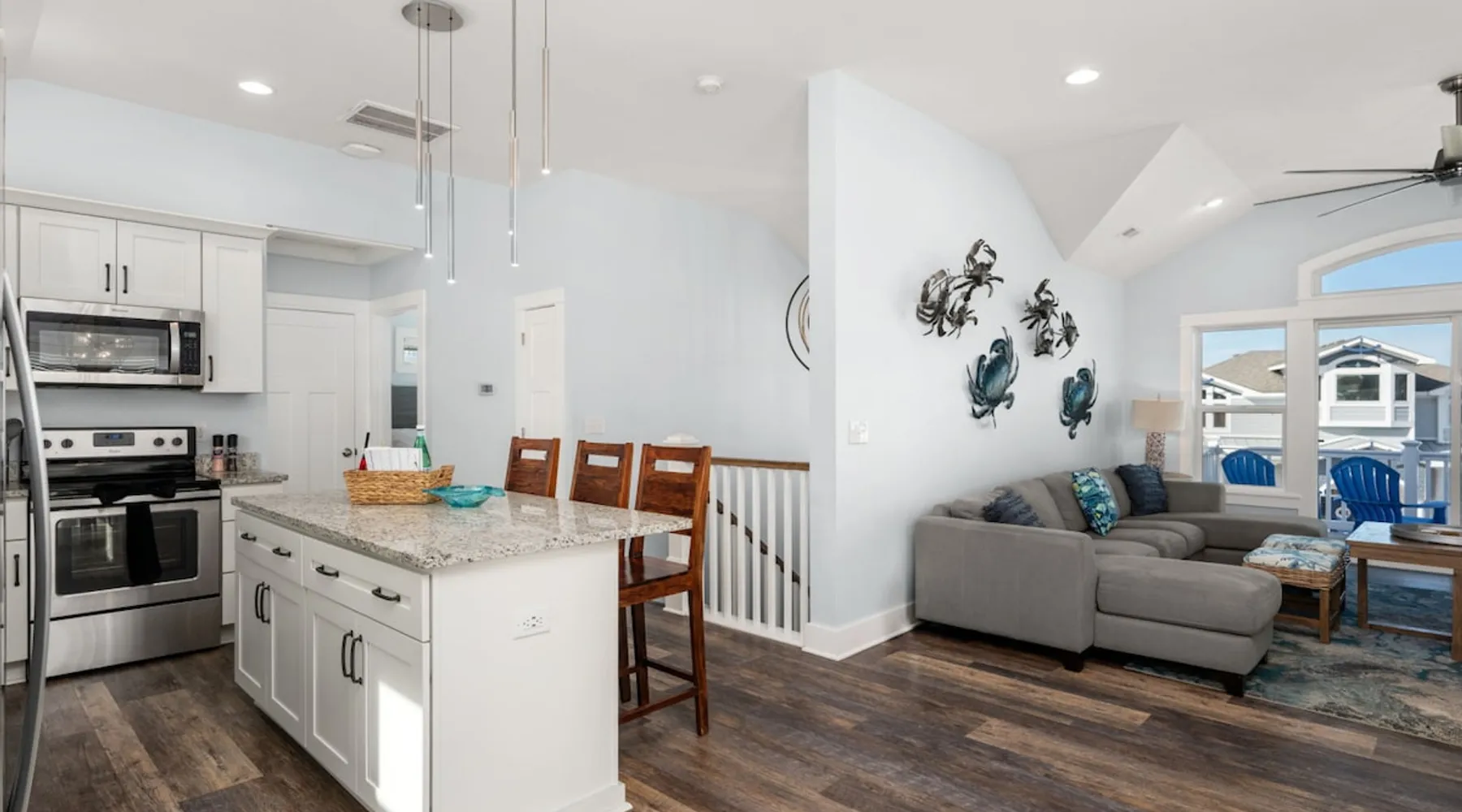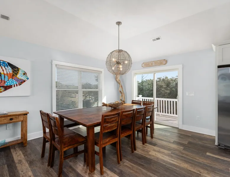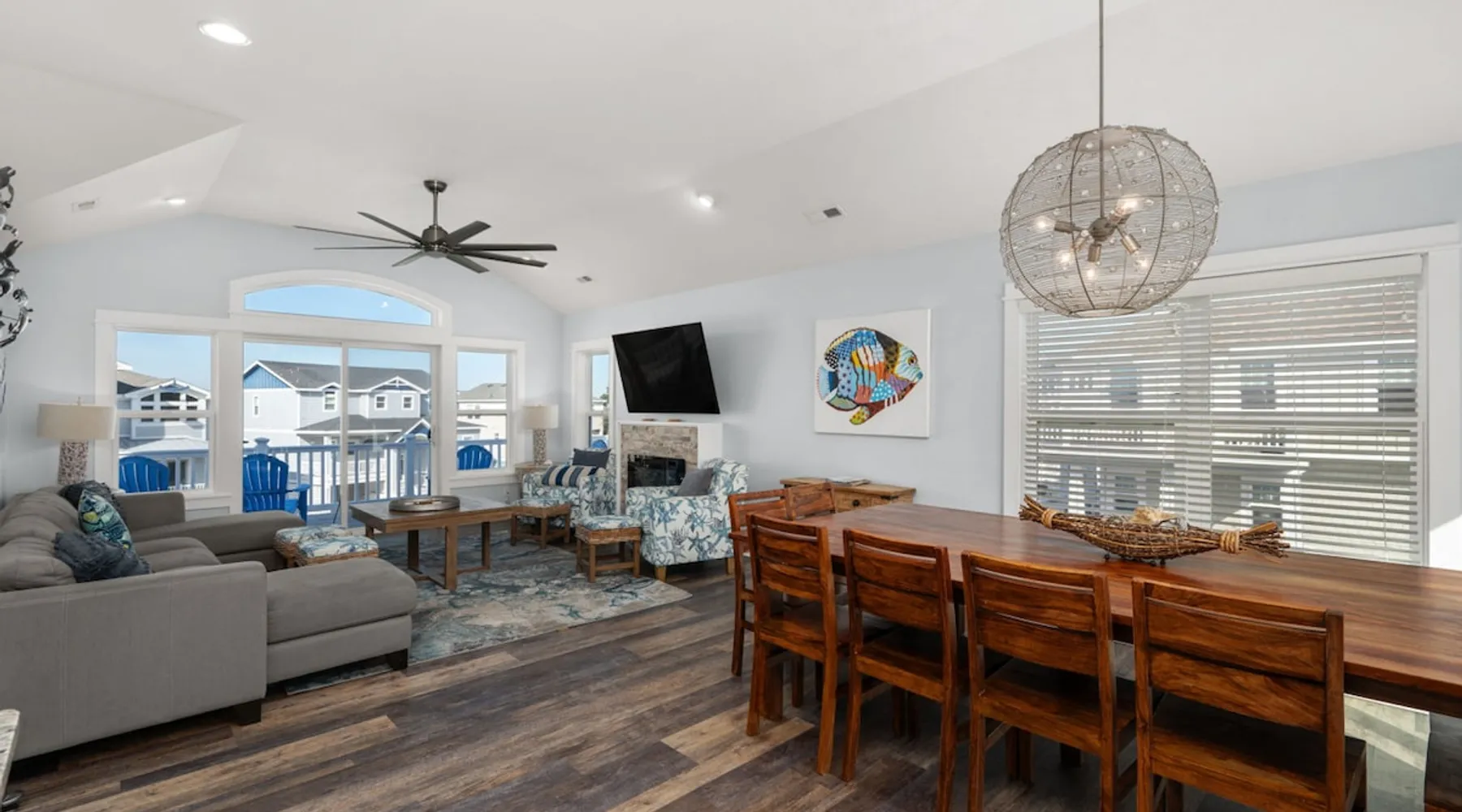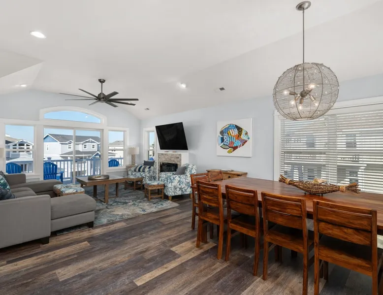 Welcome to our Spectacular Sunset Beach House, your ideal Outer Banks escape located in beautiful Corolla. This spacious 2600 sq ft 3 story home comfortably sleeps up to 15 overnight guests & was thoughtfully designed to bring families, friends & beach lovers together. Enjoy the convenience of a private garage plus driveway parking making arrivals & beach days a breeze. With a private pool deck, game room, multiple suites & generous family amenities, it’s a perfect home base for an OBX adventure The space ✨ Lower Level – Game Room + Direct Pool Access Enter through a split-level foyer and head downstairs into a bright, entertainment-ready space featuring: • Game room with Smart TV, Nintendo Switch 2 with pre-loaded with games including Mario Kart, NBA 2K26, and Madden 26, & plenty of board games • Comfy couch with a queen fold-out bed • Kitchenette with fridge, microwave & BBQ utensils • Private king bedroom with Smart TV • Full bathroom Step outside to your private pool deck, complete with: • Swimming pool (Please note: the pool is closed and covered November–April) • Hot tub (heat included with your stay) • BBQ grill with propane tanks • Outdoor dining table • Outdoor shower ✨ Second Level – 3 Bedrooms + Laundry This level offers comfort and convenience for groups of all sizes: Bedroom 1 – Twin Room • Two twin beds • Fold-out twin couch/bed • Shared Jack & Jill bathroom • Smart TV Bedroom 2 – Bunk Suite • Full-over-full bunk bed • Additional full trundle • Private attached bathroom • Smart TV Bedroom 3 – King Suite • King bed • Walk-in closet • Private bathroom with walk-in shower • Smart TV A fully stocked laundry room includes: • Washer & dryer • Complimentary pods & dryer sheets • Iron & ironing board ✨ Top Level – Kitchen, Living, Dining + Master Suite Gather on the top floor in a wide-open, light-filled setting designed for connection: • Large, fully equipped kitchen with all cookware & appliances you need • Spacious dining area • Comfortable living room with abundant seating • Additional hallway bathroom • Primary master bedroom with a plush king bed and Smart TV 👶 Family-Friendly Features As parents of young children, we know how much easier traveling can be when the home is prepared for it. That’s why we offer: • Pack ’n Play + crib sheets • High chair • Baby gate • Kids’ step stools • Baby monitors • Kid-friendly plates, cups, bowls & utensils • Books, games & puzzles • Any bedroom has enough space to set up the Pack ’n Play. ✨ Community Perk – Water Access at the Neighborhood Pier Guests also enjoy access to the community pier located at the end of the street, open to all residents on the street. It’s the perfect spot for: • Catching sunrise or sunset • Crabbing or fishing (a valid North Carolina Coastal Recreational Fishing License may be required) • Enjoying peaceful soundside views 🌊 Your OBX Getaway Awaits From lively game nights to peaceful mornings on the top floor with coastal breezes drifting through, Spectacular Sunset Beach House at Cruz Bay is the perfect home for families and friends to relax, connect, and create unforgettable memories in the Outer Banks. Guest access 🚪 Complete Access & 🔐 Easy Check-In: As our esteemed guests at Spectacular Sunset Beach House, you will enjoy complete access to the entire property during your stay. Embrace the freedom and privacy of this luxurious retreat without any restrictions. For a smooth, hassle-free arrival, we provide a secure door code for easy self check-in. 🚗 Parking: Enjoy convenient parking for up to 5 vehicles — 1 in the private garage and up to 4 in the driveway. 🏖️ Beach Access: The home is just a 10-minute walk to the beach, making it easy to enjoy Corolla’s beautiful coastline anytime. 📘 Digital Guidebook: Upon confirming your booking, you will receive a comprehensive digital guidebook with essential property information, parking details, amenity instructions, and curated recommendations for attractions and dining to help you make the most of your stay. Other things to note 🎮 Game room with Smart TV & Nintendo Switch 2 Enjoy a Nintendo Switch 2 loaded with Mario Kart, NBA 2K26, and Madden 26. 🔒 Please note: The console is locked into the base station for security purposes. This means: • It cannot be removed, • Guests cannot insert their own games, and • Only the pre-loaded games are available for use. 🐾 Pet-Friendly Accommodations We welcome one dog only (up to 60 lbs) for a $200 pet fee. This covers extra hair cleanup. Please note: Additional $200 fee if waste (urine/feces) is found • Guests must clean up after their dog • Pets may not be left unattended (to prevent barking issues) • Dogs are not allowed in the pool • Please let us know in advance if you’re bringing a dog ⚠️ Important House Notes • No adhesives on walls • No tape, hooks, stickers, or other materials that can cause damage. • No glitter- glitter is extremely difficult to clean and can permanently affect surfaces. 🐜 Pests • Corolla has harmless Midges, which look similar to mosquitos but do not bite. They’re a protected species in Corolla and are attracted to light, so please keep doors closed and outdoor lights off when possible. • Snakes from nearby marshes are occasionally spotted—if you see one, contact us immediately and we’ll arrange for removal. • Bug spray is recommended for outdoor enjoyment.