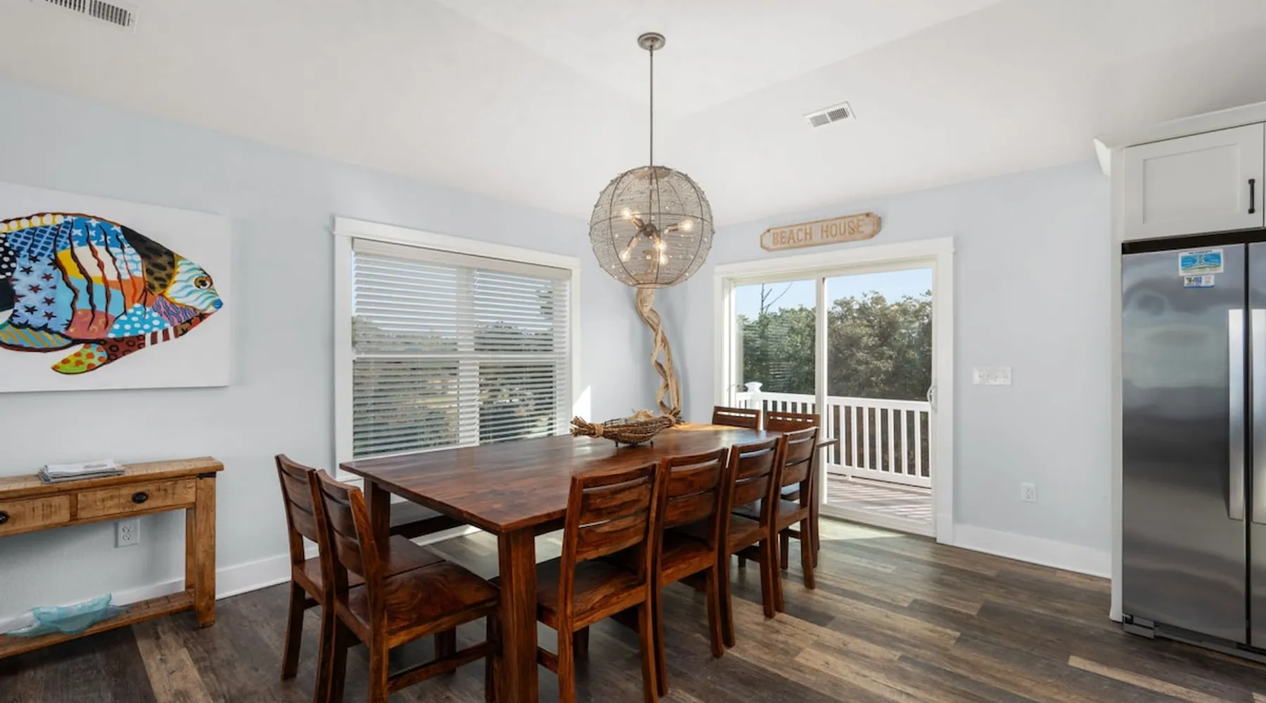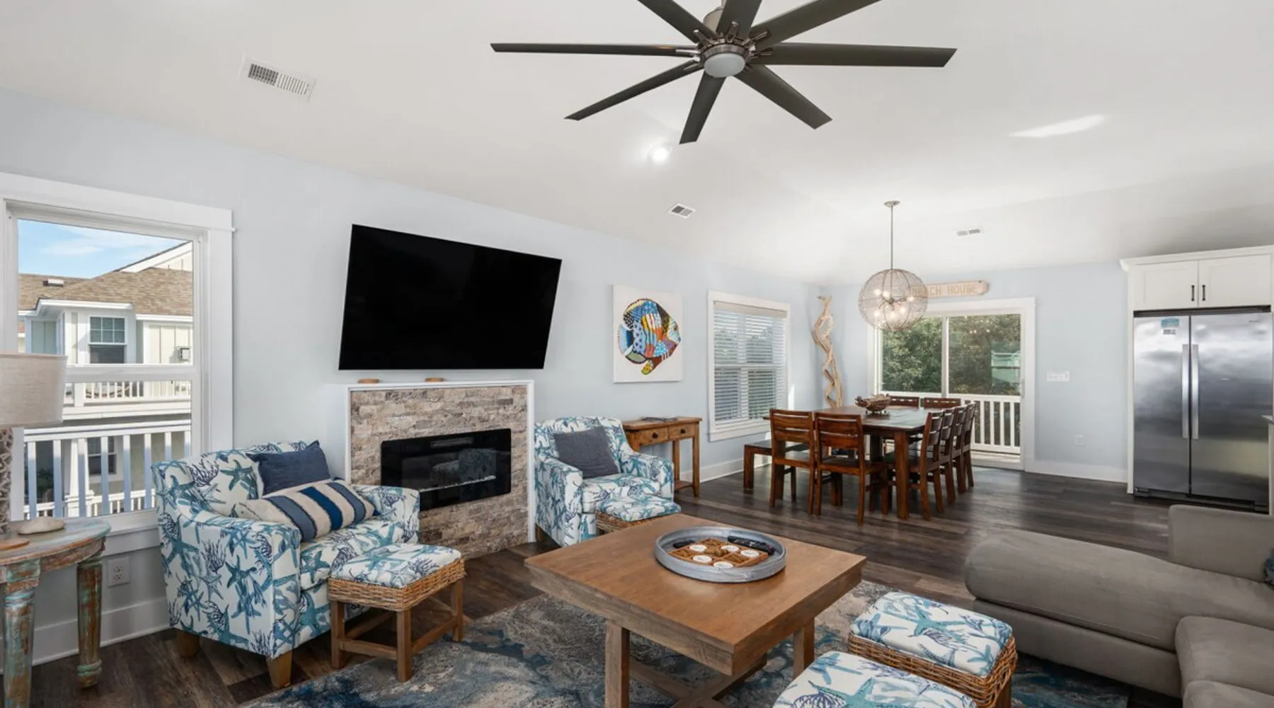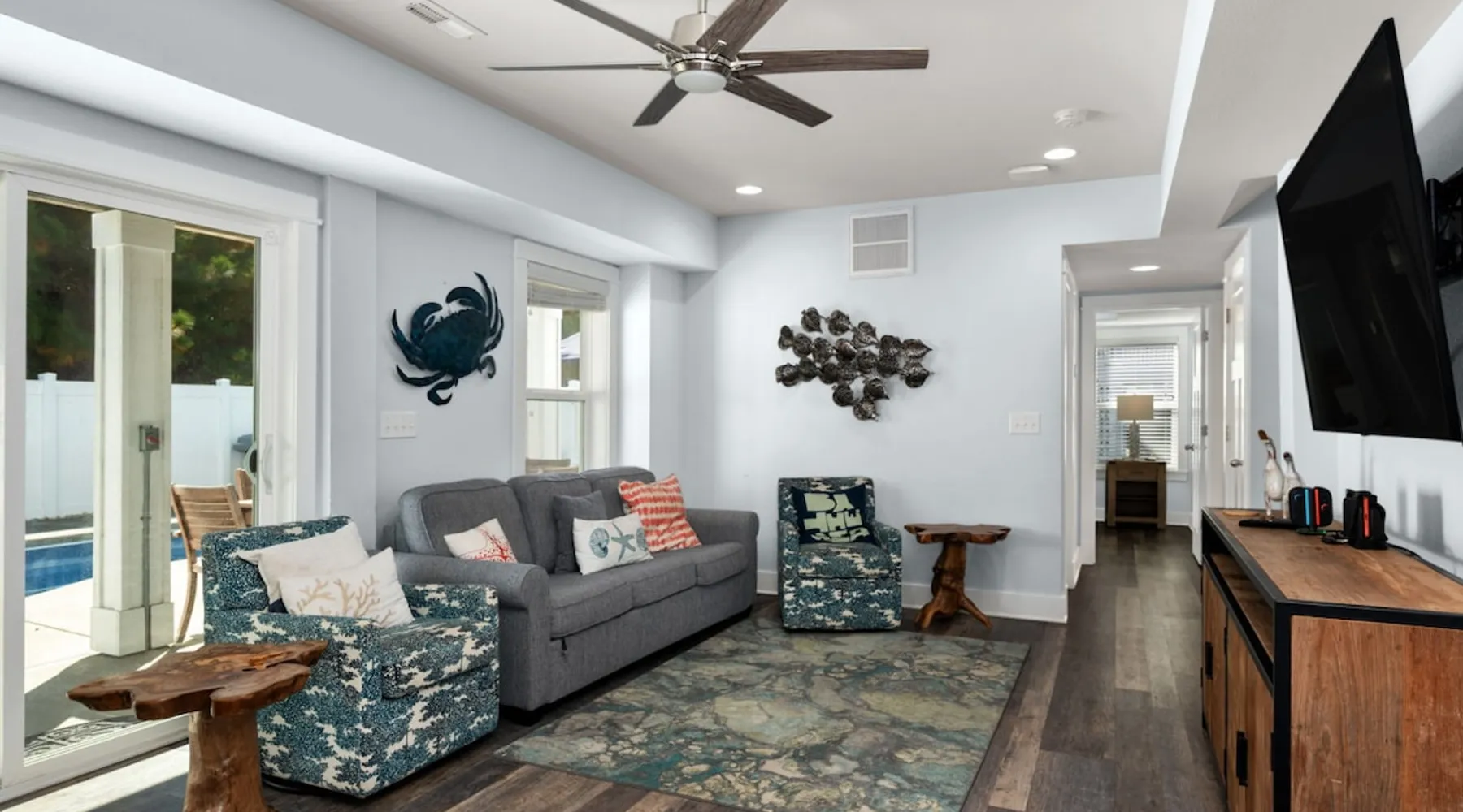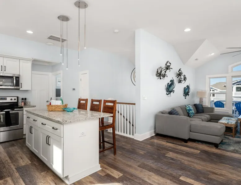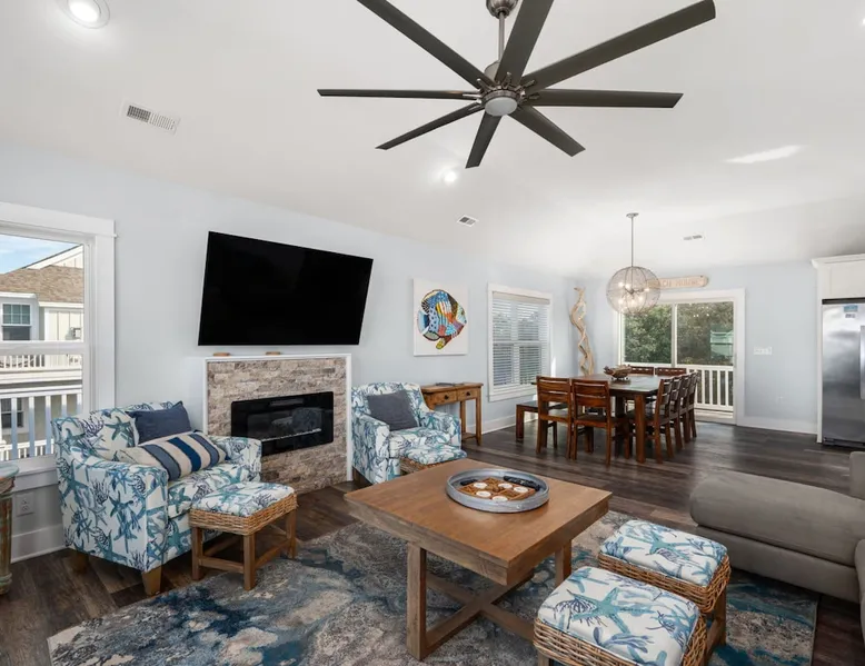 Welcome to our Spectacular Sunset Beach House, your ideal Outer Banks escape located in beautiful Corolla. This spacious 2600 sq ft 3 story home comfortably sleeps up to 15 overnight guests & was thoughtfully designed to bring families, friends & beach lovers together. Enjoy the convenience of a private garage plus driveway parking making arrivals & beach days a breeze. With a private pool deck, game room, multiple suites & generous family amenities, it’s a perfect home base for an OBX adventure The space ✨ Lower Level – Game Room + Direct Pool Access Enter through a split-level foyer and head downstairs into a bright, entertainment-ready space featuring: • Game room with Smart TV, Nintendo Switch 2 with pre-loaded with games including Mario Kart, NBA 2K26, and Madden 26, & plenty of board games • Comfy couch with a queen fold-out bed • Kitchenette with fridge, microwave & BBQ utensils • Private king bedroom with Smart TV • Full bathroom Step outside to your private pool deck, complete with: • Swimming pool (Please note: the pool is closed and covered November–April) • Hot tub (heat included with your stay) • BBQ grill with propane tanks • Outdoor dining table • Outdoor shower ✨ Second Level – 3 Bedrooms + Laundry This level offers comfort and convenience for groups of all sizes: Bedroom 1 – Twin Room • Two twin beds • Fold-out twin couch/bed • Shared Jack & Jill bathroom • Smart TV Bedroom 2 – Bunk Suite • Full-over-full bunk bed • Additional full trundle • Private attached bathroom • Smart TV Bedroom 3 – King Suite • King bed • Walk-in closet • Private bathroom with walk-in shower • Smart TV A fully stocked laundry room includes: • Washer & dryer • Complimentary pods & dryer sheets • Iron & ironing board ✨ Top Level – Kitchen, Living, Dining + Master Suite Gather on the top floor in a wide-open, light-filled setting designed for connection: • Large, fully equipped kitchen with all cookware & appliances you need • Spacious dining area • Comfortable living room with abundant seating • Additional hallway bathroom • Primary master bedroom with a plush king bed and Smart TV 👶 Family-Friendly Features As parents of young children, we know how much easier traveling can be when the home is prepared for it. That’s why we offer: • Pack ’n Play + crib sheets • High chair • Baby gate • Kids’ step stools • Baby monitors • Kid-friendly plates, cups, bowls & utensils • Books, games & puzzles • Any bedroom has enough space to set up the Pack ’n Play. ✨ Community Perk – Water Access at the Neighborhood Pier Guests also enjoy access to the community pier located at the end of the street, open to all residents on the street. It’s the perfect spot for: • Catching sunrise or sunset • Crabbing or fishing (a valid North Carolina Coastal Recreational Fishing License may be required) • Enjoying peaceful soundside views 🌊 Your OBX Getaway Awaits From lively game nights to peaceful mornings on the top floor with coastal breezes drifting through, Spectacular Sunset Beach House at Cruz Bay is the perfect home for families and friends to relax, connect, and create unforgettable memories in the Outer Banks. Guest access 🚪 Complete Access & 🔐 Easy Check-In: As our esteemed guests at Spectacular Sunset Beach House, you will enjoy complete access to the entire property during your stay. Embrace the freedom and privacy of this luxurious retreat without any restrictions. For a smooth, hassle-free arrival, we provide a secure door code for easy self check-in. 🚗 Parking: Enjoy convenient parking for up to 5 vehicles — 1 in the private garage and up to 4 in the driveway. 🏖️ Beach Access: The home is just a 10-minute walk to the beach, making it easy to enjoy Corolla’s beautiful coastline anytime. 📘 Digital Guidebook: Upon confirming your booking, you will receive a comprehensive digital guidebook with essential property information, parking details, amenity instructions, and curated recommendations for attractions and dining to help you make the most of your stay. Other things to note 🎮 Game room with Smart TV & Nintendo Switch 2 Enjoy a Nintendo Switch 2 loaded with Mario Kart, NBA 2K26, and Madden 26. 🔒 Please note: The console is locked into the base station for security purposes. This means: • It cannot be removed, • Guests cannot insert their own games, and • Only the pre-loaded games are available for use. 🐾 Pet-Friendly Accommodations We welcome one dog only (up to 60 lbs) for a $200 pet fee. This covers extra hair cleanup. Please note: Additional $200 fee if waste (urine/feces) is found • Guests must clean up after their dog • Pets may not be left unattended (to prevent barking issues) • Dogs are not allowed in the pool • Please let us know in advance if you’re bringing a dog ⚠️ Important House Notes • No adhesives on walls • No tape, hooks, stickers, or other materials that can cause damage. • No glitter- glitter is extremely difficult to clean and can permanently affect surfaces. 🐜 Pests • Corolla has harmless Midges, which look similar to mosquitos but do not bite. They’re a protected species in Corolla and are attracted to light, so please keep doors closed and outdoor lights off when possible. • Snakes from nearby marshes are occasionally spotted—if you see one, contact us immediately and we’ll arrange for removal. • Bug spray is recommended for outdoor enjoyment.
