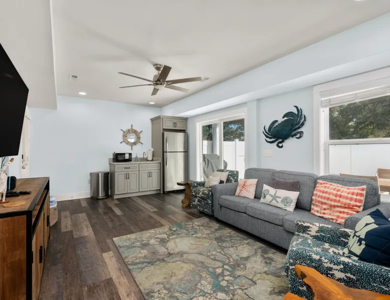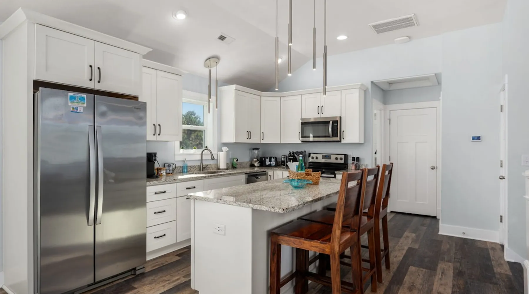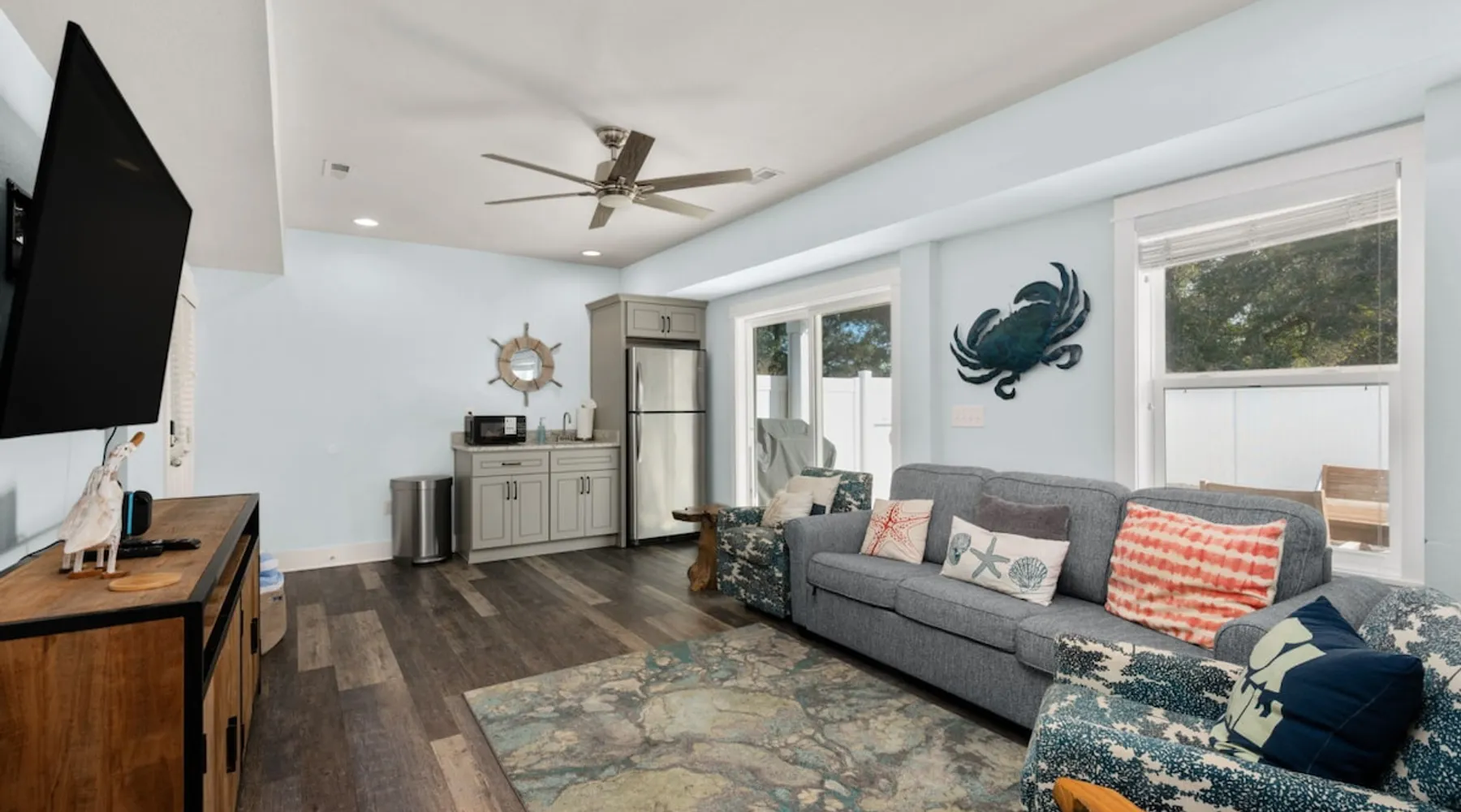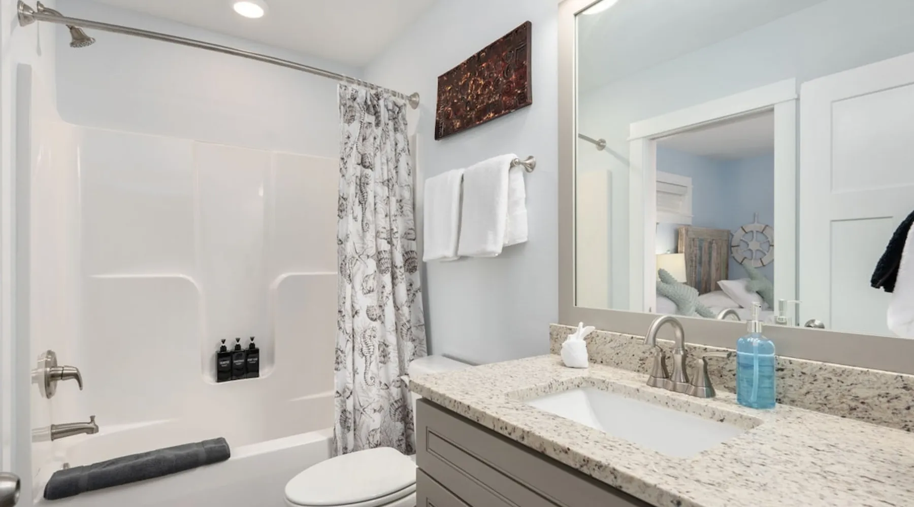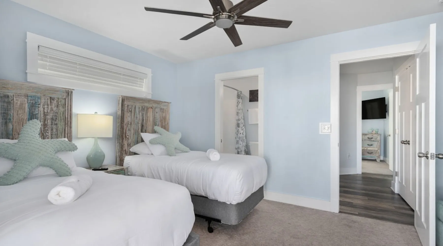Welcome to our Spectacular Sunset Beach House, your ideal Outer Banks escape located in beautiful Corolla. This spacious 2600 sq ft 3 story home comfortably sleeps up to 15 overnight guests & was thoughtfully designed to bring families, friends & beach lovers together. Enjoy the convenience of a private garage plus driveway parking making arrivals & beach days a breeze. With a private pool deck, game room, multiple suites & generous family amenities, it’s a perfect home base for an OBX adventure The space ✨ Lower Level – Game Room + Direct Pool Access Enter through a split-level foyer and head downstairs into a bright, entertainment-ready space featuring: • Game room with Smart TV, Nintendo Switch 2 with pre-loaded with games including Mario Kart, NBA 2K26, and Madden 26, & plenty of board games • Comfy couch with a queen fold-out bed • Kitchenette with fridge, microwave & BBQ utensils • Private king bedroom with Smart TV • Full bathroom Step outside to your private pool deck, complete with: • Swimming pool (Please note: the pool is closed and covered November–April) • Hot tub (heat included with your stay) • BBQ grill with propane tanks • Outdoor dining table • Outdoor shower ✨ Second Level – 3 Bedrooms + Laundry This level offers comfort and convenience for groups of all sizes: Bedroom 1 – Twin Room • Two twin beds • Fold-out twin couch/bed • Shared Jack & Jill bathroom • Smart TV Bedroom 2 – Bunk Suite • Full-over-full bunk bed • Additional full trundle • Private attached bathroom • Smart TV Bedroom 3 – King Suite • King bed • Walk-in closet • Private bathroom with walk-in shower • Smart TV A fully stocked laundry room includes: • Washer & dryer • Complimentary pods & dryer sheets • Iron & ironing board ✨ Top Level – Kitchen, Living, Dining + Master Suite Gather on the top floor in a wide-open, light-filled setting designed for connection: • Large, fully equipped kitchen with all cookware & appliances you need • Spacious dining area • Comfortable living room with abundant seating • Additional hallway bathroom • Primary master bedroom with a plush king bed and Smart TV 👶 Family-Friendly Features As parents of young children, we know how much easier traveling can be when the home is prepared for it. That’s why we offer: • Pack ’n Play + crib sheets • High chair • Baby gate • Kids’ step stools • Baby monitors • Kid-friendly plates, cups, bowls & utensils • Books, games & puzzles • Any bedroom has enough space to set up the Pack ’n Play. ✨ Community Perk – Water Access at the Neighborhood Pier Guests also enjoy access to the community pier located at the end of the street, open to all residents on the street. It’s the perfect spot for: • Catching sunrise or sunset • Crabbing or fishing (a valid North Carolina Coastal Recreational Fishing License may be required) • Enjoying peaceful soundside views 🌊 Your OBX Getaway Awaits From lively game nights to peaceful mornings on the top floor with coastal breezes drifting through, Spectacular Sunset Beach House at Cruz Bay is the perfect home for families and friends to relax, connect, and create unforgettable memories in the Outer Banks. Guest access 🚪 Complete Access & 🔐 Easy Check-In: As our esteemed guests at Spectacular Sunset Beach House, you will enjoy complete access to the entire property during your stay. Embrace the freedom and privacy of this luxurious retreat without any restrictions. For a smooth, hassle-free arrival, we provide a secure door code for easy self check-in. 🚗 Parking: Enjoy convenient parking for up to 5 vehicles — 1 in the private garage and up to 4 in the driveway. 🏖️ Beach Access: The home is just a 10-minute walk to the beach, making it easy to enjoy Corolla’s beautiful coastline anytime. 📘 Digital Guidebook: Upon confirming your booking, you will receive a comprehensive digital guidebook with essential property information, parking details, amenity instructions, and curated recommendations for attractions and dining to help you make the most of your stay. Other things to note 🎮 Game room with Smart TV & Nintendo Switch 2 Enjoy a Nintendo Switch 2 loaded with Mario Kart, NBA 2K26, and Madden 26. 🔒 Please note: The console is locked into the base station for security purposes. This means: • It cannot be removed, • Guests cannot insert their own games, and • Only the pre-loaded games are available for use. 🐾 Pet-Friendly Accommodations We welcome one dog only (up to 60 lbs) for a $200 pet fee. This covers extra hair cleanup. Please note: Additional $200 fee if waste (urine/feces) is found • Guests must clean up after their dog • Pets may not be left unattended (to prevent barking issues) • Dogs are not allowed in the pool • Please let us know in advance if you’re bringing a dog ⚠️ Important House Notes • No adhesives on walls • No tape, hooks, stickers, or other materials that can cause damage. • No glitter- glitter is extremely difficult to clean and can permanently affect surfaces. 🐜 Pests • Corolla has harmless Midges, which look similar to mosquitos but do not bite. They’re a protected species in Corolla and are attracted to light, so please keep doors closed and outdoor lights off when possible. • Snakes from nearby marshes are occasionally spotted—if you see one, contact us immediately and we’ll arrange for removal. • Bug spray is recommended for outdoor enjoyment.