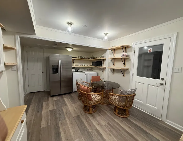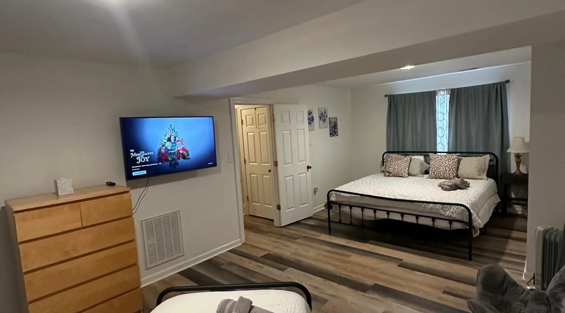 Your family will be close to everything when you stay at this centrally-located place or your travels for work . The space This home features a two story setting with a second story deck and porch below. It comes equipped with two full kitchens and two full living rooms.