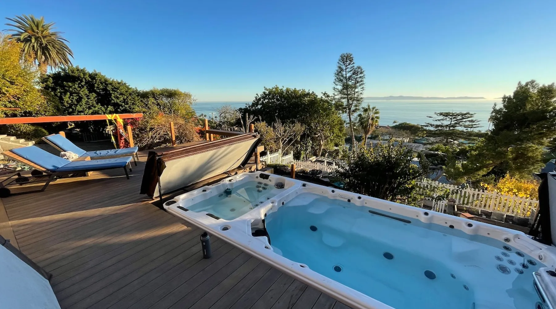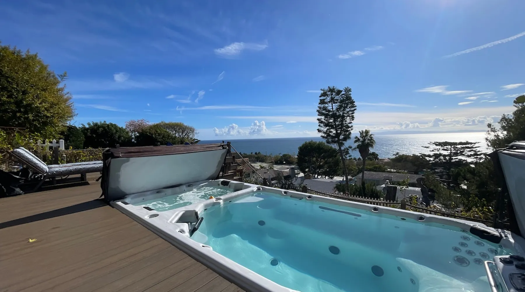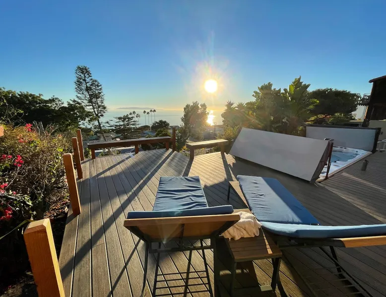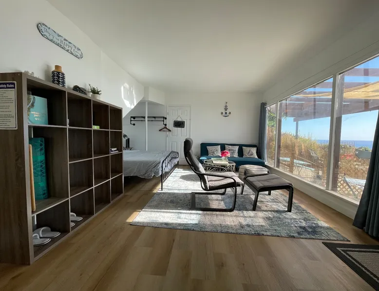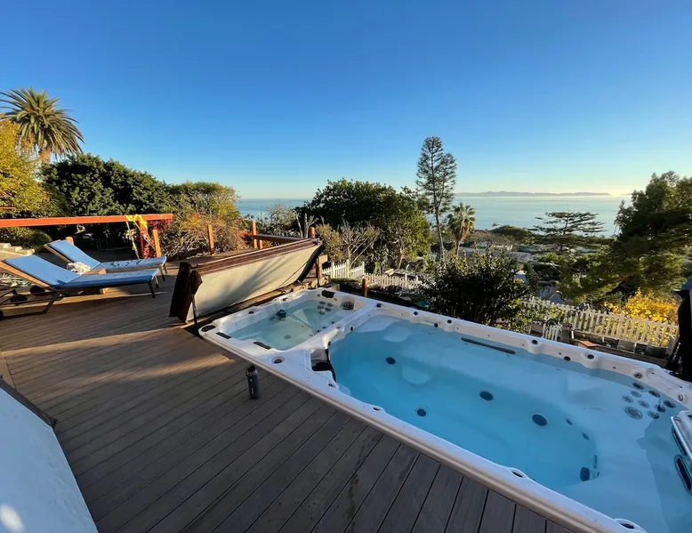 Your ocean view oasis in LA! Enjoy stunning Pacific views, a king Casper mattress, and your own jacuzzi swim spa facing the water. Watch spectacular sunsets from your private deck, soak under the stars, or explore nearby White Point trails. Includes private entrance, exclusive yard, fully equipped kitchenette, fast Wi-Fi, and Smart TV. Perfect for couples or solo travelers seeking coastal serenity. The space Our family home is tucked away in a peaceful coastal neighborhood, offering you a private guest suite on the lower level with its own separate entrance. During your stay, you'll have exclusive access to the entire backyard, pool, and jacuzzi—your own personal oasis. While we live upstairs, we prioritize your privacy and keep to ourselves. However, we're always just a message away if you need recommendations, assistance, or anything else to make your stay more comfortable. Please note: To maintain the tranquil atmosphere for everyone, quiet hours are observed from 9 PM to 7 AM. We kindly ask that you refrain from using the spa during these hours. We look forward to hosting you! Guest access Please note there are a few stairs to get to the place and the jacuzzi/swimming pool. This is not ideal if you have mobility issues. Other things to note 🏡 Amenities Included: We've stocked your suite with all the essentials—towels, toiletries, hair dryer, kitchen utensils, and kettle. Relax in the hammock, enjoy our collection of games, or unwind with the neck massager after a day of exploring. Please note: The suite has a fan and heater for comfort but does not include air conditioning. Registration Details HSR25-000330