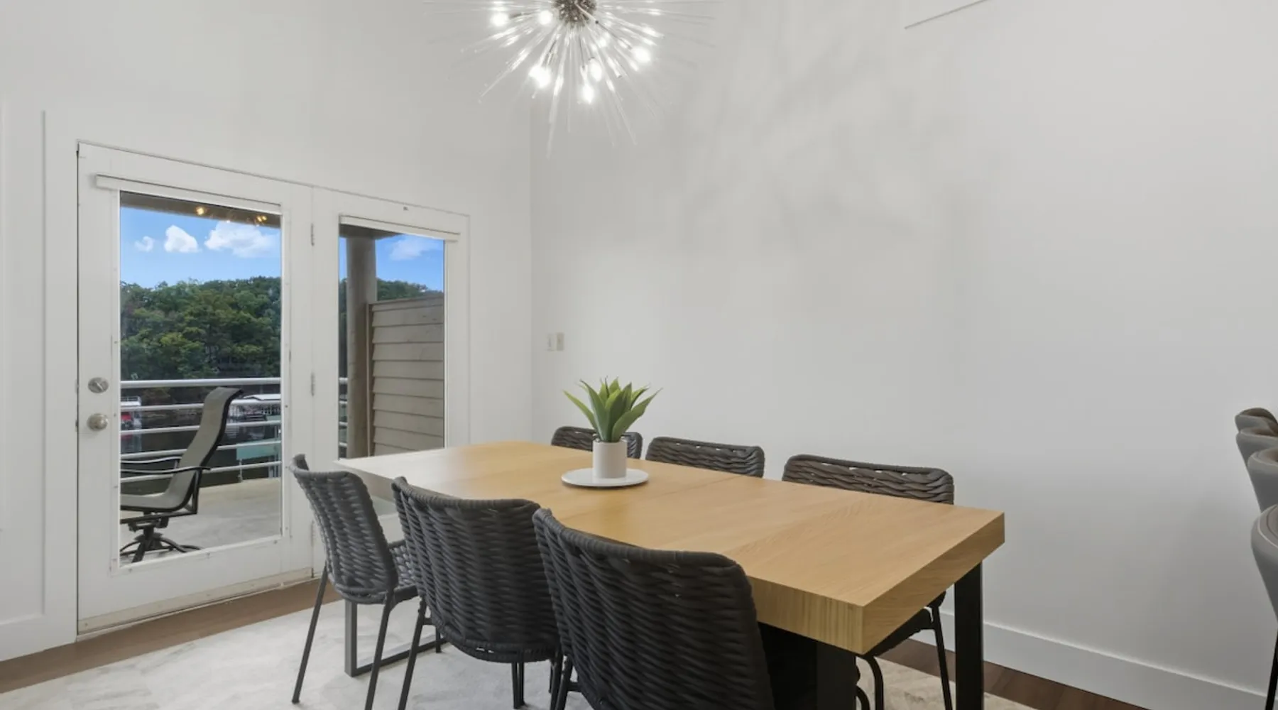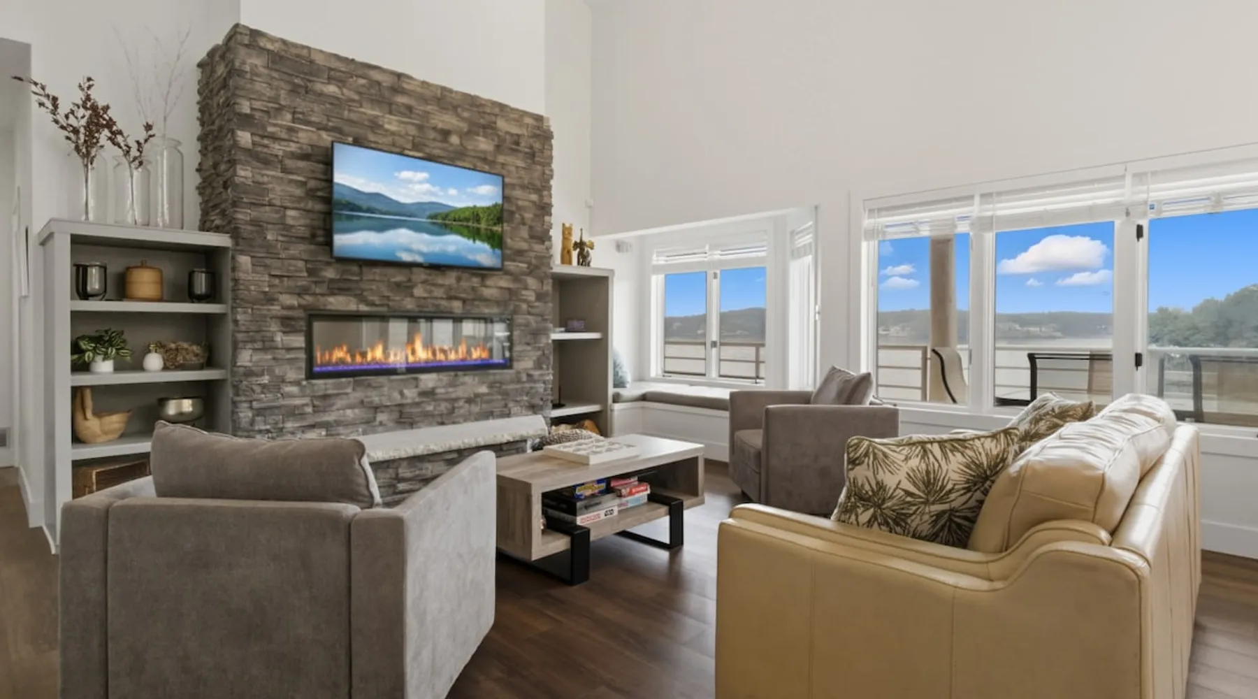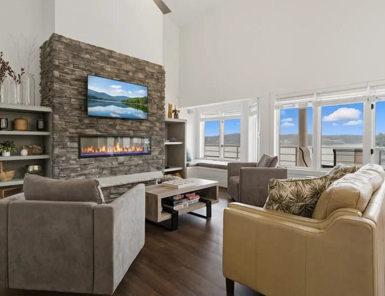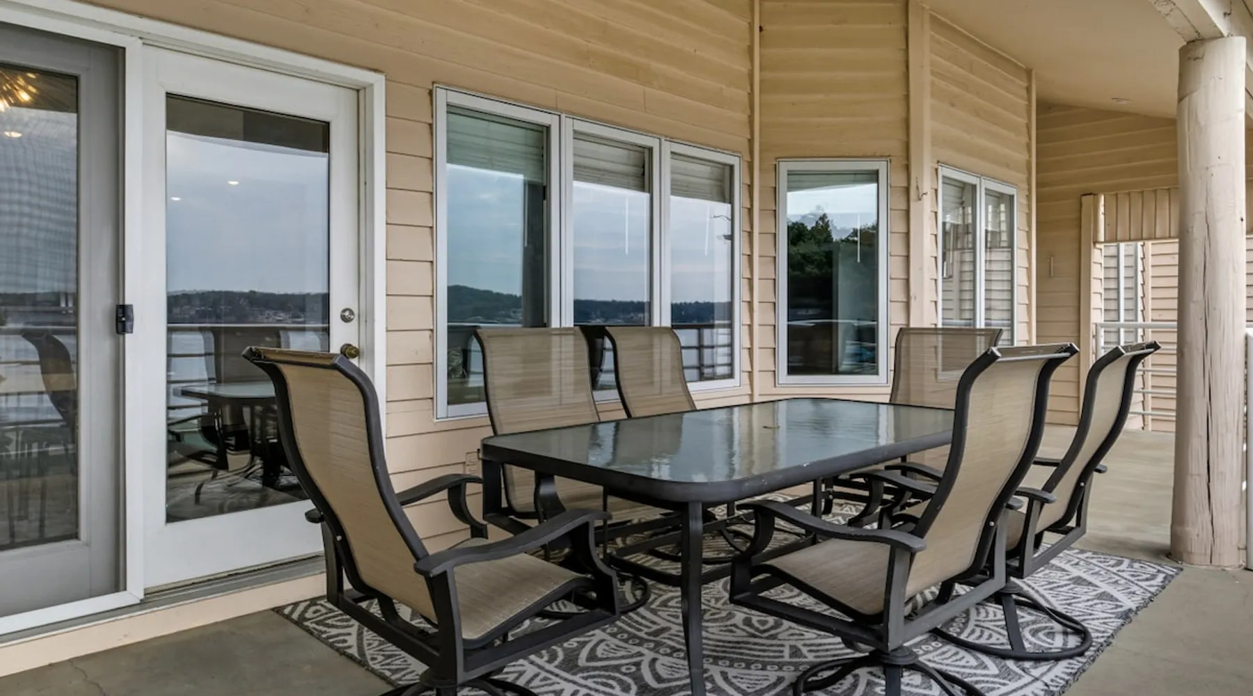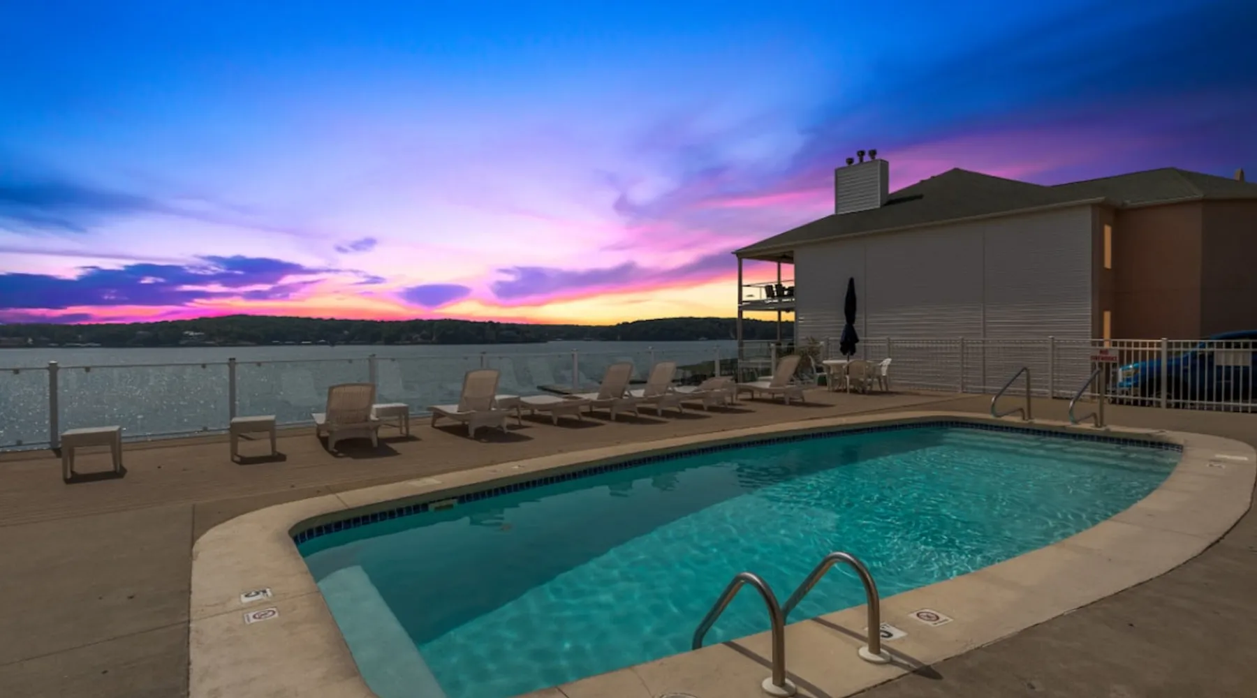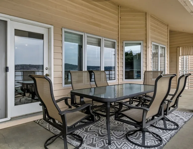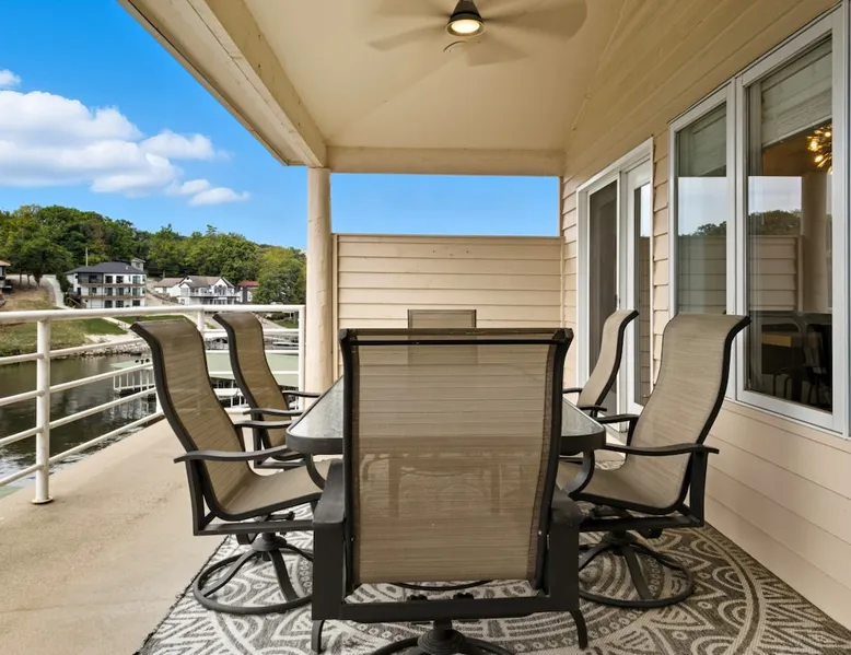 Welcome to Emerald Summit! This top floor, 4-bedroom, 3-bath condo sleeps up to 10 guests, features a game room, and panoramic views of the lake! PRIME location at mile marker 14, and situated directly across from one of two pools and the tennis court. The Emerald Bay complex is highly sought after and centrally located just off Horseshoe bend, just minutes from the Bagnell Dam Strip, Osage Beach, several golf courses, and lakefront bars and restaurants including Shady Gators, and so much more! The space Kitchen and Dining Area This bright, modern kitchen features stainless steel appliances, a wine cooler, a drip coffee maker and a breakfast bar with seating for four. It flows seamlessly into the dining area where there is a formal dining area with seating for six. Living Room The vaulted ceilings in the living room provide an open and airy feel. A stone wall centers the space with a mounted flat screen TV and an electric fireplace for the cozy nights in. There is a leather couch, two accent chairs, and a reading nook with lake views. There is access to the lakefront balcony from the living area. Master Suite The master bedroom features a king-sized bed, nightstands, flat screen TV, a closet, a reading nook and access onto the balcony. There is an attached bathroom with a single vanity sink and a shower/tub combo. Bedroom 2 The second bedroom features a queen-sized bed, flat screen TV, and a closet for clothing storage. Bedroom 3 The third bedroom features a twin over King bunk bed with a twin trundle, a flat screen TV and a closet. Bathroom 2 The second bedroom is located between the second and third bedrooms and features a single vanity sink and tub/shower combo. Bedroom 4 The fourth bedroom is located upstairs and features a queen-sized bed, nightstands, a mounted flat screen TV, and a single vanity sink with a standalone shower. Loft/Game Room The loft is the perfect place for some friendly competition, featuring 5 arcade style games! Outside Outside on the balcony you will find a large glass top table with seating for six and gorgeous views of the lake. (Gas grills and fireplaces are banned from the Emerald Bay Complex). ***There are 2 parking passes in the unit. Please display in car upon arrival. COMPLEX WILL TOW*** Guest access Your door code will be sent to you exactly 24 hours before your check in time, along with additional check in instructions. The door code will only be active from exactly 4:00pm on the day of check in to exactly 10:00am on the day of check out. Other things to note "Listing Notes: Add Listing Notes disclosure: To abide by all legal requirements and building security rules, you will be asked to provide a copy of your official government-issued photo ID, confirm your contact information, provide a valid credit card with a name that matches your ID, pass through our verification portal and, in some instances, complete a criminal background check. Important note: The information is collected for screening and verification only and is not stored or used for any other purposes. Please be advised that you will be asked to sign a rental usage agreement that governs the terms of the stay. You will also be required to pay a refundable damage deposit of $250 before check-in. By completing the reservation you agree to the following: • You agree to be bound by our rental terms and conditions. • You acknowledge that you will be required to provide a copy of a valid government-issued ID and matching credit card prior to check-in. • You acknowledge that you may be required to undergo a background check if mandated by the property management company or the building, as stated in accordance with your rental agreement and condition of the booking. • You understand that your check-in instructions might be withheld until you have successfully completed our verification portal. • You understand that your check-in instructions might be withheld until you have added a payment method in your guest portal for the damage deposit. ***Credit card fees are not refunded if a reservation is canceled