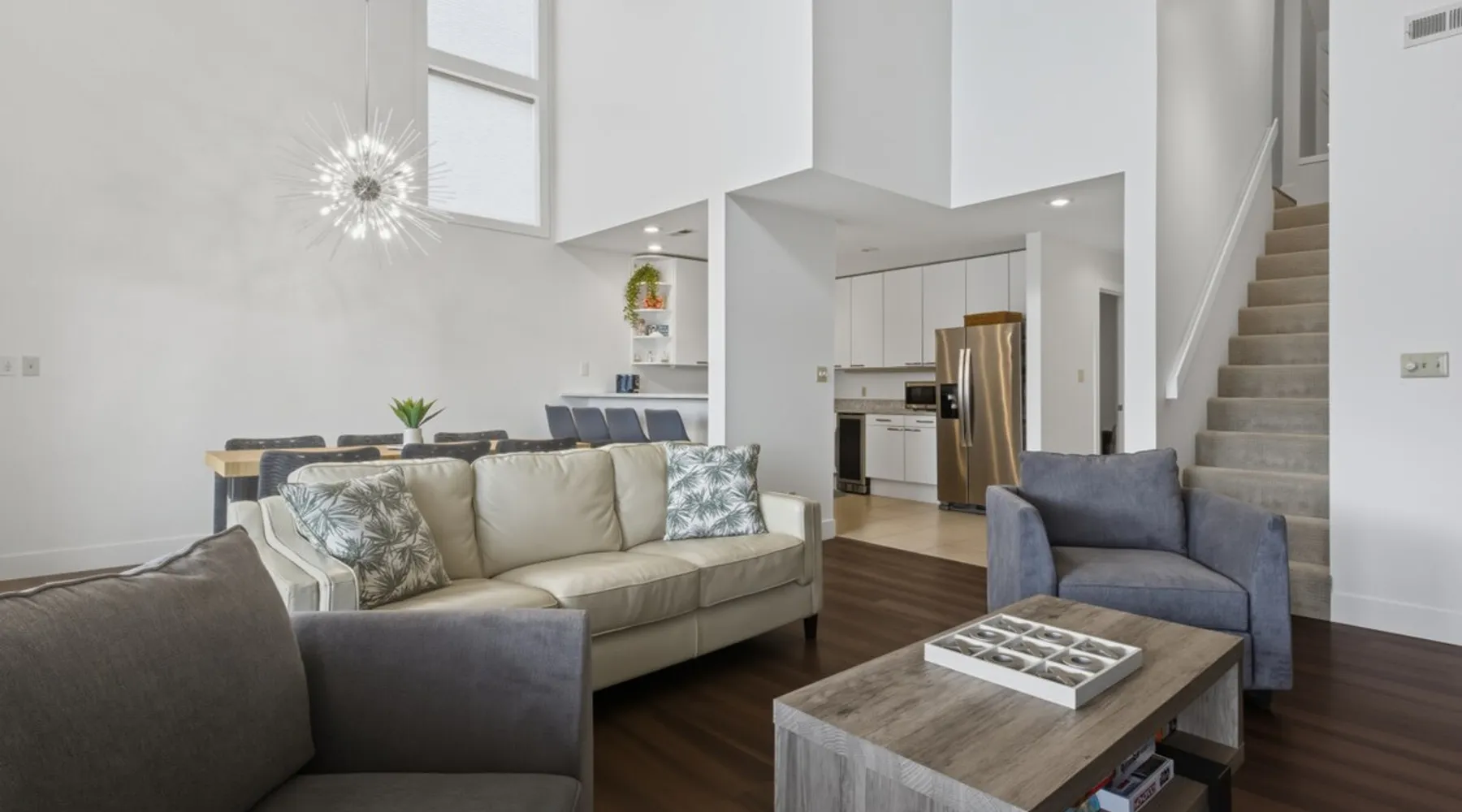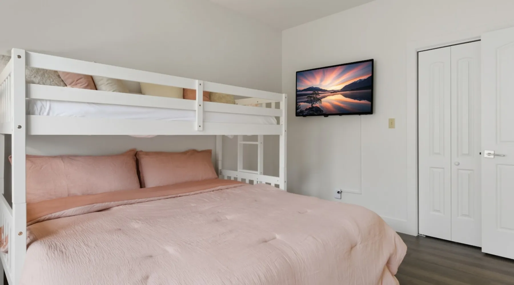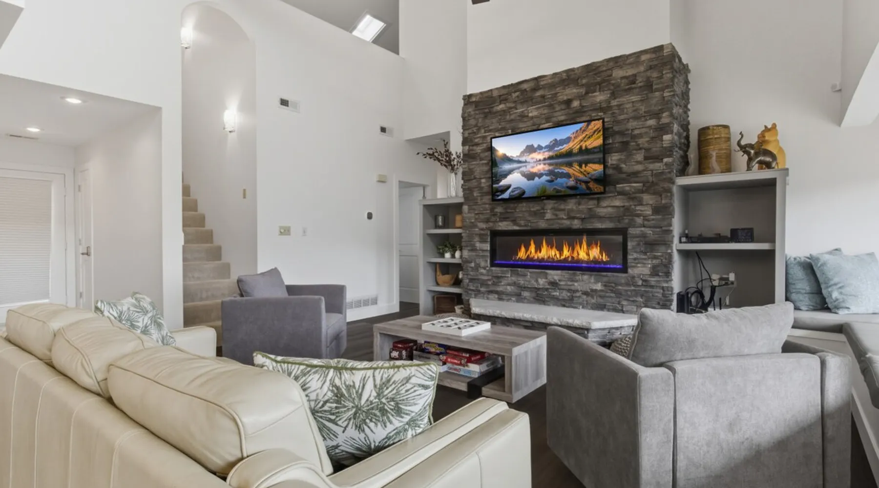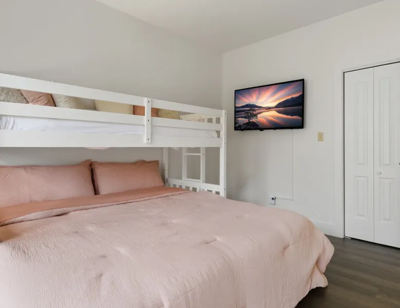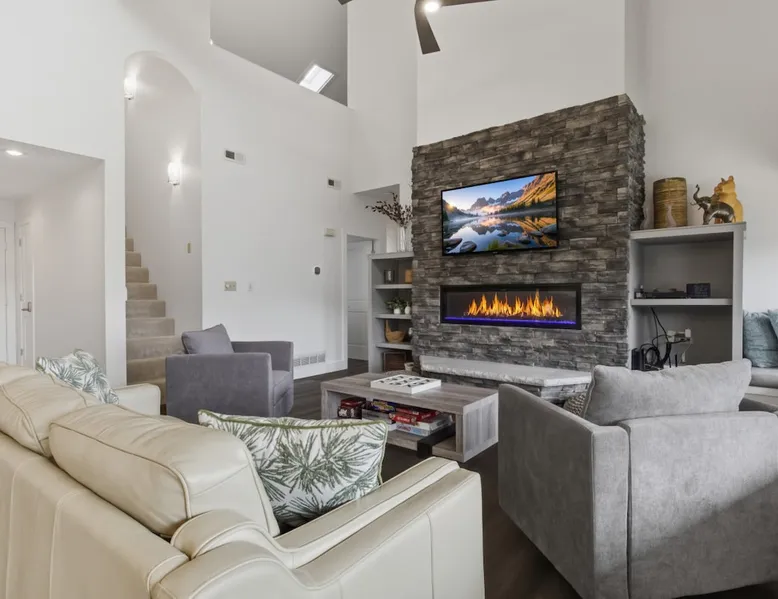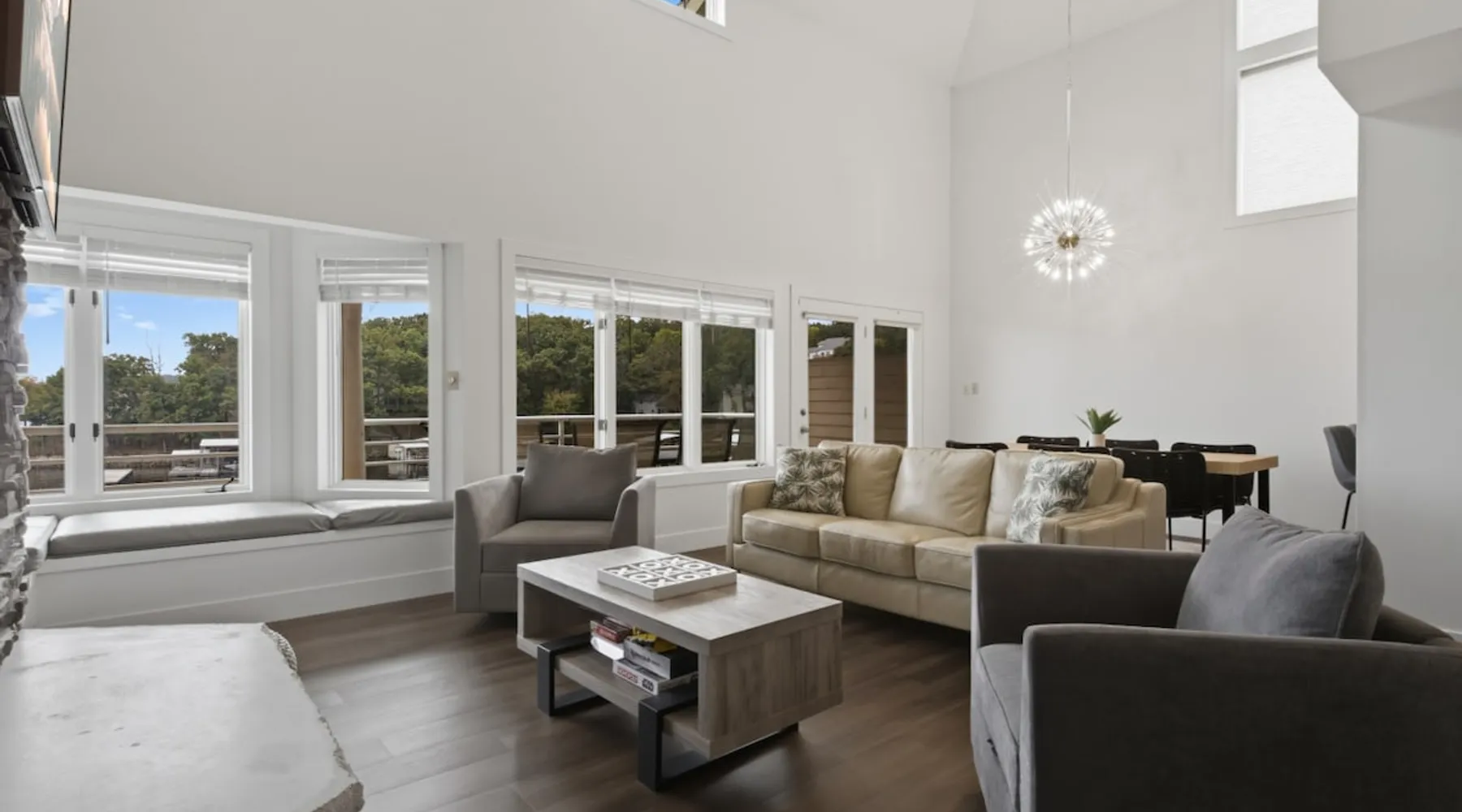 Welcome to Emerald Summit! This top floor, 4-bedroom, 3-bath condo sleeps up to 10 guests, features a game room, and panoramic views of the lake! PRIME location at mile marker 14, and situated directly across from one of two pools and the tennis court. The Emerald Bay complex is highly sought after and centrally located just off Horseshoe bend, just minutes from the Bagnell Dam Strip, Osage Beach, several golf courses, and lakefront bars and restaurants including Shady Gators, and so much more! The space Kitchen and Dining Area This bright, modern kitchen features stainless steel appliances, a wine cooler, a drip coffee maker and a breakfast bar with seating for four. It flows seamlessly into the dining area where there is a formal dining area with seating for six. Living Room The vaulted ceilings in the living room provide an open and airy feel. A stone wall centers the space with a mounted flat screen TV and an electric fireplace for the cozy nights in. There is a leather couch, two accent chairs, and a reading nook with lake views. There is access to the lakefront balcony from the living area. Master Suite The master bedroom features a king-sized bed, nightstands, flat screen TV, a closet, a reading nook and access onto the balcony. There is an attached bathroom with a single vanity sink and a shower/tub combo. Bedroom 2 The second bedroom features a queen-sized bed, flat screen TV, and a closet for clothing storage. Bedroom 3 The third bedroom features a twin over King bunk bed with a twin trundle, a flat screen TV and a closet. Bathroom 2 The second bedroom is located between the second and third bedrooms and features a single vanity sink and tub/shower combo. Bedroom 4 The fourth bedroom is located upstairs and features a queen-sized bed, nightstands, a mounted flat screen TV, and a single vanity sink with a standalone shower. Loft/Game Room The loft is the perfect place for some friendly competition, featuring 5 arcade style games! Outside Outside on the balcony you will find a large glass top table with seating for six and gorgeous views of the lake. (Gas grills and fireplaces are banned from the Emerald Bay Complex). ***There are 2 parking passes in the unit. Please display in car upon arrival. COMPLEX WILL TOW*** Guest access Your door code will be sent to you exactly 24 hours before your check in time, along with additional check in instructions. The door code will only be active from exactly 4:00pm on the day of check in to exactly 10:00am on the day of check out. Other things to note "Listing Notes: Add Listing Notes disclosure: To abide by all legal requirements and building security rules, you will be asked to provide a copy of your official government-issued photo ID, confirm your contact information, provide a valid credit card with a name that matches your ID, pass through our verification portal and, in some instances, complete a criminal background check. Important note: The information is collected for screening and verification only and is not stored or used for any other purposes. Please be advised that you will be asked to sign a rental usage agreement that governs the terms of the stay. You will also be required to pay a refundable damage deposit of $250 before check-in. By completing the reservation you agree to the following: • You agree to be bound by our rental terms and conditions. • You acknowledge that you will be required to provide a copy of a valid government-issued ID and matching credit card prior to check-in. • You acknowledge that you may be required to undergo a background check if mandated by the property management company or the building, as stated in accordance with your rental agreement and condition of the booking. • You understand that your check-in instructions might be withheld until you have successfully completed our verification portal. • You understand that your check-in instructions might be withheld until you have added a payment method in your guest portal for the damage deposit. ***Credit card fees are not refunded if a reservation is canceled