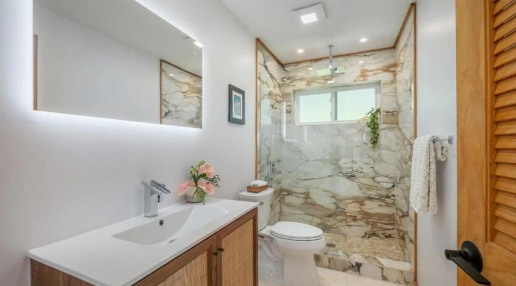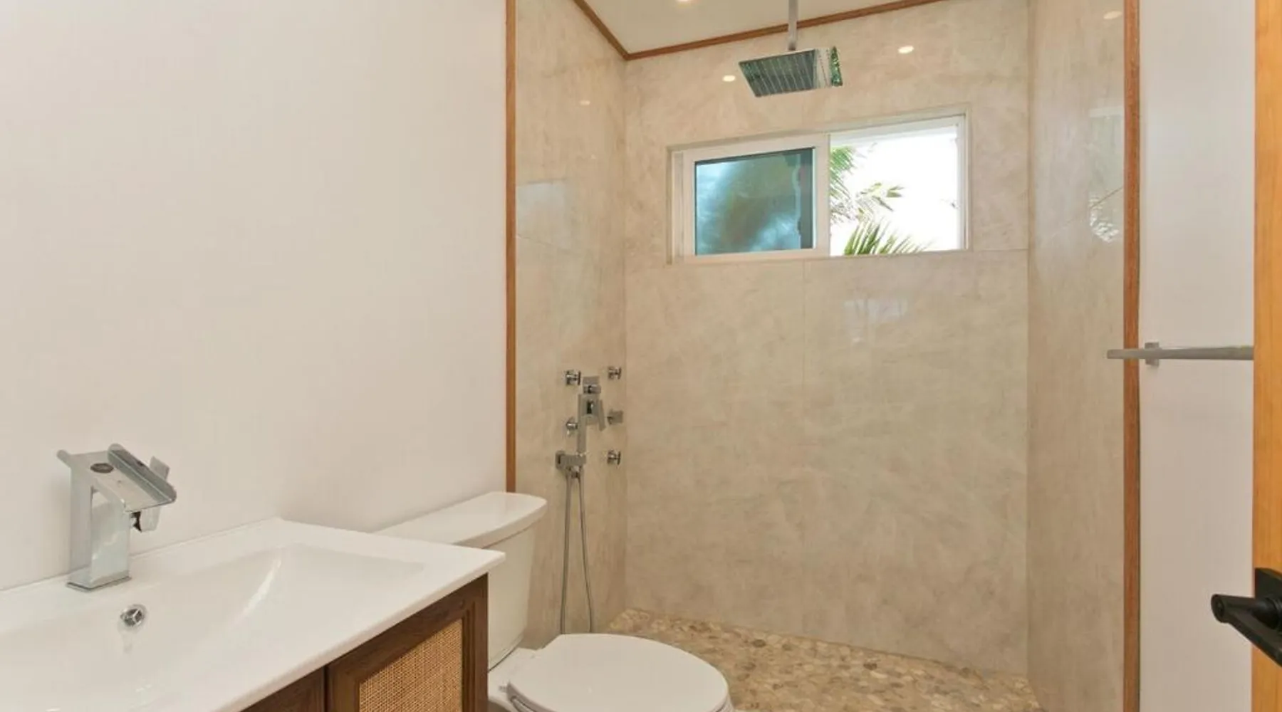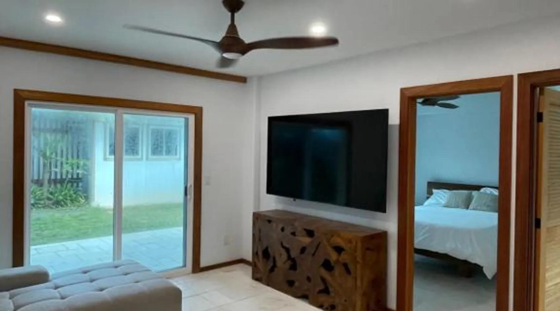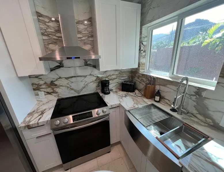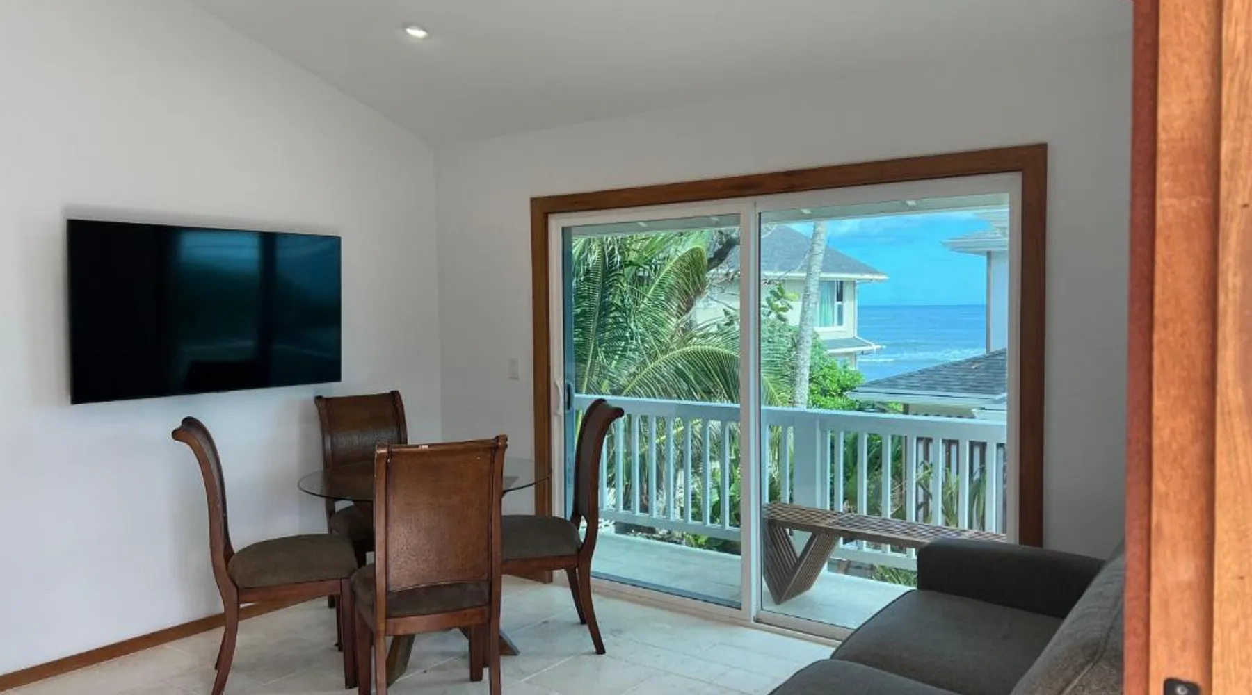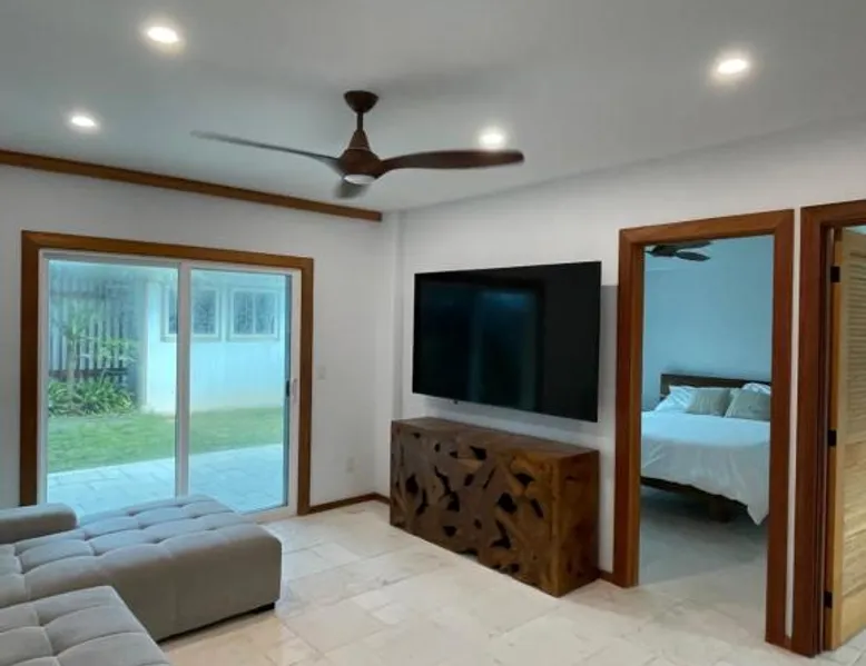 Modern Comforts: Montebu Villas in Hauula offers recently renovated villas with free WiFi and a terrace. Each unit features air-conditioning, a balcony, and a private bathroom with a walk-in shower. Convenient Amenities: Guests enjoy sea views, a fully equipped kitchen with a dishwasher and microwave, and a dining area. Additional amenities include a washing machine, TV, and free on-site private parking. Prime Location: Located 32 mi from Honolulu International Airport, the property is a few steps from Kokololio Beach Park. Nearby attractions include Polynesian Cultural Center (1.6 mi) and Banzai Pipeline (13 mi). Boasting a private entrance, this air-conditioned villa comes with 2 living rooms, 4 separate bedrooms and 2 bathrooms with a walk-in shower. Featuring a balcony with sea views, this villa also features a tea and coffee maker and a TV. The unit has 5 beds.