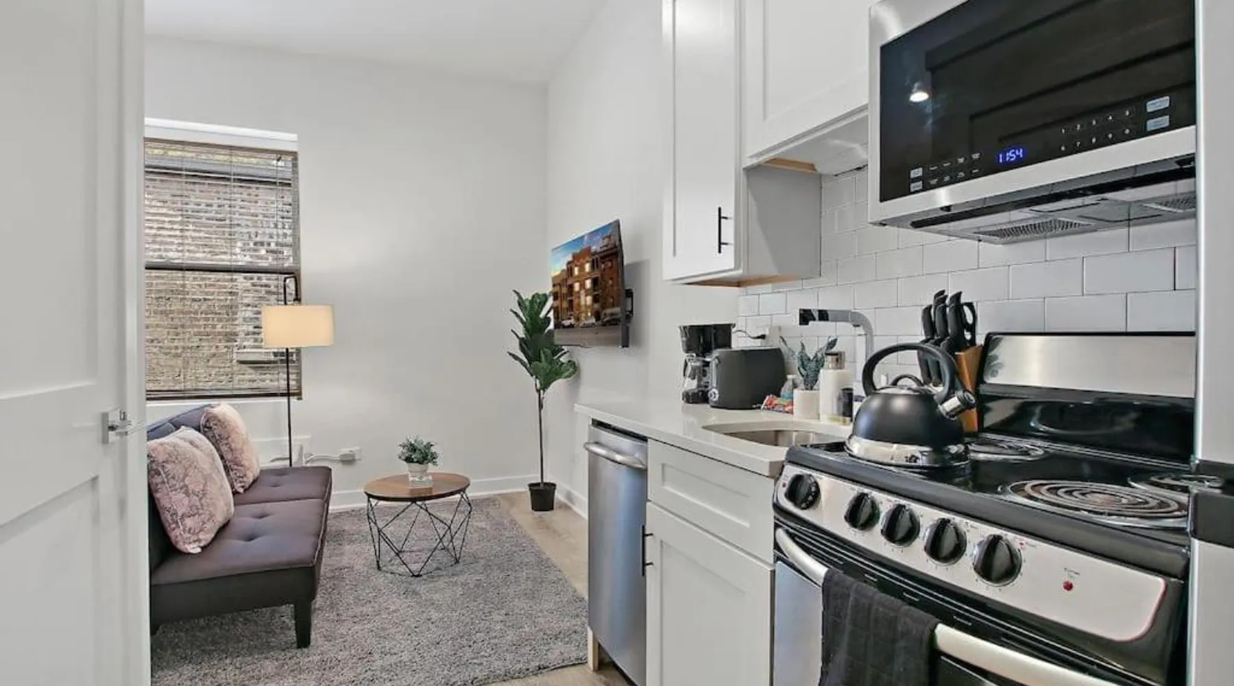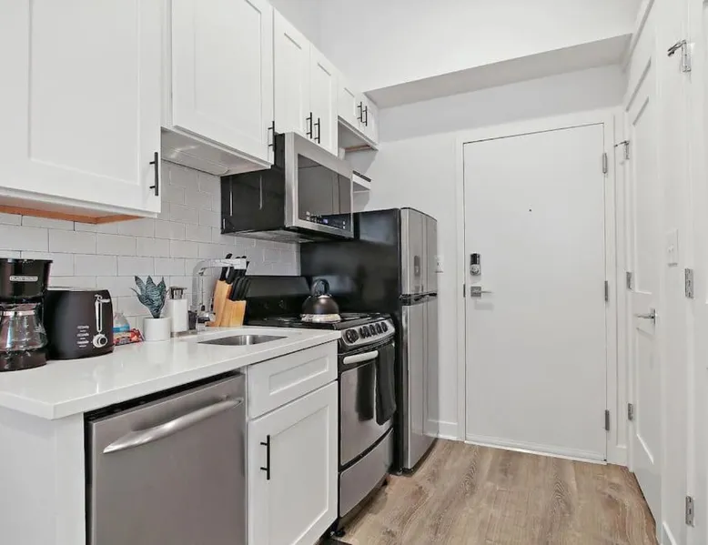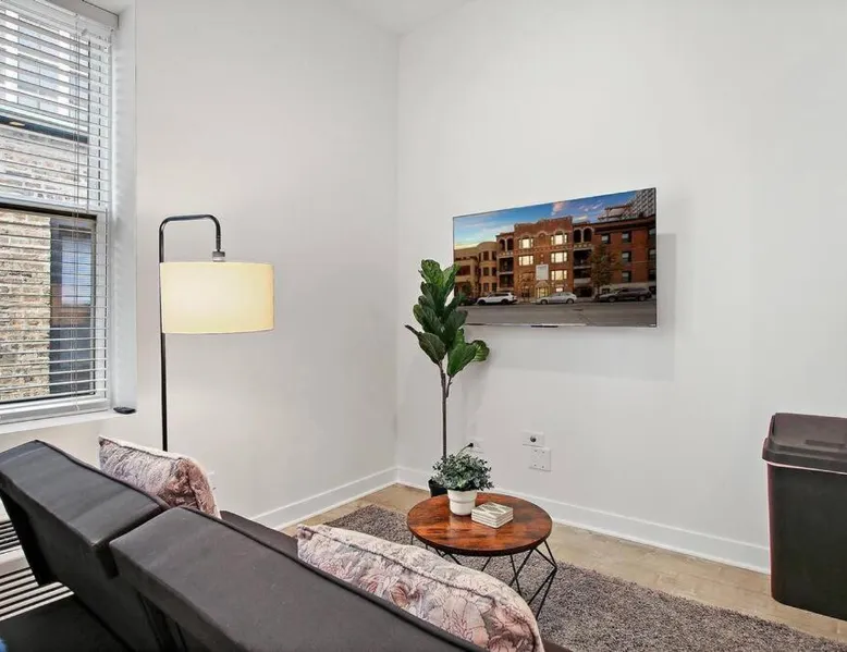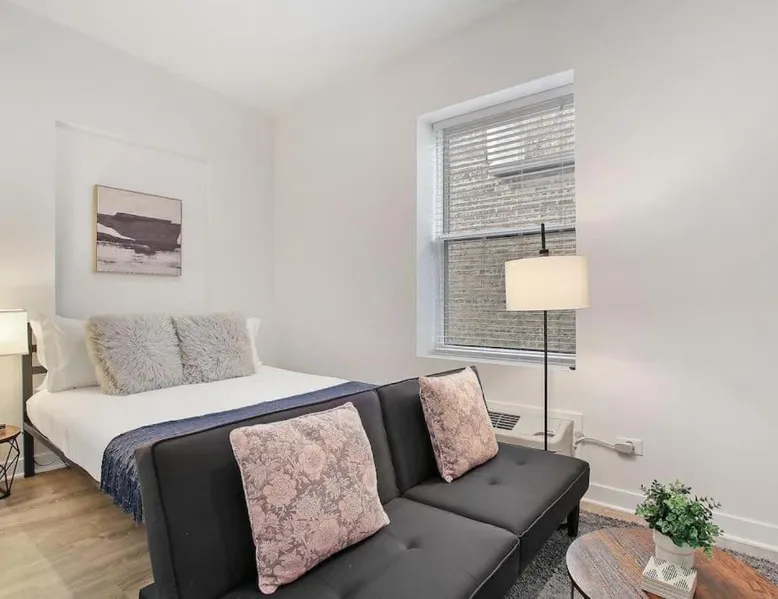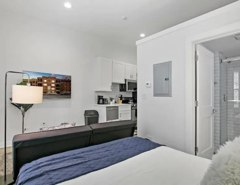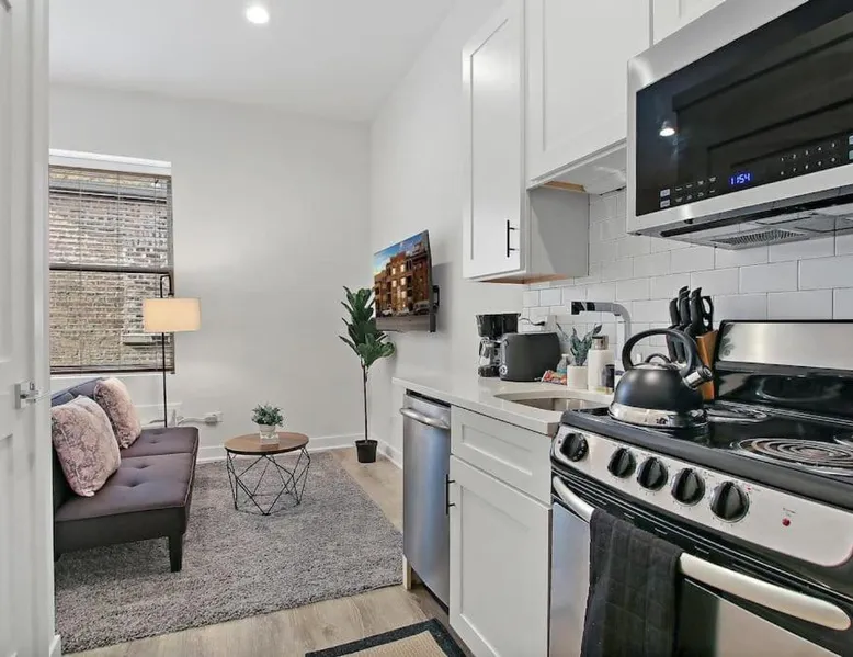 Comfortable Living Space: Studio Apt with Laundry, Near Shops! in Chicago offers a one-bedroom apartment with a fully equipped kitchen, air-conditioning, and a washing machine. The property includes a bathroom with a shower and a sofa for relaxation. Modern Amenities: Guests can enjoy a tea and coffee maker, hairdryer, refrigerator, microwave, dishwasher, oven, stovetop, toaster, electric kettle, and kitchenware. The apartment features a TV and a comfortable seating area, ensuring a pleasant stay. Prime Location: Located 14 mi from Chicago O'Hare International Airport, the apartment is a 17-minute walk from Montrose Beach. Nearby attractions include Wrigley Field (1.3 mi), Lincoln Park Zoo (3.1 mi), and Navy Pier (6.2 mi). Boating opportunities are available in the surrounding area. The air-conditioned apartment features 1 bedroom and 1 bathroom with a bath and a shower. The fully equipped kitchen has a stovetop, a refrigerator, a dishwasher and kitchenware. The apartment provides a washing machine, a tea and coffee maker, tumble dryer, a sofa and a flat-screen TV. The unit offers 1 bed.