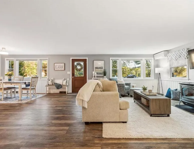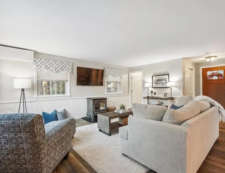 Spacious Accommodations: Sargent Lake Retreat in Belmont offers a spacious holiday home with three bedrooms and two bathrooms. The property features a living room, family rooms, and an outdoor seating area. Modern Amenities: Guests enjoy free WiFi, air-conditioning, a washing machine, and a fully equipped kitchen with a dishwasher and microwave. Additional amenities include a fireplace, tea and coffee maker, and a work desk. Outdoor Activities: The retreat provides access to fishing, skiing, canoeing, and hiking. Free on-site private parking is available for guests. Nearby Attractions: Located 48 mi from Manchester Boston Regional Airport, the property is 22 mi from the New Hampshire Supreme Court and 27 mi from the New Hampshire State Capitol. Highly rated by guests. This holiday home features a fireplace. Featuring a private entrance, this air-conditioned holiday home consists of 2 living rooms, 3 separate bedrooms and 2 bathrooms with a bath and a shower. The well-equipped kitchen features a stovetop, a refrigerator, a dishwasher and kitchenware. The spacious holiday home provides a flat-screen TV with cable channels, a washing machine, a tea and coffee maker, a seating area as well as lake views. The unit offers 5 beds.
