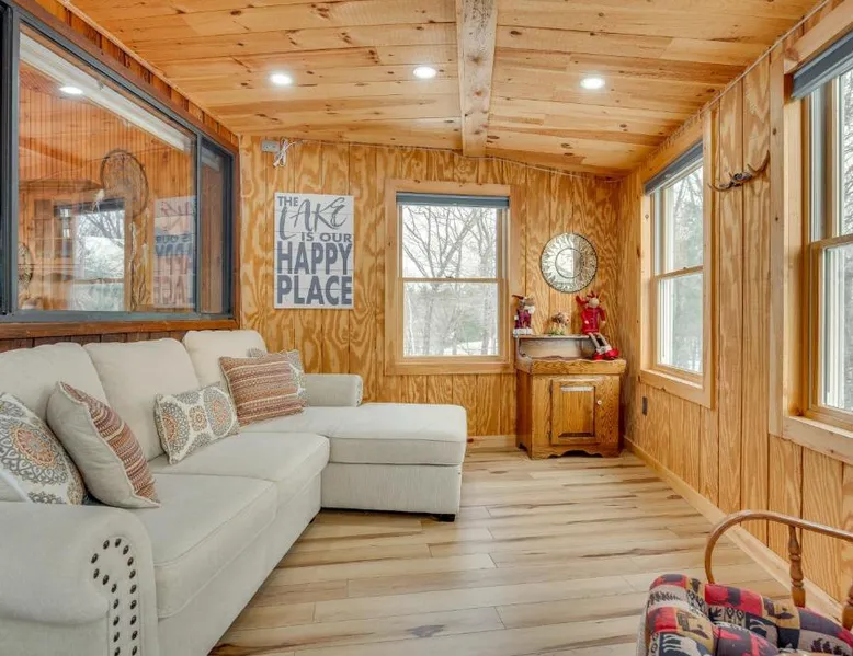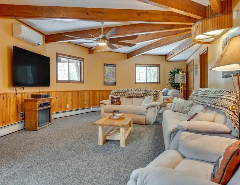 Spacious Accommodations: Dock and Beach Access Scenic Lake Ossipee Cabin! in Center Ossipee offers a spacious holiday home with four bedrooms and four bathrooms. The property features a living room and a private entrance. Beachfront and Wellness: Guests enjoy beachfront access, a spa and wellness center, and free WiFi. The property includes a balcony with sea views, air-conditioning, and a washing machine. Modern Amenities: The holiday home is equipped with a fully fitted kitchen, dining area, and outdoor dining space. Additional amenities include a patio, barbecue, and a range of appliances. Local Attractions: Located 47 mi from Portland International Jetport, the property is near attractions such as Kahuna Laguna (23 mi), Mount Washington Observatory Weather Discovery Center (21 mi), and White Mountain National Forest (30 mi). Boasting a private entrance, this air-conditioned holiday home includes 1 living room, 4 separate bedrooms and 4 bathrooms with a bath and a hairdryer. Guests will find a stovetop, a refrigerator, a dishwasher and kitchenware in the fully equipped kitchen. The holiday home also features a barbecue. The spacious holiday home offers a flat-screen TV with cable channels, a washing machine, a coffee machine, a wardrobe as well as sea views. The unit has 10 beds.