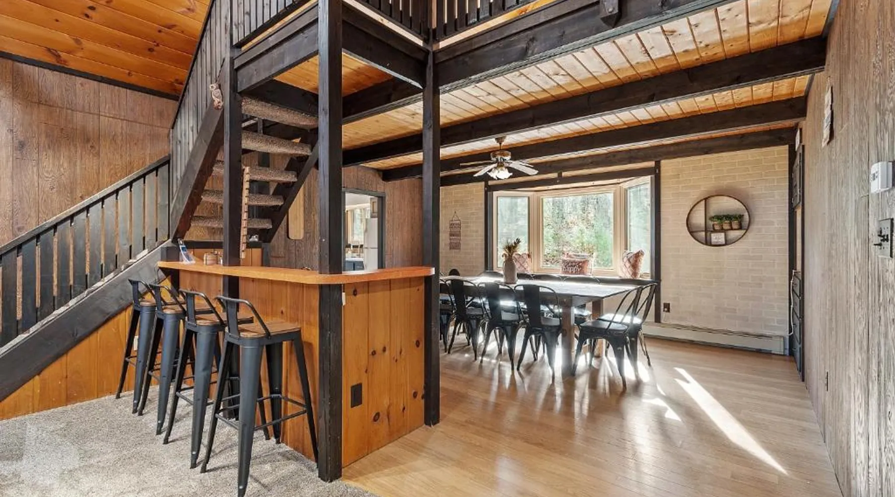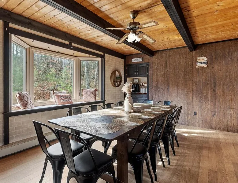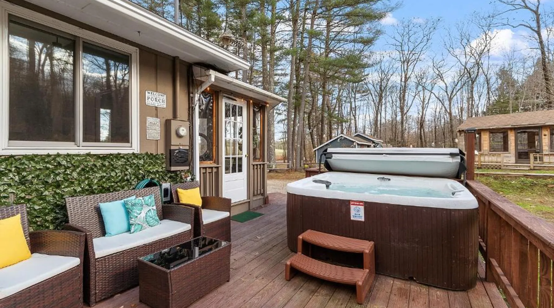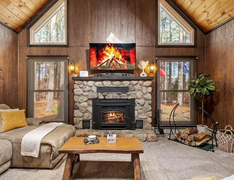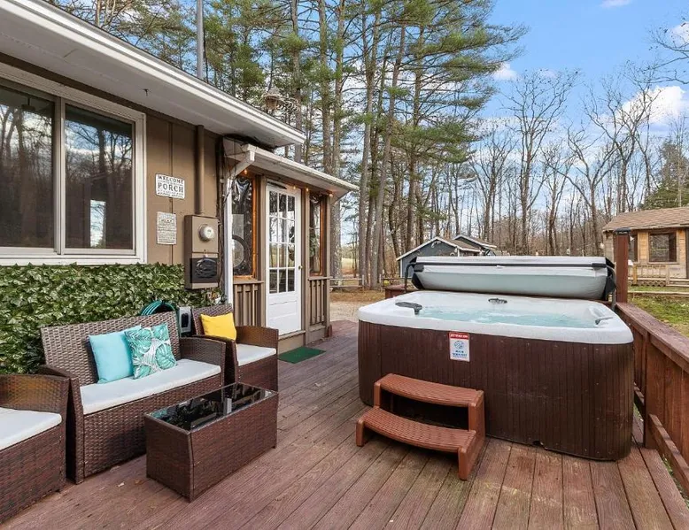 Comfortable Accommodations: NEW! Woodland Retreat in Tamworth offers four bedrooms and two bathrooms. The holiday home features a fully equipped kitchen, dining area, and family rooms. Outdoor Spaces: Guests can enjoy a garden, terrace, and outdoor seating area. The property includes a hot tub, firepit, and picnic area, perfect for relaxation. Amenities: The holiday home provides free WiFi, air-conditioning, and a games room. Additional amenities include a balcony, patio, and outdoor furniture. Location: Located 59 mi from Portland International Jetport, the property is near attractions such as Story Land Amusement Park (28 mi) and Mount Washington Observatory Weather Discovery Center (19 mi). This holiday home's standout features are the hot tub and fireplace. Guests will find a stovetop, a dishwasher, an oven and a microwave in the well-fitted kitchen. The holiday home also features a barbecue. Boasting a patio, this holiday home also offers air conditioning, a tea and coffee maker and a flat-screen TV. The unit has 8 beds.