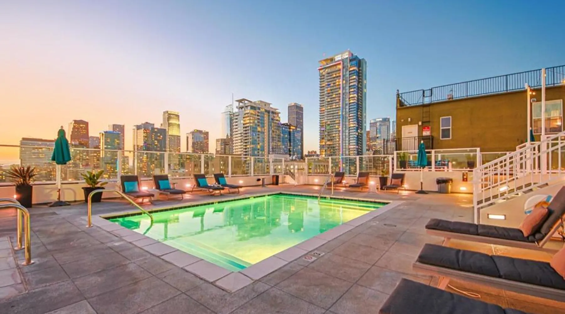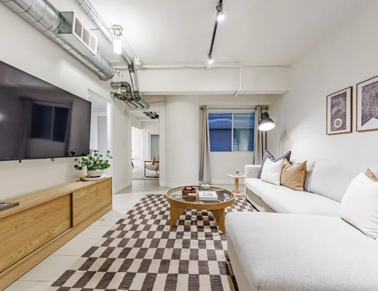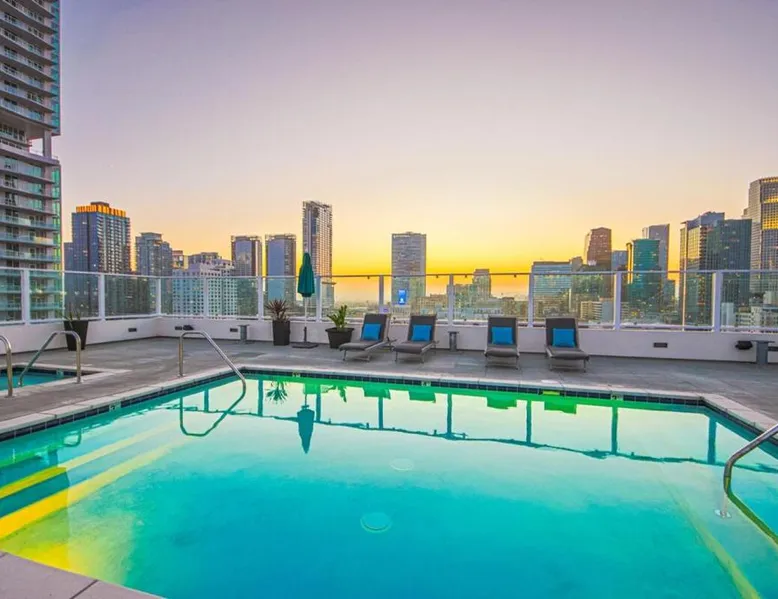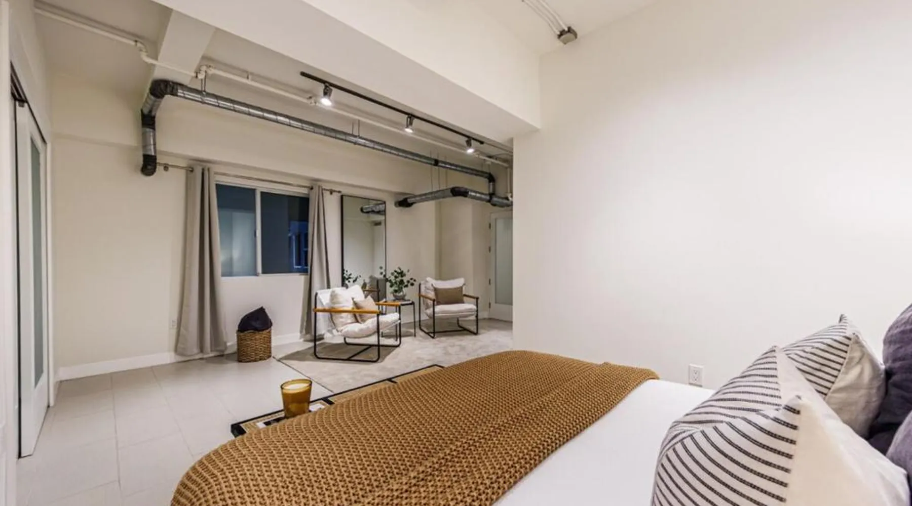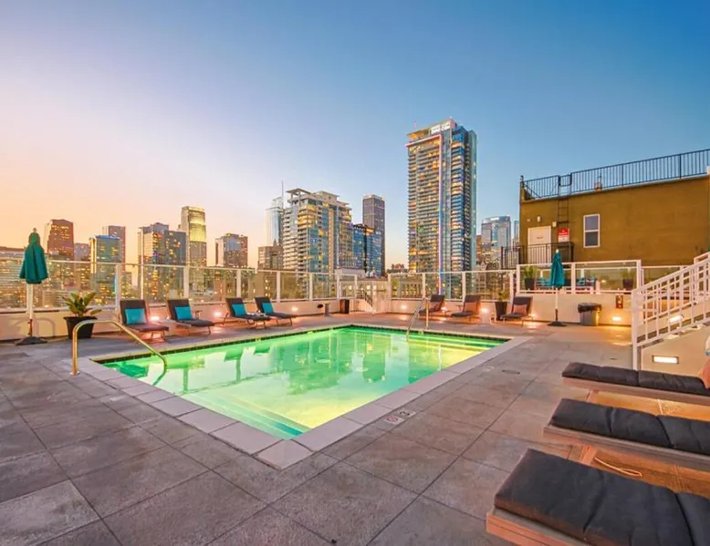 Spacious Living: Modern Loft 1BR in Downtown LA! offers a spacious apartment in Los Angeles city center. The property features one bedroom, one bathroom, and a comfortable living room. Outdoor Amenities: Guests can enjoy a sun terrace and an outdoor swimming pool. The terrace provides a relaxing space, while the pool offers a refreshing retreat. Free WiFi is available throughout the apartment. Convenient Facilities: The apartment includes air-conditioning, a kitchenette, and a washing machine. Additional amenities include a hot tub, elevator, and 24-hour front desk. Full-day security ensures a safe stay. Prime Location: Located 11 mi from Hawthorne Municipal Airport, the property is a short walk from Microsoft Theater and Crypto.com Arena. Nearby attractions include La Union Station and the California Science Center. Boating is available in the surrounding area. This apartment's special features are the pool with a view and the hot tub. This spacious apartment consists of 1 living room, 1 separate bedroom and 1 bathroom with a shower and free toiletries. The fully equipped kitchen features a stovetop, a refrigerator, a dishwasher and kitchenware. The air-conditioned apartment provides a flat-screen TV, a washing machine, a tea and coffee maker, a dining area as well as city views. The unit offers 2 beds.