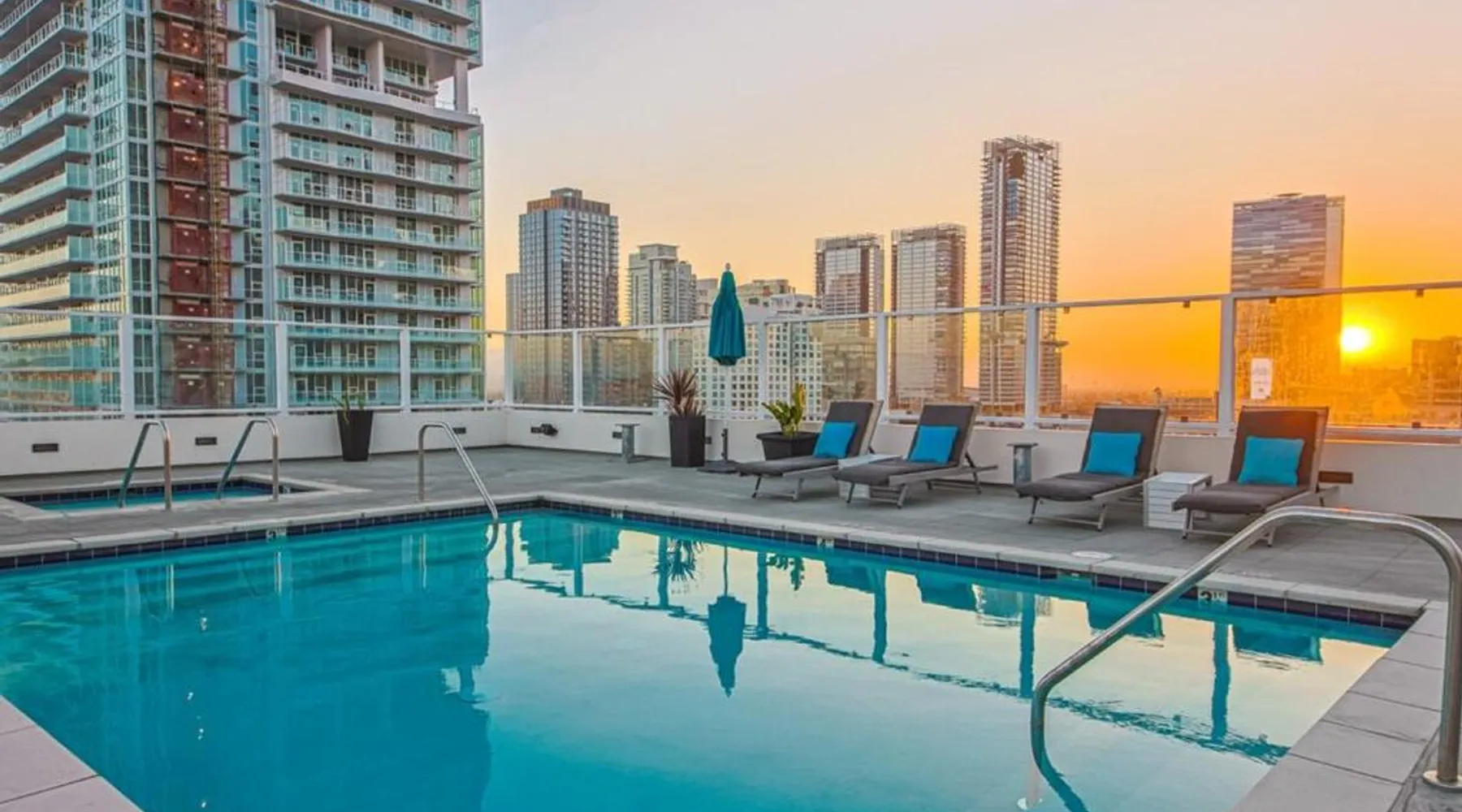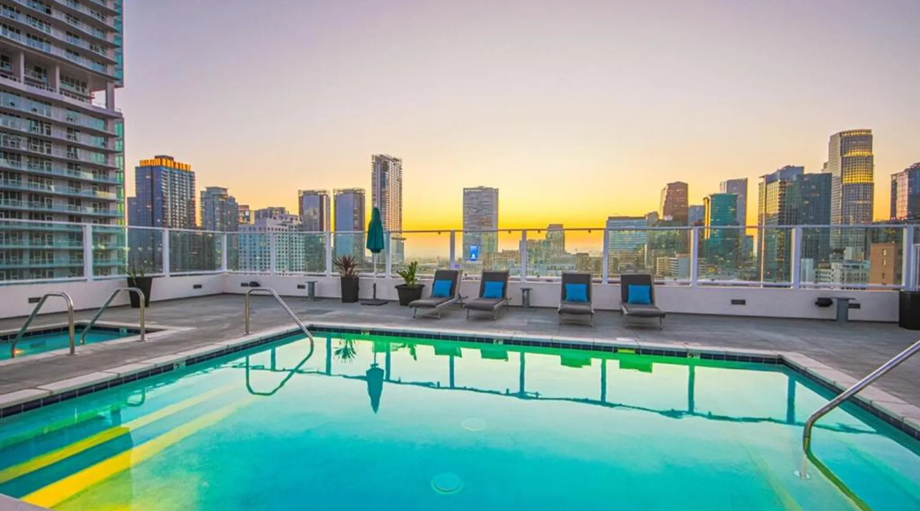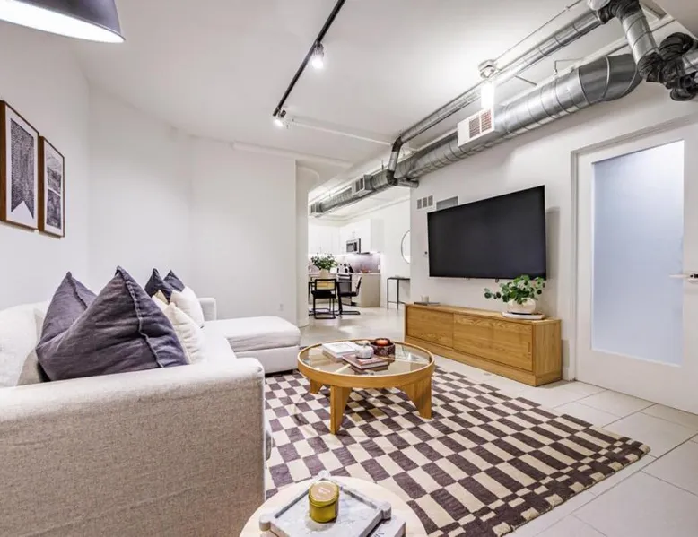 Spacious Living: Modern Loft 1BR in Downtown LA! offers a spacious apartment in Los Angeles city center. The property features one bedroom, one bathroom, and a comfortable living room. Outdoor Amenities: Guests can enjoy a sun terrace and an outdoor swimming pool. The terrace provides a relaxing space, while the pool offers a refreshing retreat. Free WiFi is available throughout the apartment. Convenient Facilities: The apartment includes air-conditioning, a kitchenette, and a washing machine. Additional amenities include a hot tub, elevator, and 24-hour front desk. Full-day security ensures a safe stay. Prime Location: Located 11 mi from Hawthorne Municipal Airport, the property is a short walk from Microsoft Theater and Crypto.com Arena. Nearby attractions include La Union Station and the California Science Center. Boating is available in the surrounding area. This apartment's special features are the pool with a view and the hot tub. This spacious apartment consists of 1 living room, 1 separate bedroom and 1 bathroom with a shower and free toiletries. The fully equipped kitchen features a stovetop, a refrigerator, a dishwasher and kitchenware. The air-conditioned apartment provides a flat-screen TV, a washing machine, a tea and coffee maker, a dining area as well as city views. The unit offers 2 beds.