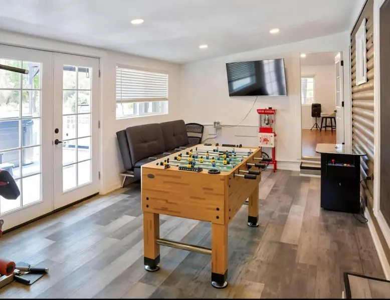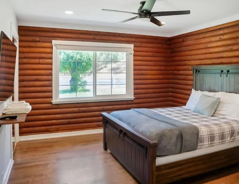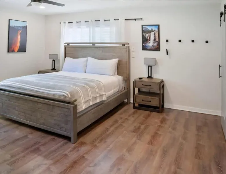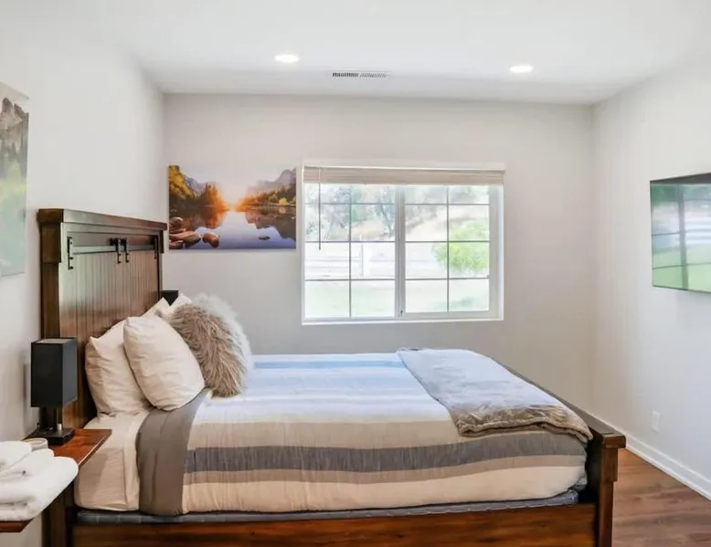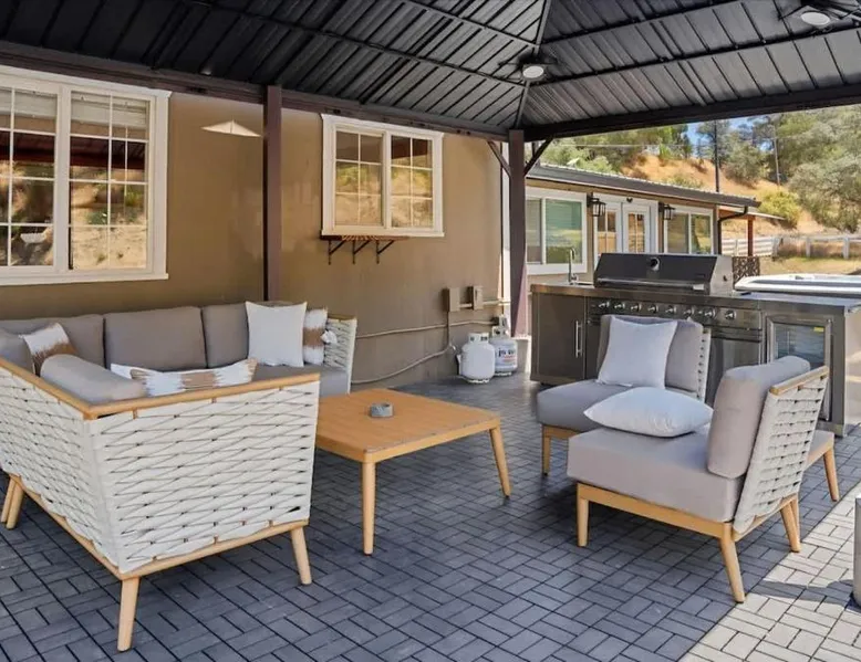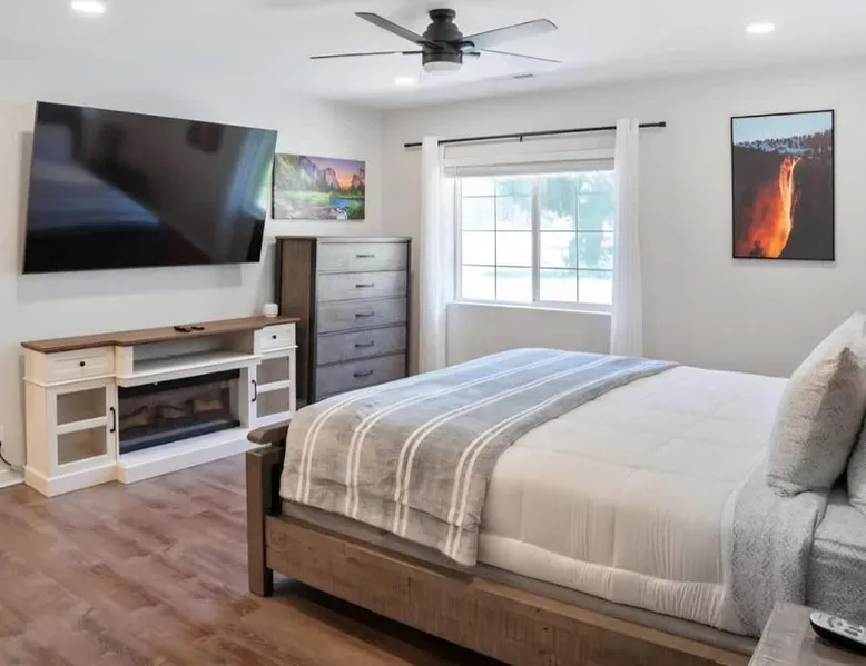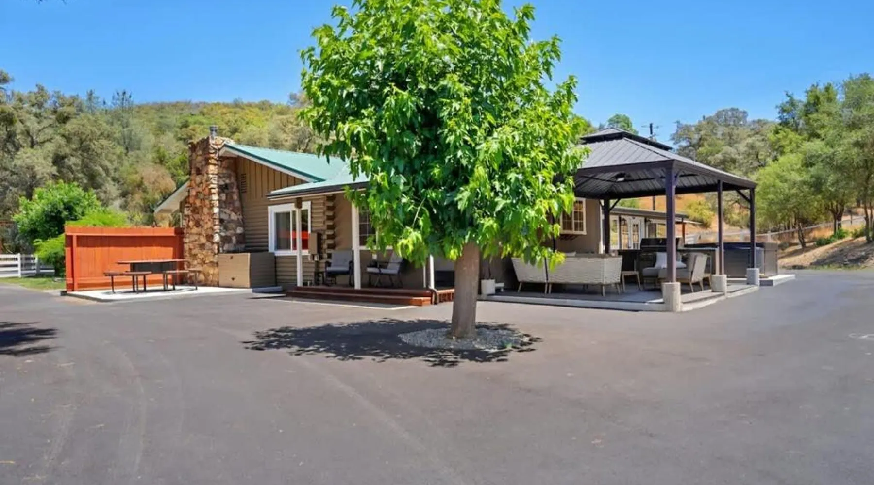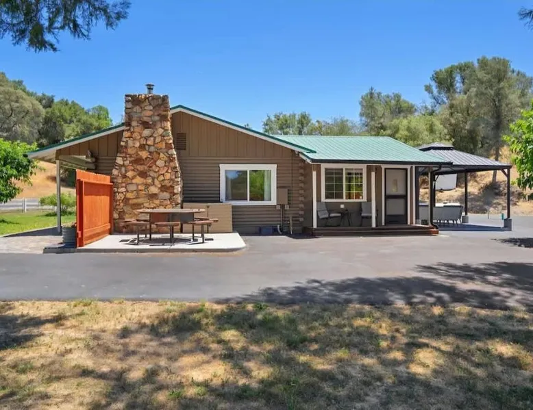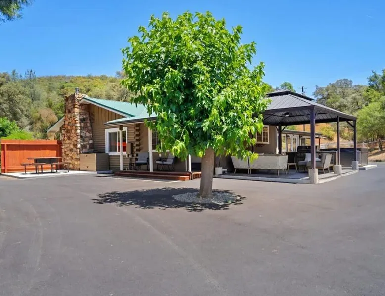 Spacious Accommodations: Modern Cabin Bungalow in Mariposa offers three bedrooms and two bathrooms. The property features a fully equipped kitchen, air-conditioning, and a cozy fireplace. Outdoor Amenities: Guests can relax in the garden or hot tub. The patio includes outdoor furniture, perfect for enjoying the scenic surroundings. Essential Facilities: The holiday home provides free WiFi, a washing machine, and a dishwasher. Additional amenities include a barbecue, TV, and a wardrobe. Convenient Location: Merced Municipal Airport is 34 mi away. The property offers easy access to local attractions. The hot tub and fireplace are the special features of this bungalow. This spacious bungalow comes with 3 bedrooms, kitchen and 2 bathrooms with a hairdryer. Guests will find a stovetop, a refrigerator, a dishwasher and kitchenware in the well-fitted kitchen. The bungalow also includes a barbecue. Boasting a patio, this bungalow also features air conditioning, a washing machine and a TV. The unit has 3 beds.