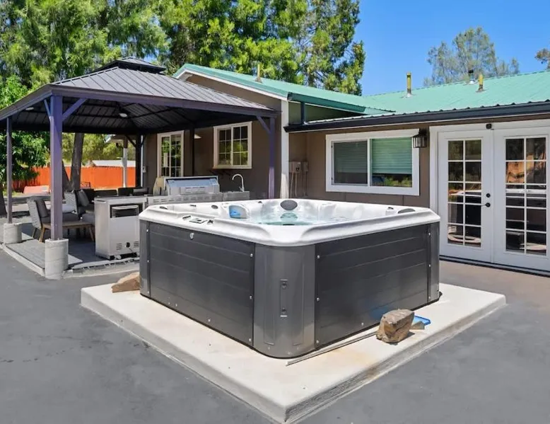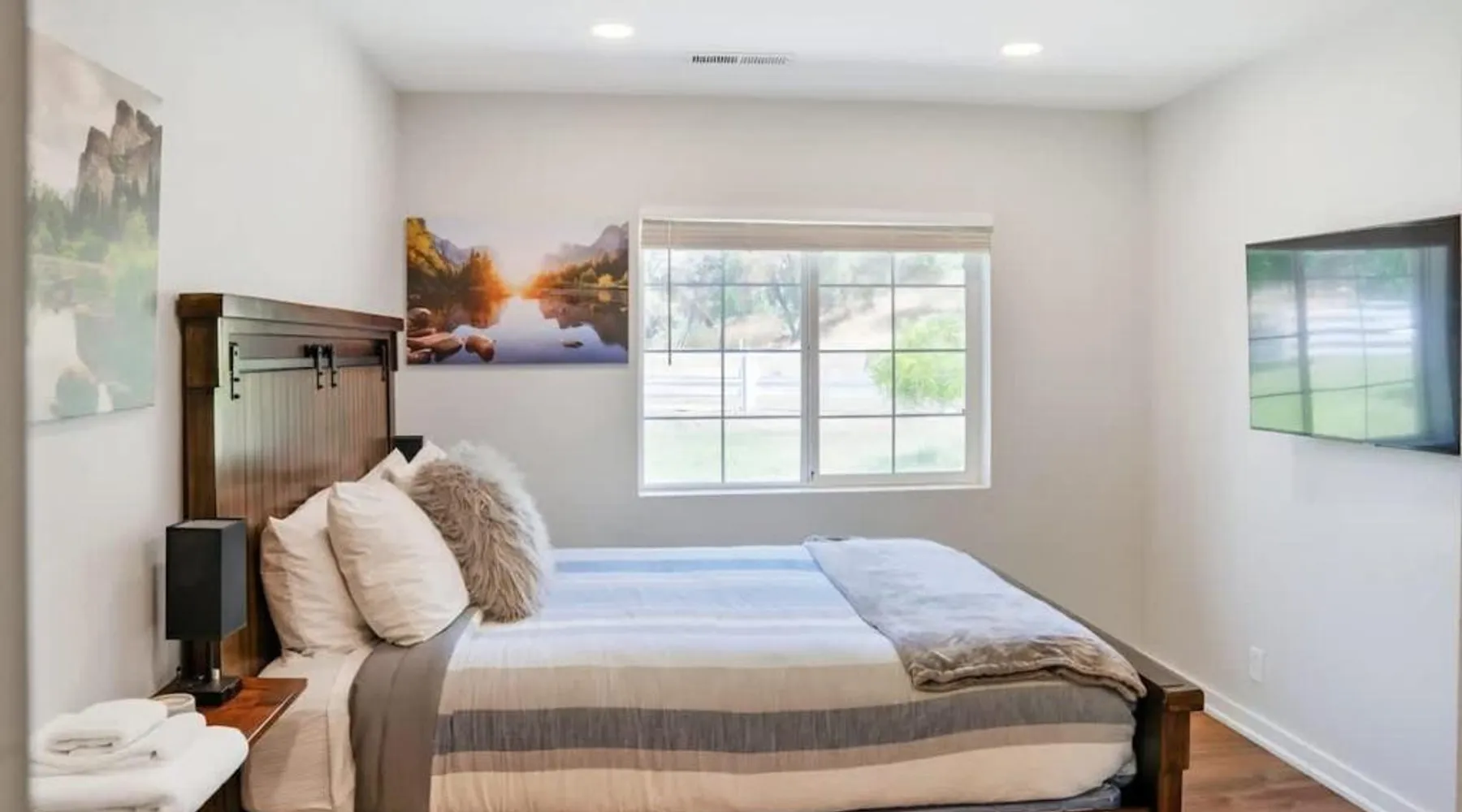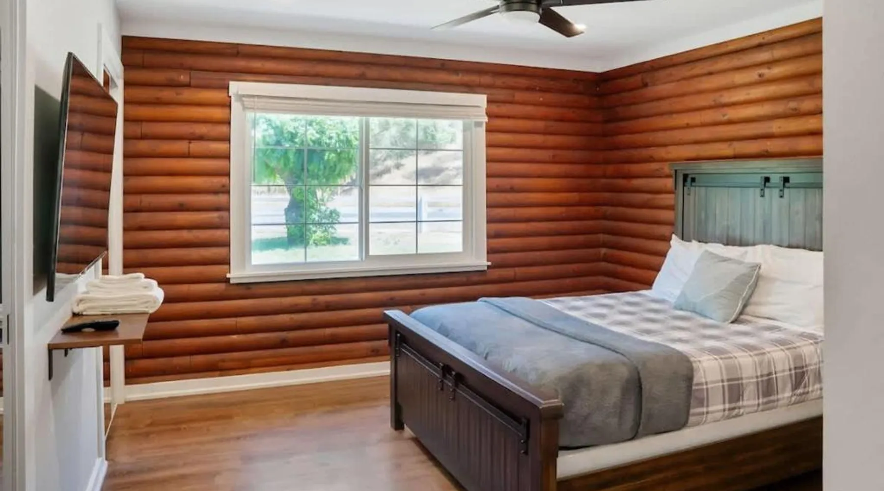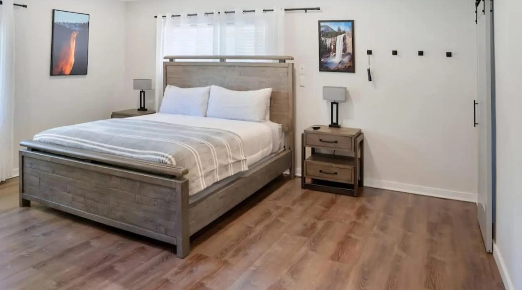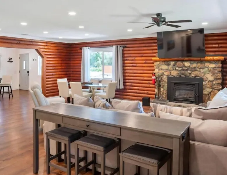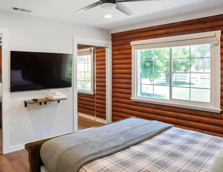 Spacious Accommodations: Modern Cabin Bungalow in Mariposa offers three bedrooms and two bathrooms. The property features a fully equipped kitchen, air-conditioning, and a cozy fireplace. Outdoor Amenities: Guests can relax in the garden or hot tub. The patio includes outdoor furniture, perfect for enjoying the scenic surroundings. Essential Facilities: The holiday home provides free WiFi, a washing machine, and a dishwasher. Additional amenities include a barbecue, TV, and a wardrobe. Convenient Location: Merced Municipal Airport is 34 mi away. The property offers easy access to local attractions. The hot tub and fireplace are the special features of this bungalow. This spacious bungalow comes with 3 bedrooms, kitchen and 2 bathrooms with a hairdryer. Guests will find a stovetop, a refrigerator, a dishwasher and kitchenware in the well-fitted kitchen. The bungalow also includes a barbecue. Boasting a patio, this bungalow also features air conditioning, a washing machine and a TV. The unit has 3 beds.