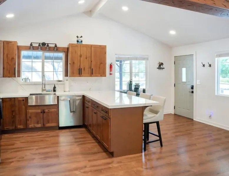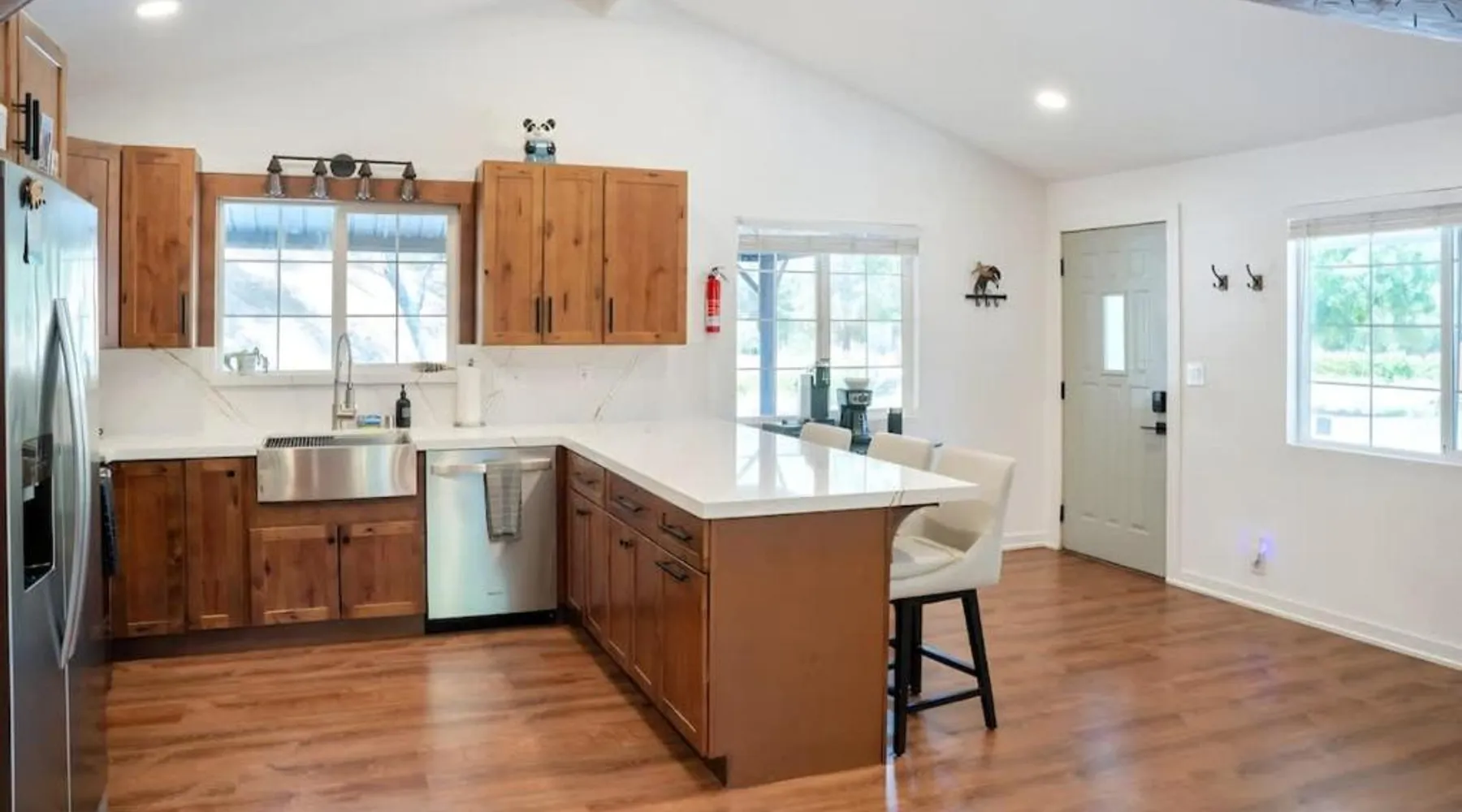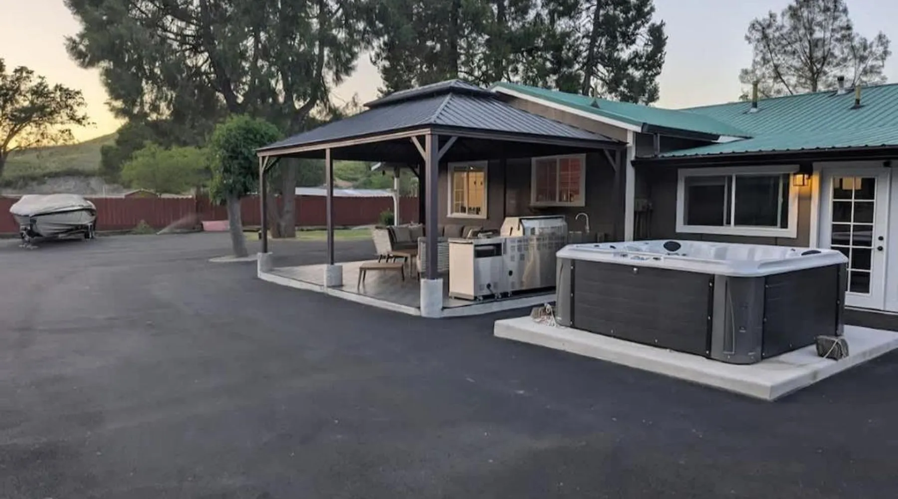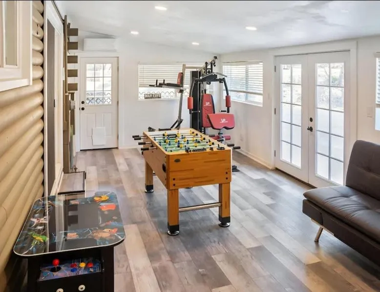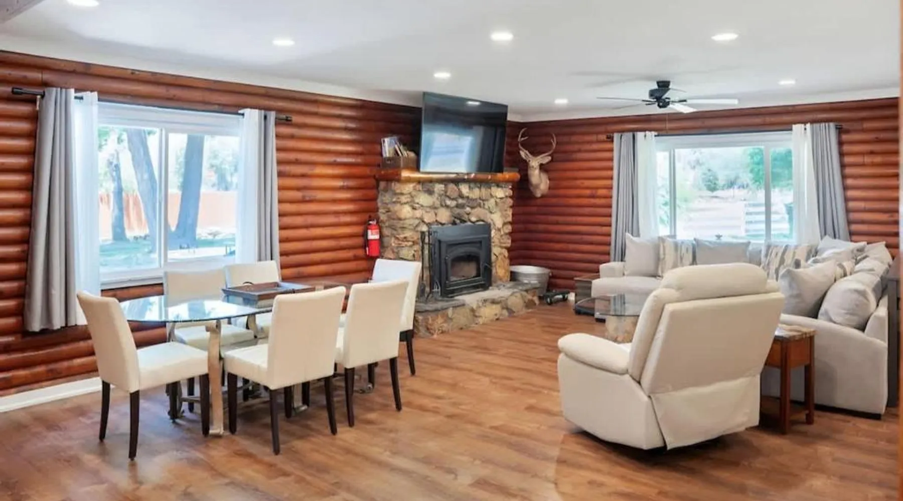 Spacious Accommodations: Modern Cabin Bungalow in Mariposa offers three bedrooms and two bathrooms. The property features a fully equipped kitchen, air-conditioning, and a cozy fireplace. Outdoor Amenities: Guests can relax in the garden or hot tub. The patio includes outdoor furniture, perfect for enjoying the scenic surroundings. Essential Facilities: The holiday home provides free WiFi, a washing machine, and a dishwasher. Additional amenities include a barbecue, TV, and a wardrobe. Convenient Location: Merced Municipal Airport is 34 mi away. The property offers easy access to local attractions. The hot tub and fireplace are the special features of this bungalow. This spacious bungalow comes with 3 bedrooms, kitchen and 2 bathrooms with a hairdryer. Guests will find a stovetop, a refrigerator, a dishwasher and kitchenware in the well-fitted kitchen. The bungalow also includes a barbecue. Boasting a patio, this bungalow also features air conditioning, a washing machine and a TV. The unit has 3 beds.