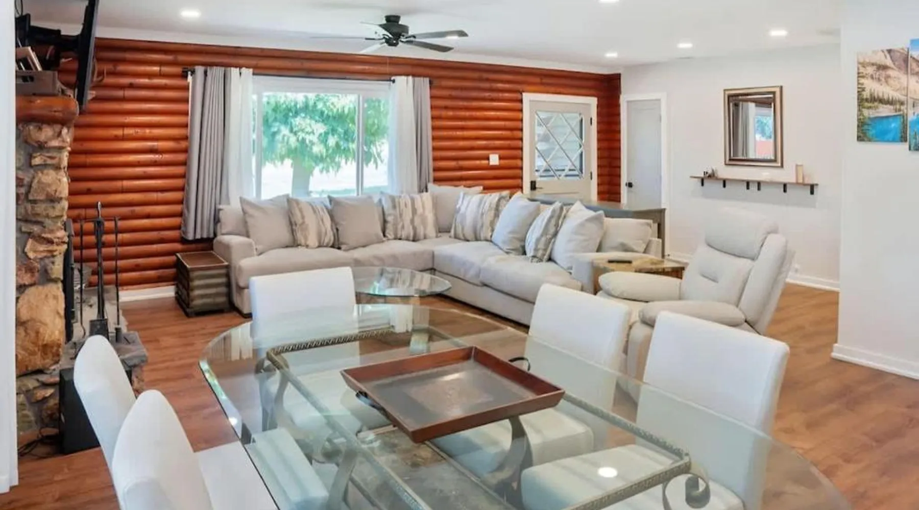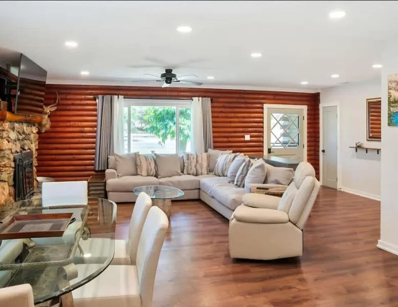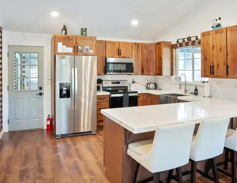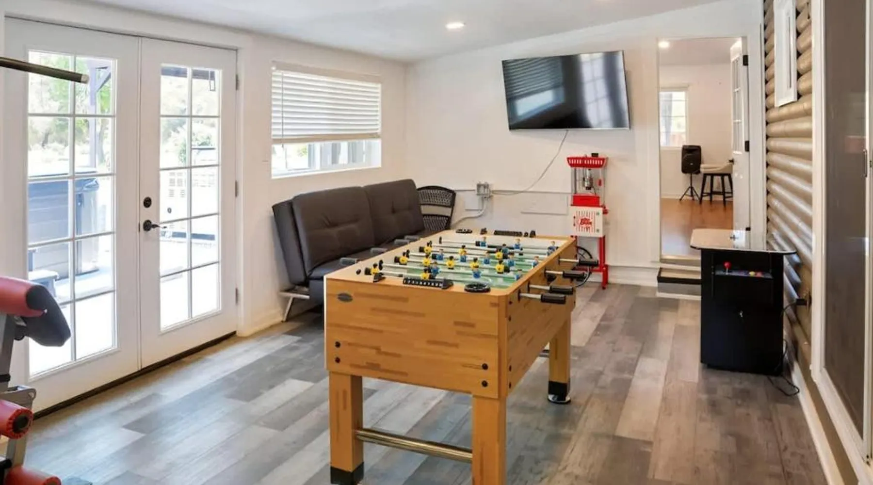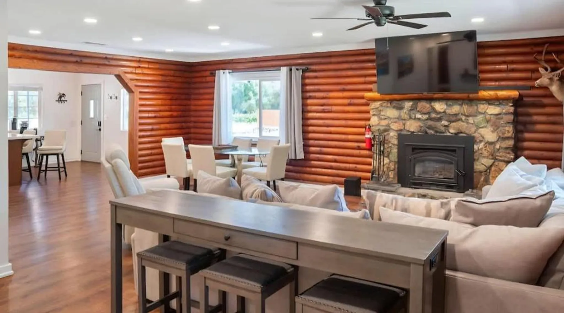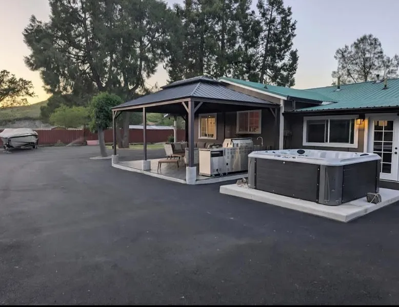 Spacious Accommodations: Modern Cabin Bungalow in Mariposa offers three bedrooms and two bathrooms. The property features a fully equipped kitchen, air-conditioning, and a cozy fireplace. Outdoor Amenities: Guests can relax in the garden or hot tub. The patio includes outdoor furniture, perfect for enjoying the scenic surroundings. Essential Facilities: The holiday home provides free WiFi, a washing machine, and a dishwasher. Additional amenities include a barbecue, TV, and a wardrobe. Convenient Location: Merced Municipal Airport is 34 mi away. The property offers easy access to local attractions. The hot tub and fireplace are the special features of this bungalow. This spacious bungalow comes with 3 bedrooms, kitchen and 2 bathrooms with a hairdryer. Guests will find a stovetop, a refrigerator, a dishwasher and kitchenware in the well-fitted kitchen. The bungalow also includes a barbecue. Boasting a patio, this bungalow also features air conditioning, a washing machine and a TV. The unit has 3 beds.