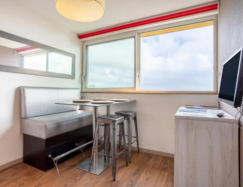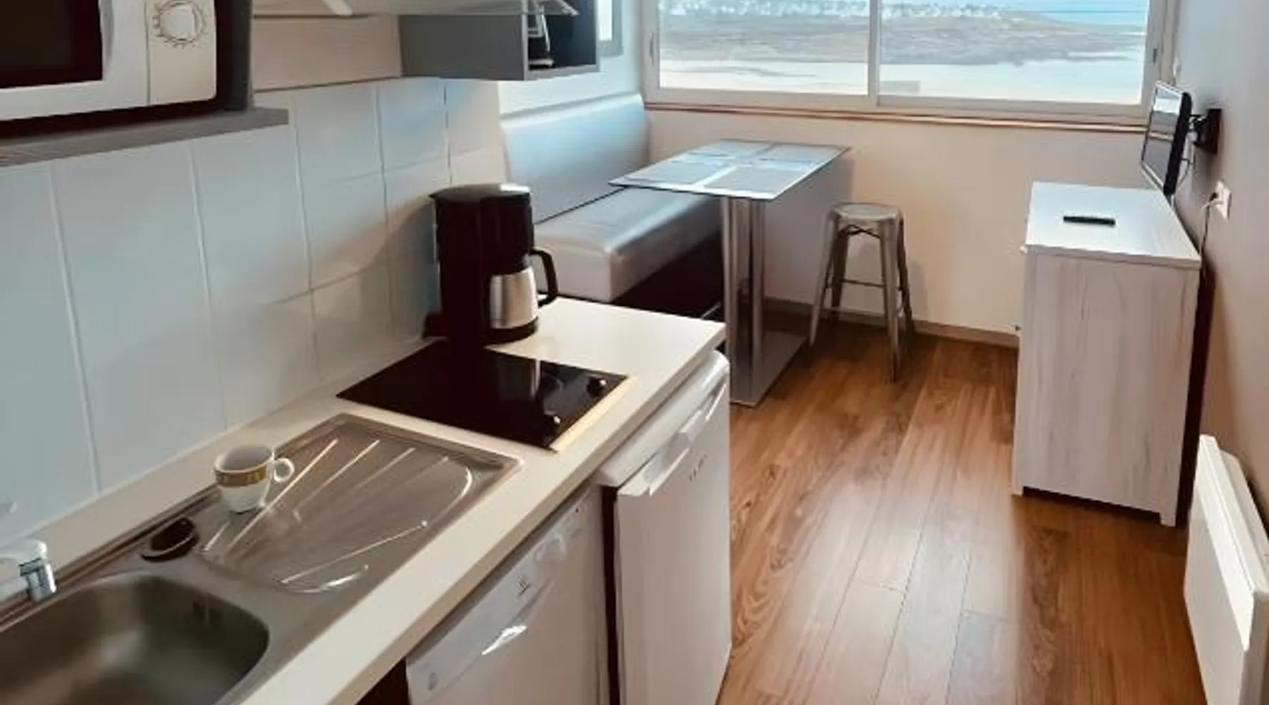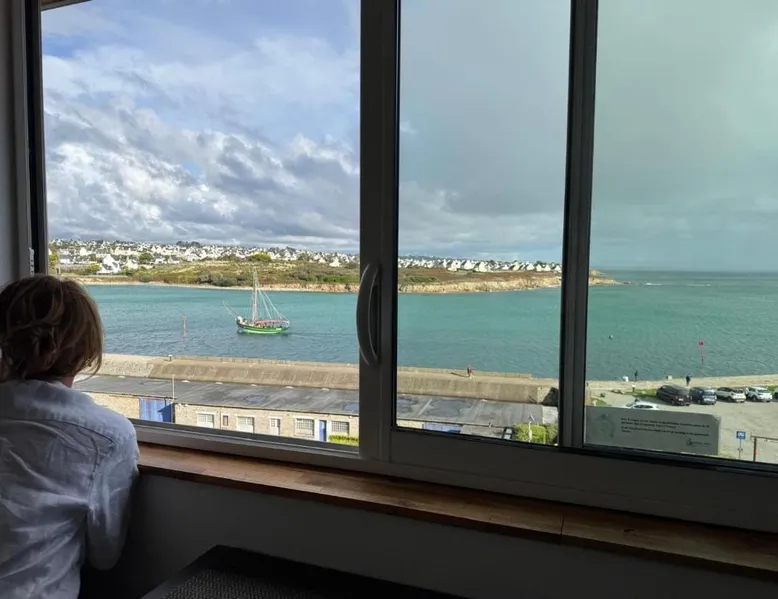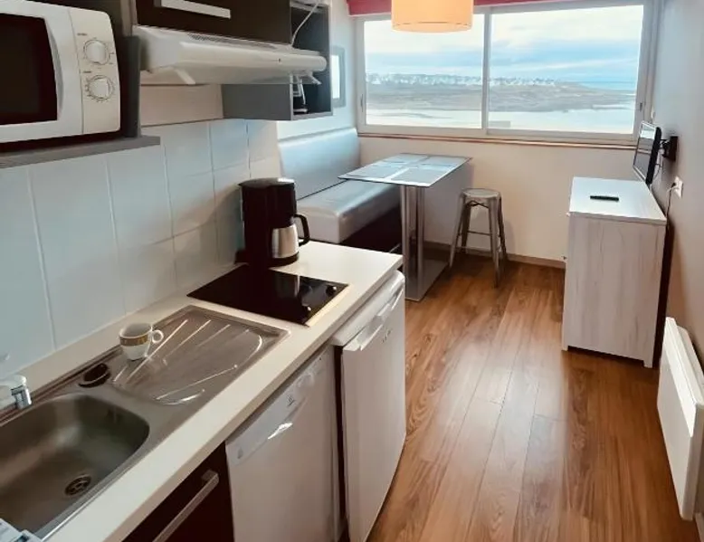Beachfront Location: Appartement duplex vue mer in Audierne offers direct beachfront access with stunning sea views. Guests can relax in the garden or take a dip in the outdoor swimming pool. Free WiFi is available throughout the property. Comfortable Amenities: The apartment features one bedroom and one bathroom, equipped with a fully fitted kitchen, dishwasher, microwave, and coffee machine. Additional amenities include a hairdryer, free toiletries, and a TV. Outdoor Spaces: An outdoor seating area provides a pleasant spot to unwind. Free off-site parking is available for guests' convenience. Local Attractions: Trescadec Beach is a 3-minute walk away, while Quimper Train Station is 24 mi from the property. Other nearby points of interest include Pointe du Van (11 mi) and Breton County Museum (24 mi). The apartment has 1 bedroom and 1 bathroom with a shower and free toiletries. In the well-fitted kitchen, guests will find a dishwasher, kitchenware, an oven and a microwave. This apartment features a private entrance, a coffee machine, a TV and sea views. The unit has 1 bed.