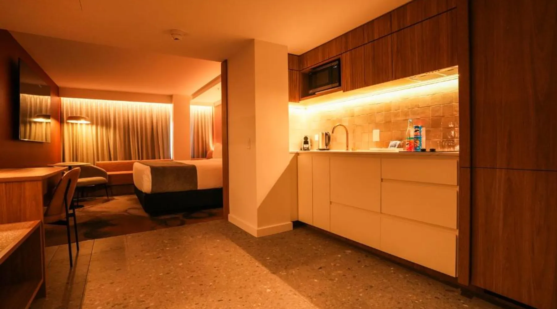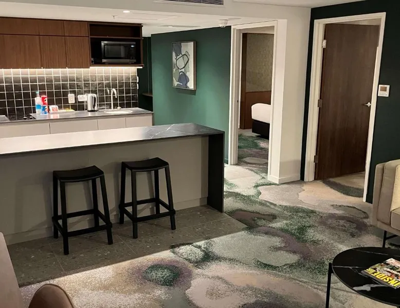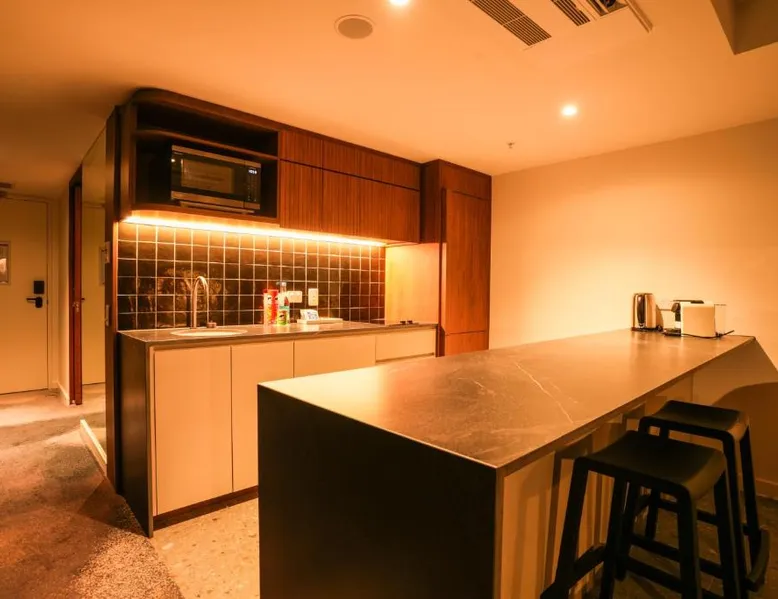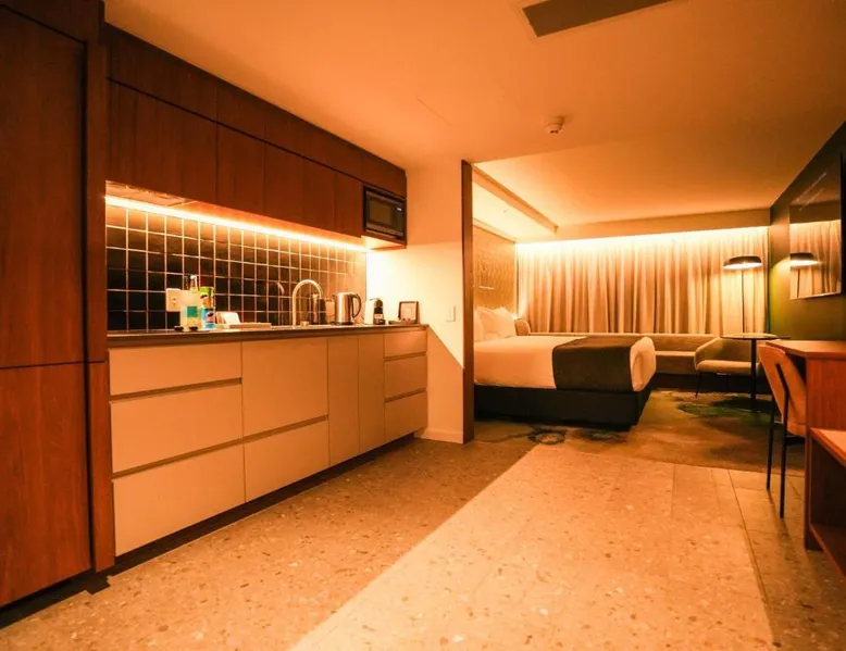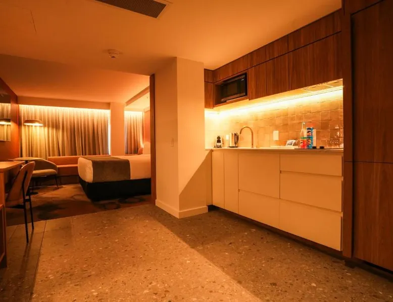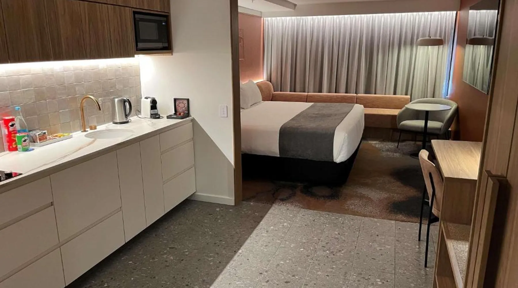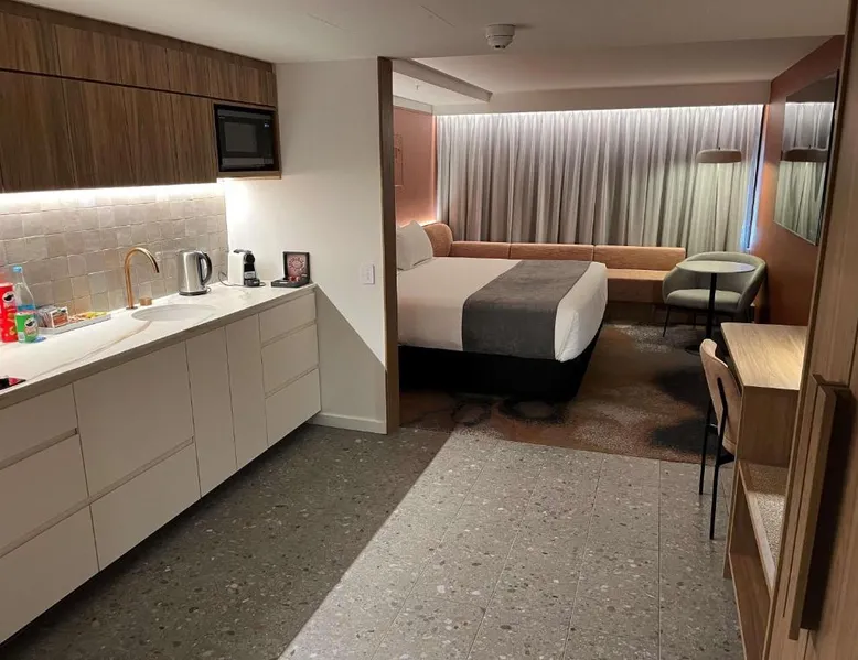 Elegant Accommodations: Peppers Gladstone in Gladstone offers a 5-star experience with a rooftop swimming pool, lush garden, and a family-friendly restaurant. Guests enjoy free WiFi, a fitness room, and a 24-hour front desk. Comfortable Amenities: Rooms feature air-conditioning, kitchenettes, and private bathrooms with walk-in showers. Additional amenities include a mini-bar, microwave, and soundproofing, ensuring a relaxing stay. Dining Options: The restaurant serves international cuisine in a welcoming ambiance, while the bar offers a variety of beverages. An American buffet breakfast with fresh pastries, pancakes, and fruits is available each morning. Prime Location: Located 3.7 mi from Gladstone Airport and 2.9 mi from Gladstone Marina, the hotel provides easy access to local attractions. Guests appreciate the room cleanliness and attentive staff. Offering free toiletries and bathrobes, this studio includes a private bathroom with a walk-in shower, a hairdryer and slippers. In the well-fitted kitchenette, guests will find a stovetop, a refrigerator, a dishwasher and kitchenware. The studio is furnished with a desk and a seating area and offers air conditioning and a washing machine. The unit offers 1 bed.