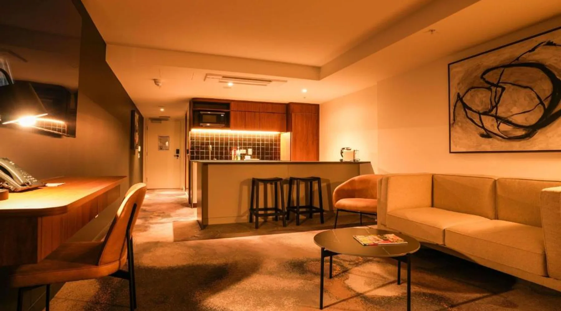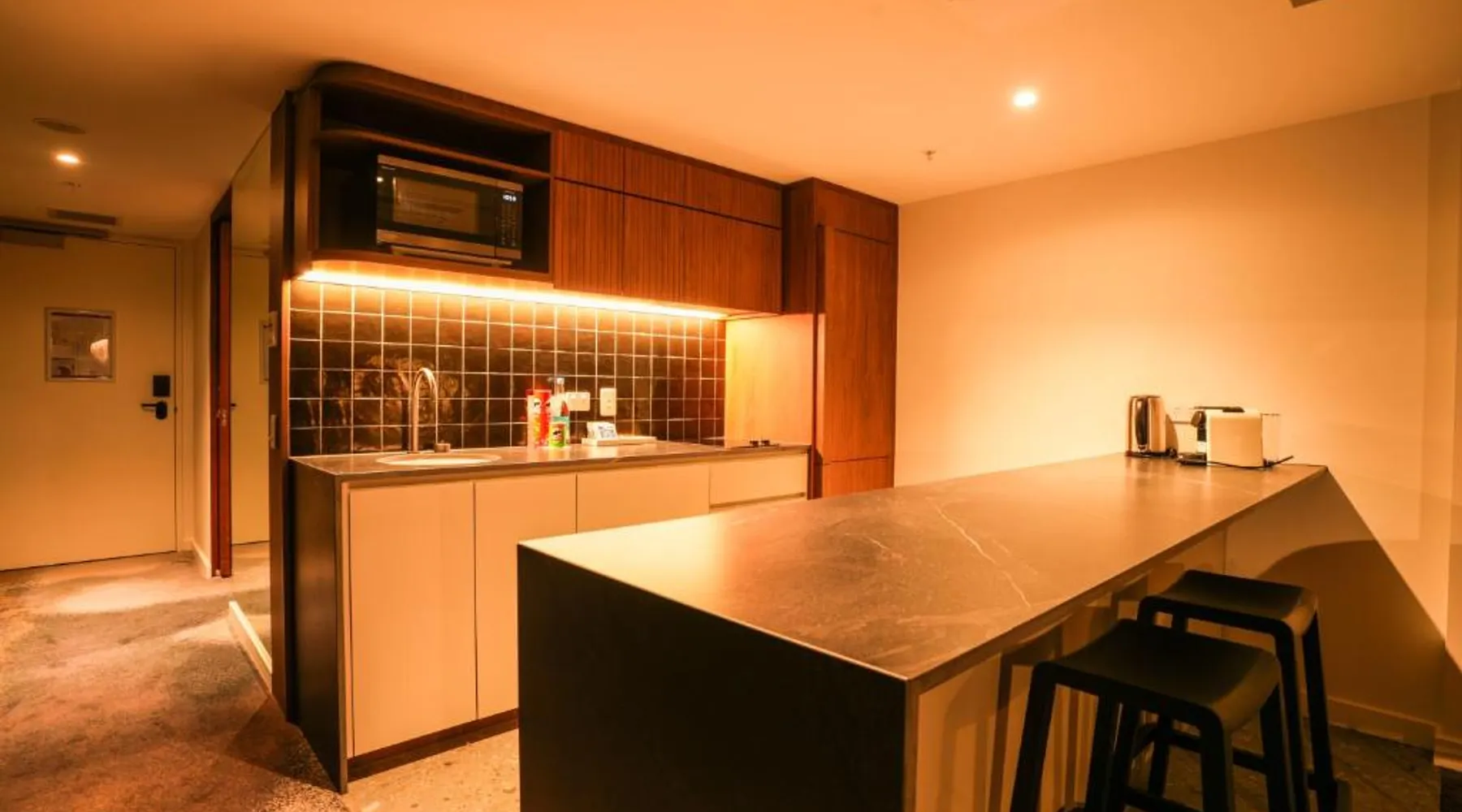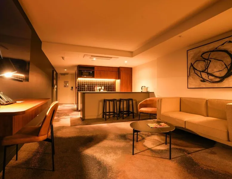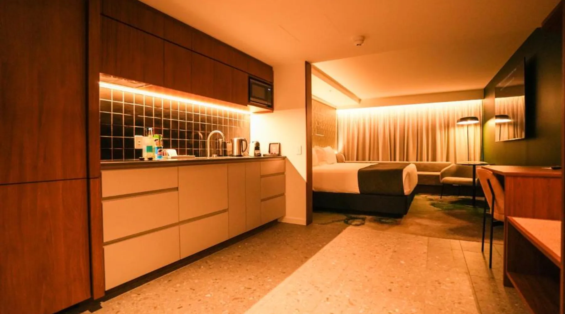 Elegant Accommodations: Peppers Gladstone in Gladstone offers a 5-star experience with a rooftop swimming pool, lush garden, and a family-friendly restaurant. Guests enjoy free WiFi, a fitness room, and a 24-hour front desk. Comfortable Amenities: Rooms feature air-conditioning, kitchenettes, and private bathrooms with walk-in showers. Additional amenities include a mini-bar, microwave, and soundproofing, ensuring a relaxing stay. Dining Options: The restaurant serves international cuisine in a welcoming ambiance, while the bar offers a variety of beverages. An American buffet breakfast with fresh pastries, pancakes, and fruits is available each morning. Prime Location: Located 3.7 mi from Gladstone Airport and 2.9 mi from Gladstone Marina, the hotel provides easy access to local attractions. Guests appreciate the room cleanliness and attentive staff. Offering free toiletries and bathrobes, this studio includes a private bathroom with a walk-in shower, a hairdryer and slippers. In the well-fitted kitchenette, guests will find a stovetop, a refrigerator, a dishwasher and kitchenware. The studio is furnished with a desk and a seating area and offers air conditioning and a washing machine. The unit offers 1 bed.