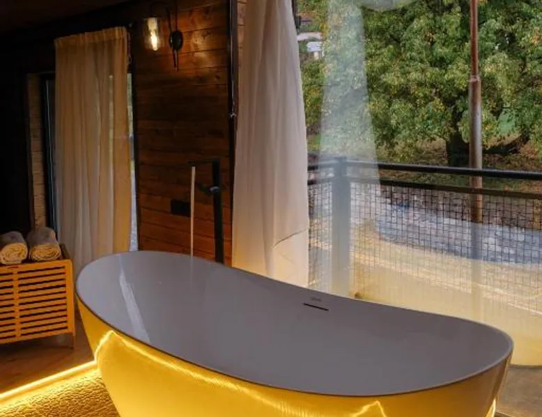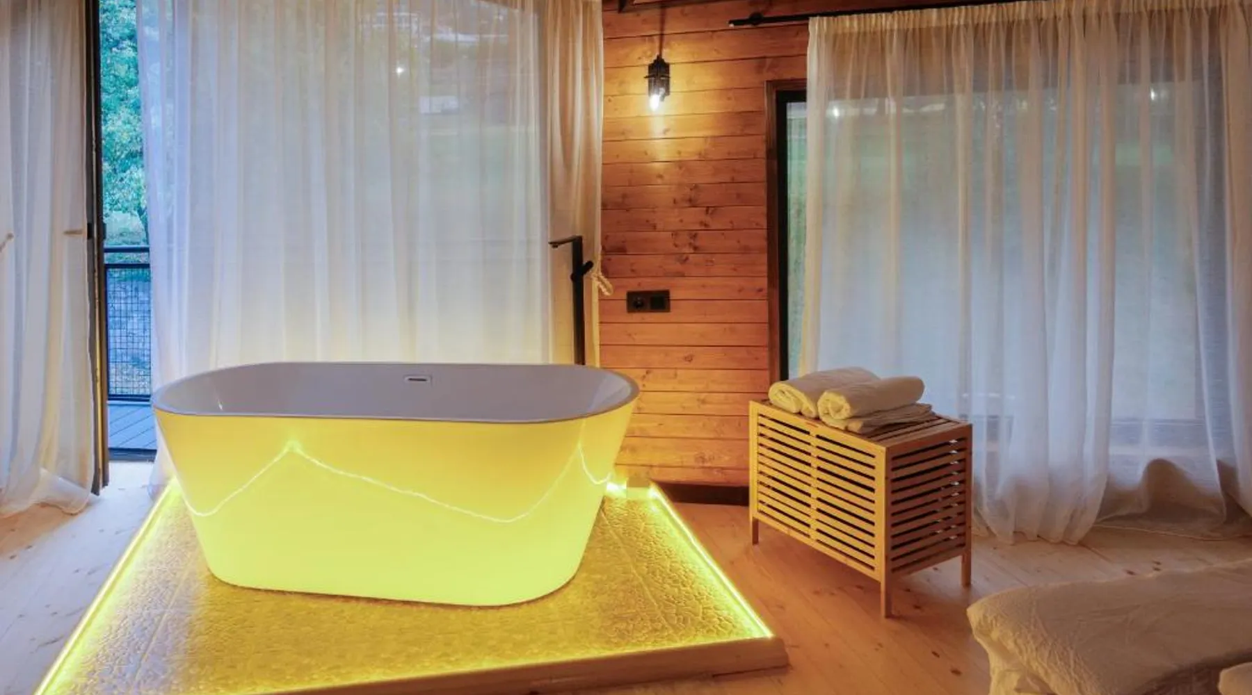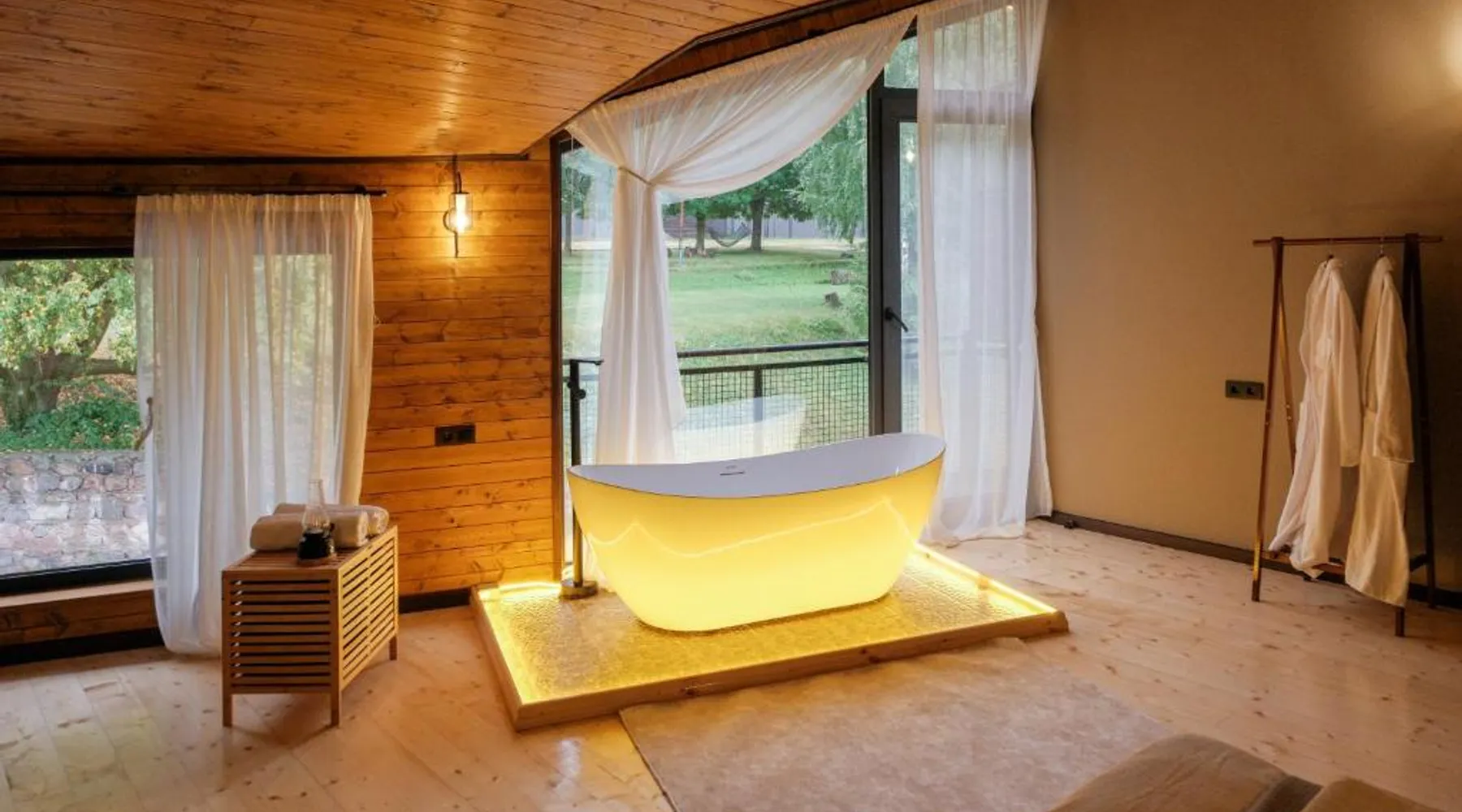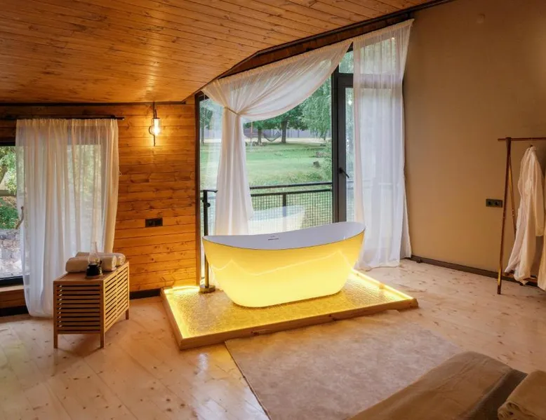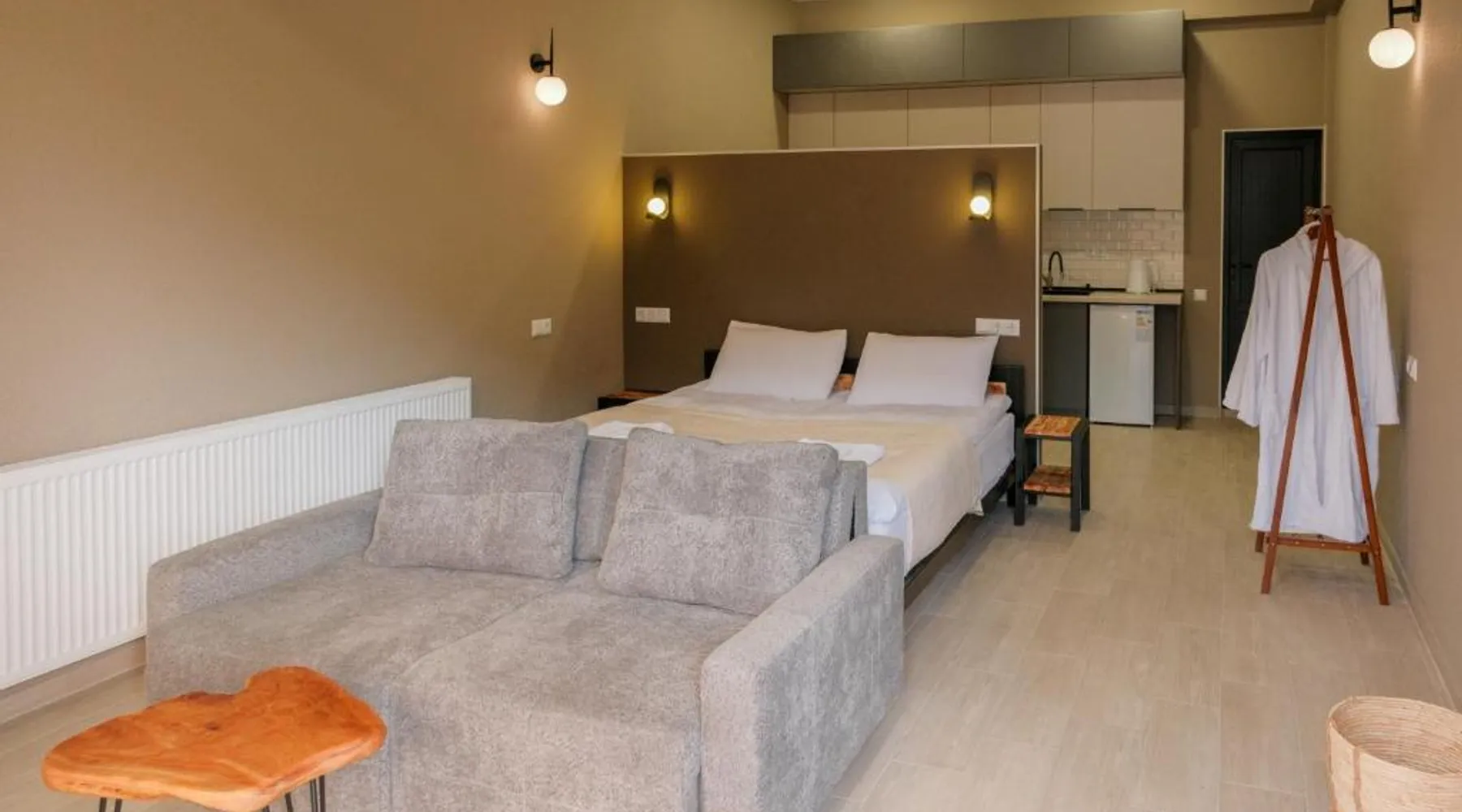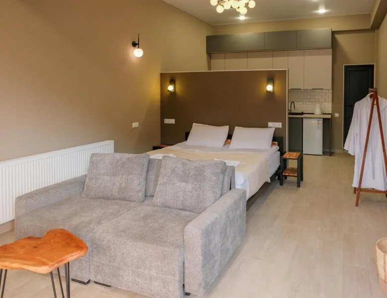 Elegant Accommodations: Rookhe Kazbegi in Stepantsminda offers a comfortable apartment with a sun terrace, garden, and free WiFi. Guests can relax in the outdoor fireplace or hot tub, enjoy mountain views, and utilize the indoor play area. Modern Amenities: The apartment features a kitchenette, balcony, and private bathroom with bathrobes. Additional amenities include a washing machine, dining area, and soundproofing. Free on-site private parking is available. Convenient Services: Private check-in and check-out, paid shuttle service, and room service enhance the stay. The property also offers bicycle parking, outdoor seating, and free toiletries. Local Attractions: Republican Spartak Stadium is 29 mi away, providing easy access to local landmarks. The hot tub is a top feature of this apartment. This spacious apartment comes with 1 living room, 2 separate bedrooms and 1 bathroom with a bath and free toiletries. In the fully equipped kitchen, guests will find a stovetop, a refrigerator, kitchenware and a microwave. The apartment features a washing machine, a private entrance, soundproof walls as well as a terrace with garden views. The unit has 3 beds.